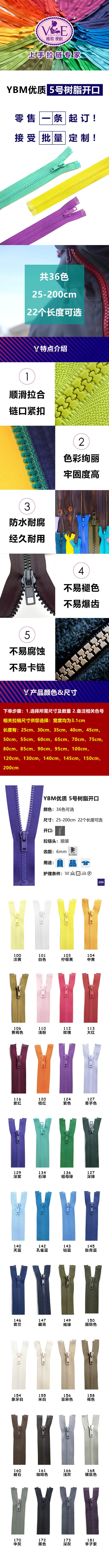 上手YBM优质5号开口树脂拉链
