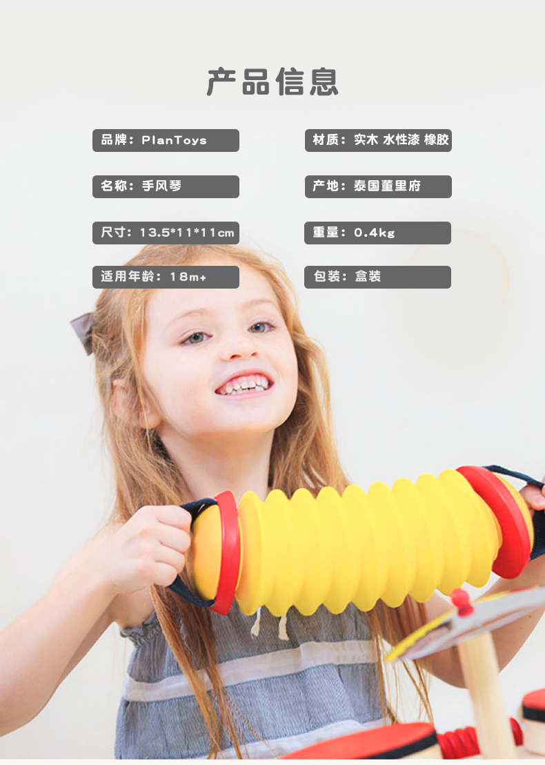 【PlanToys】手风琴宝宝乐器手拉音乐启蒙玩具橡胶木制发声橡胶6401
