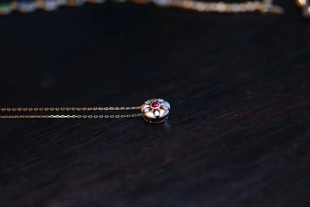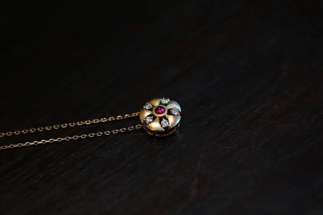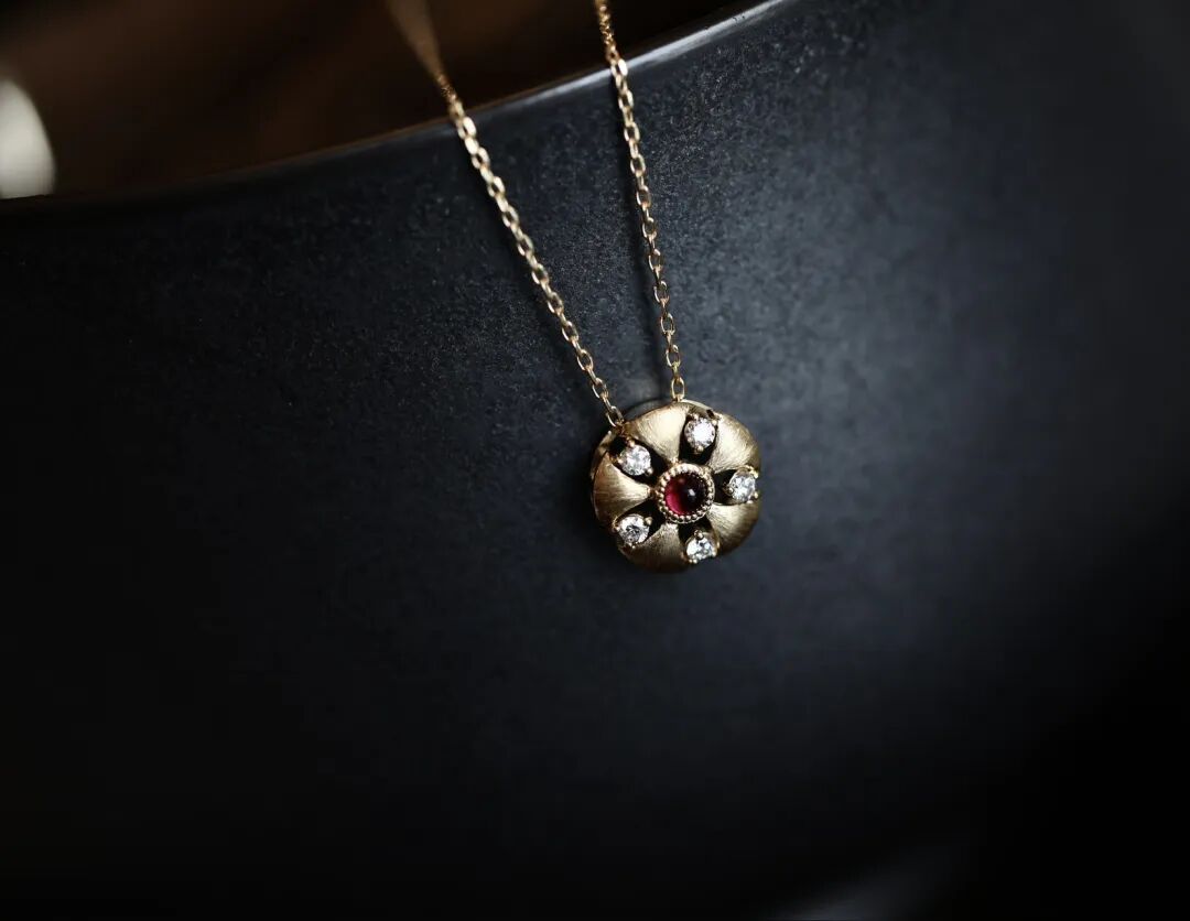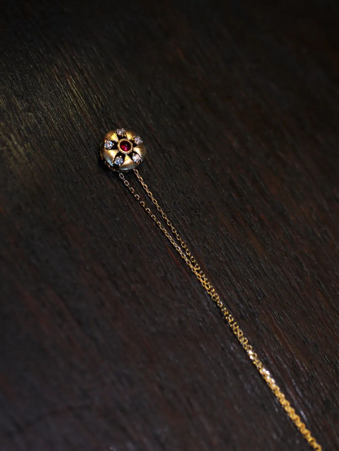 红宝石素面,圆润,弧度非常好看,颜色也很美艳,做花蕊是极好的,居于中心。