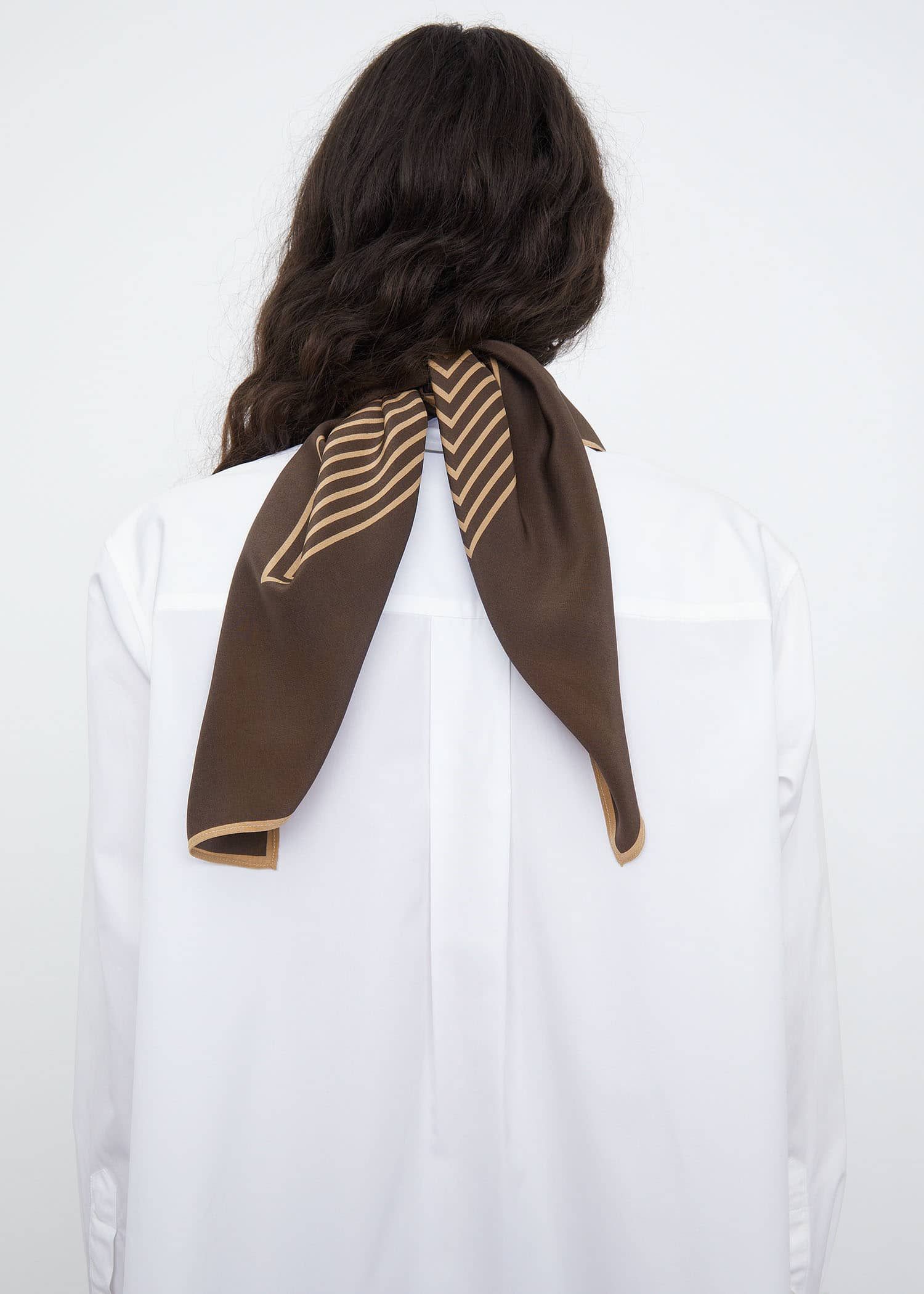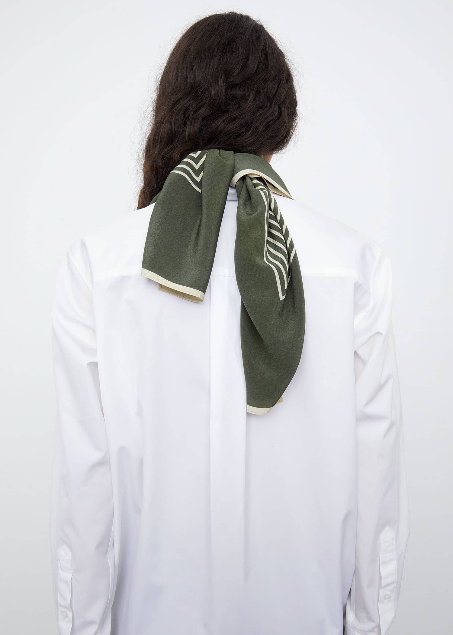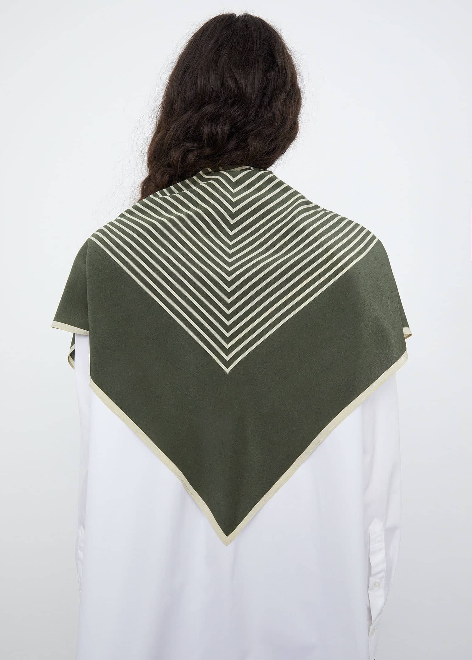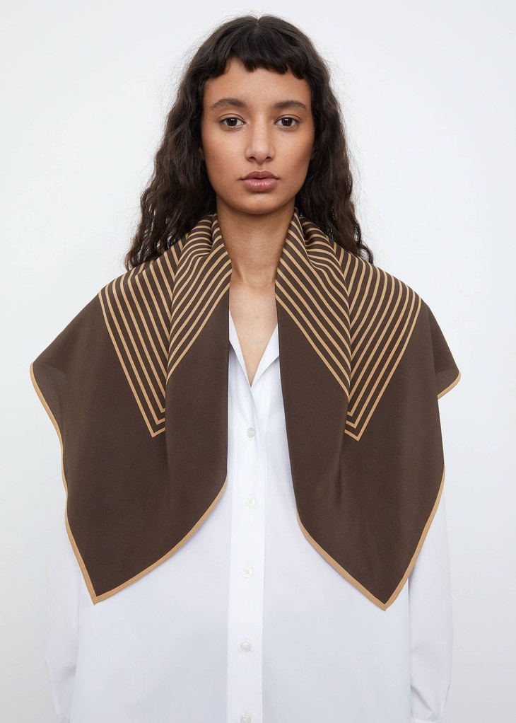 边长82 cm的方形丝巾,搭配logo印花和极简线条,方便各种造型的围戴。真丝制成,质感垂坠而富有光泽。