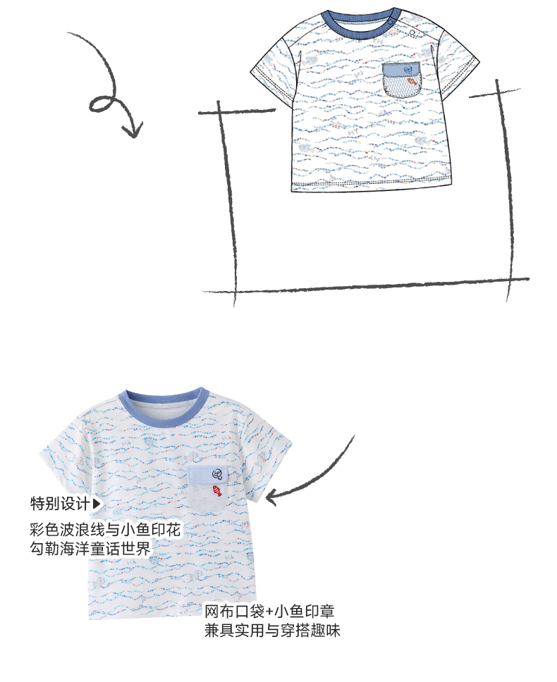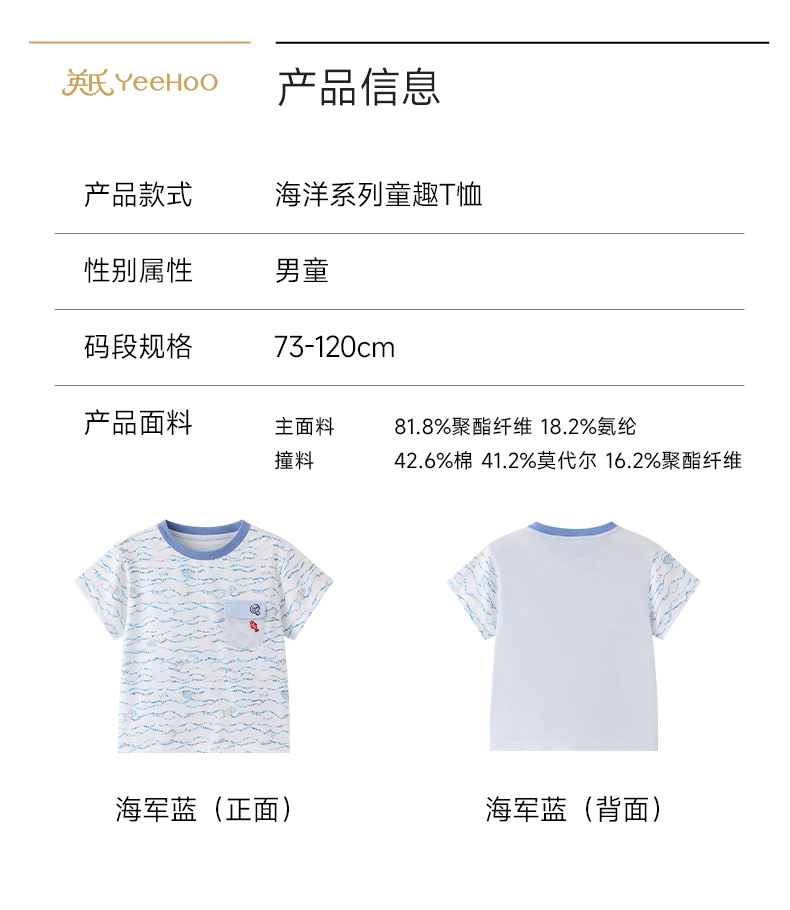 【商场同款】英氏男宝短袖T恤夏新款打底衫儿童圆领透气小衫
