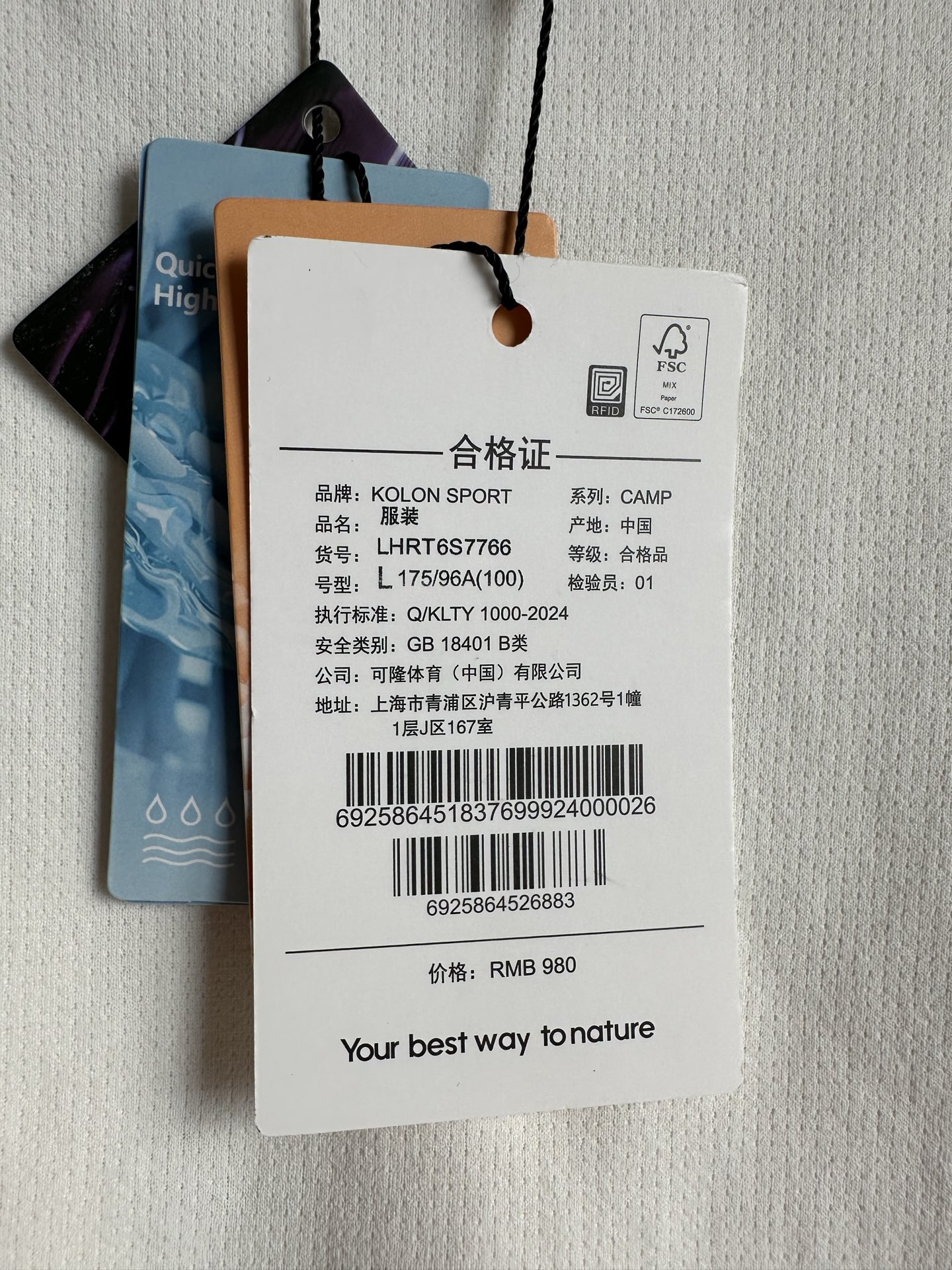 跨年售后💰118 货号098733118 ye KOLON SPORT| 可隆户外休闲衣防晒男士热压贴合圆领长袖T恤
