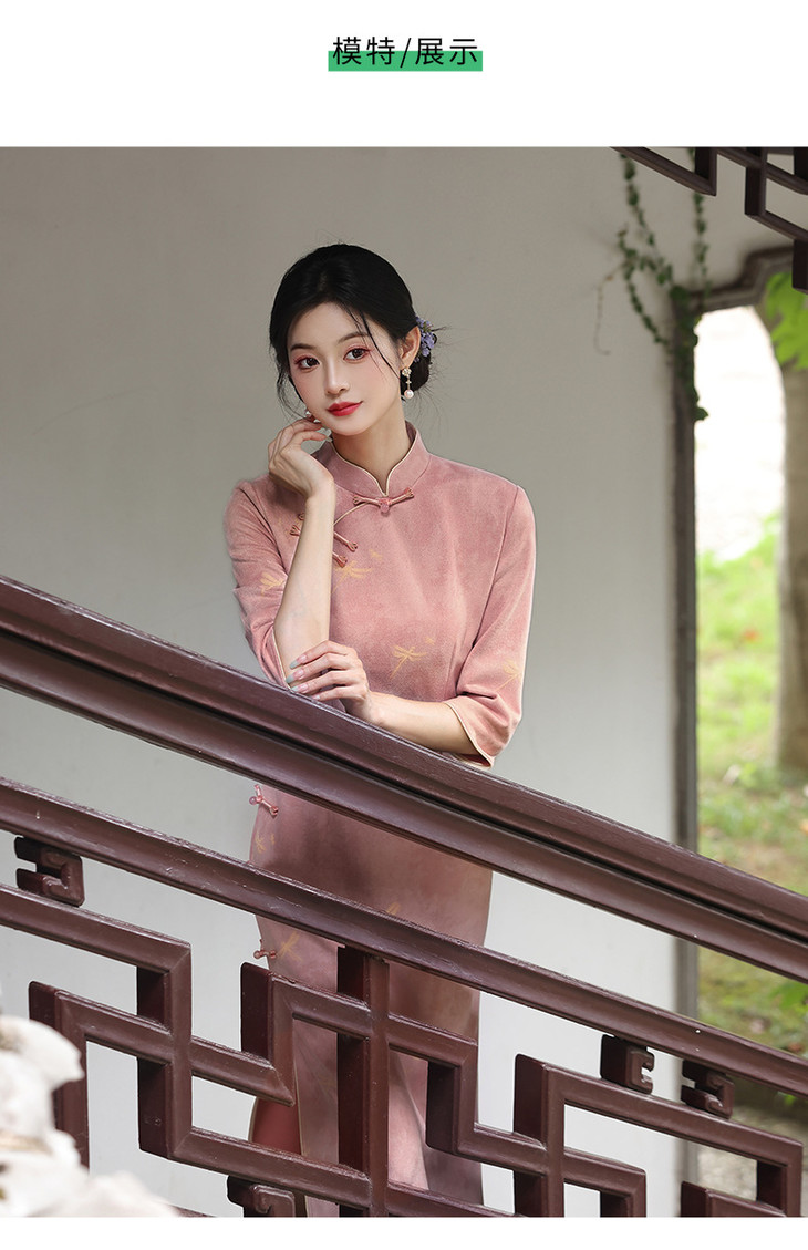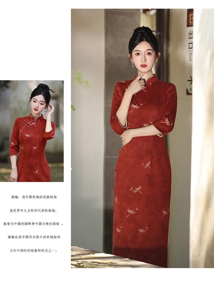 【预售5天】加绒加厚冬装国风新中式长袖旗袍改良年轻款复古旗袍13541