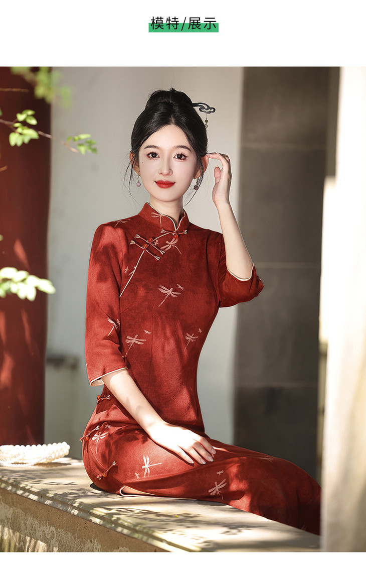 2025秋冬季新款新中式国风订婚旗袍长袖修身长款日常旗袍MLS7213
