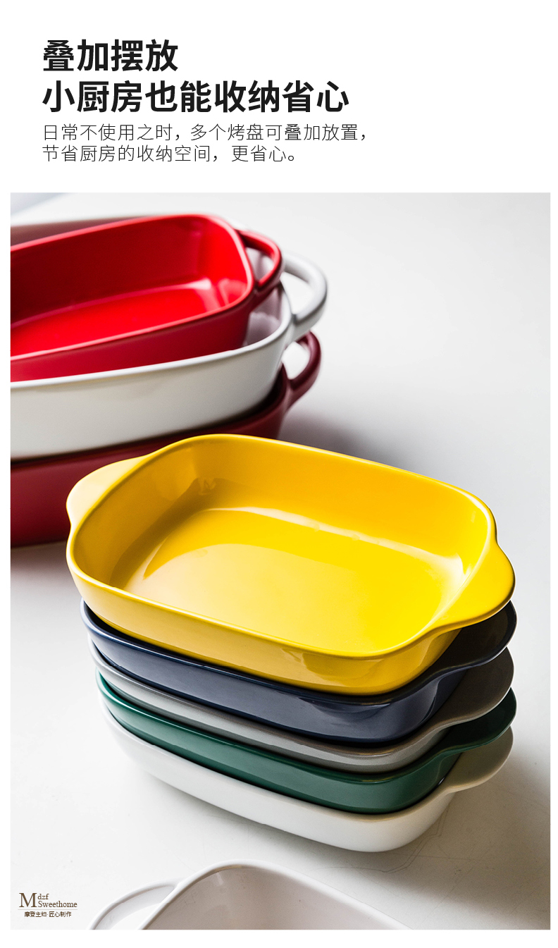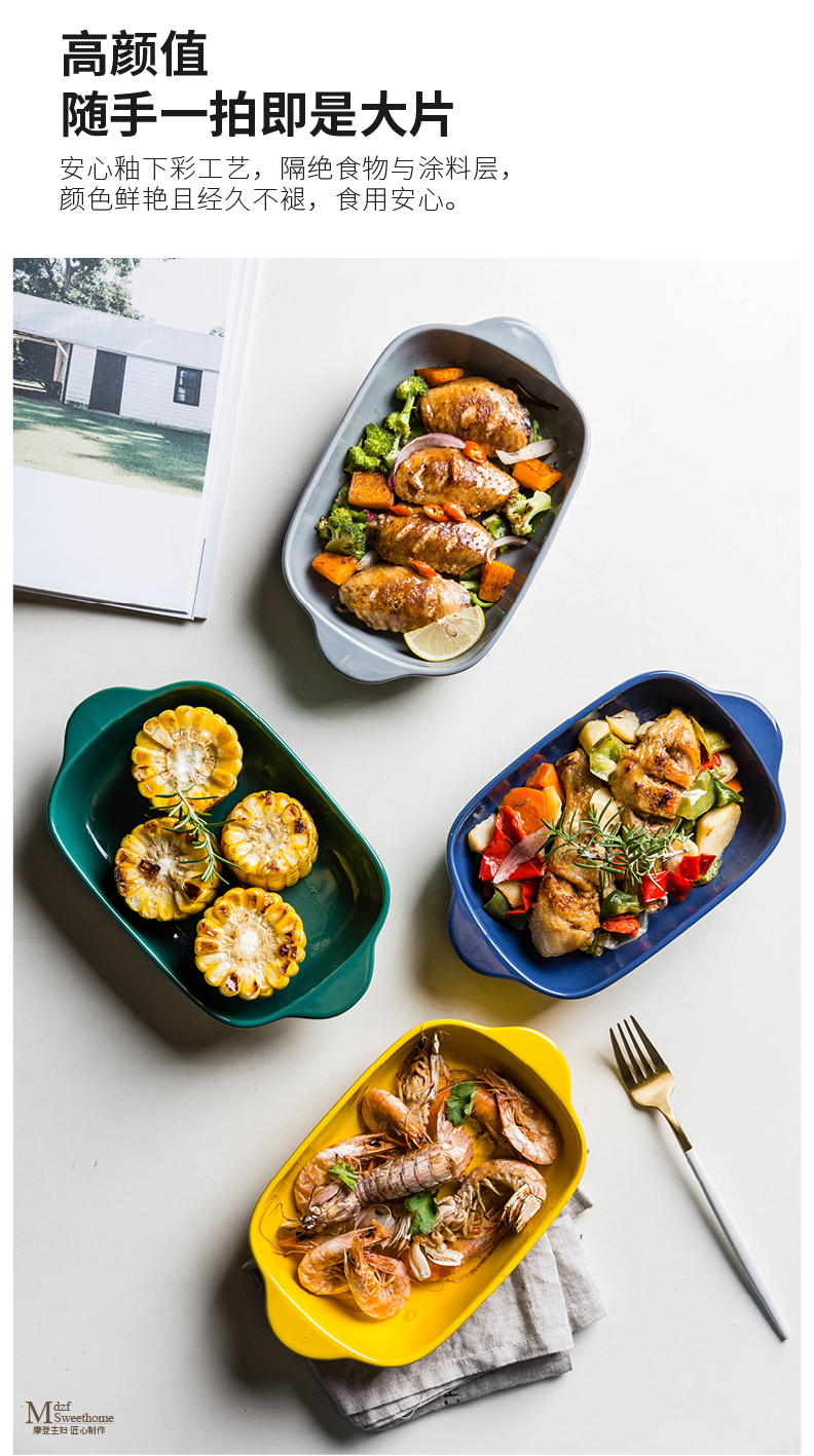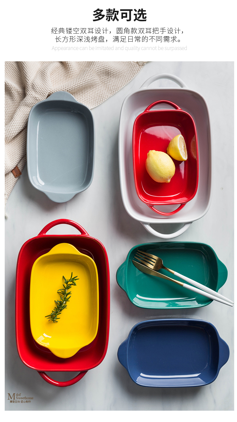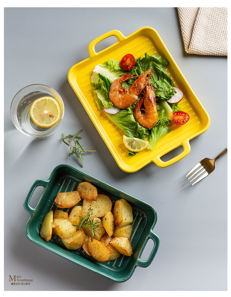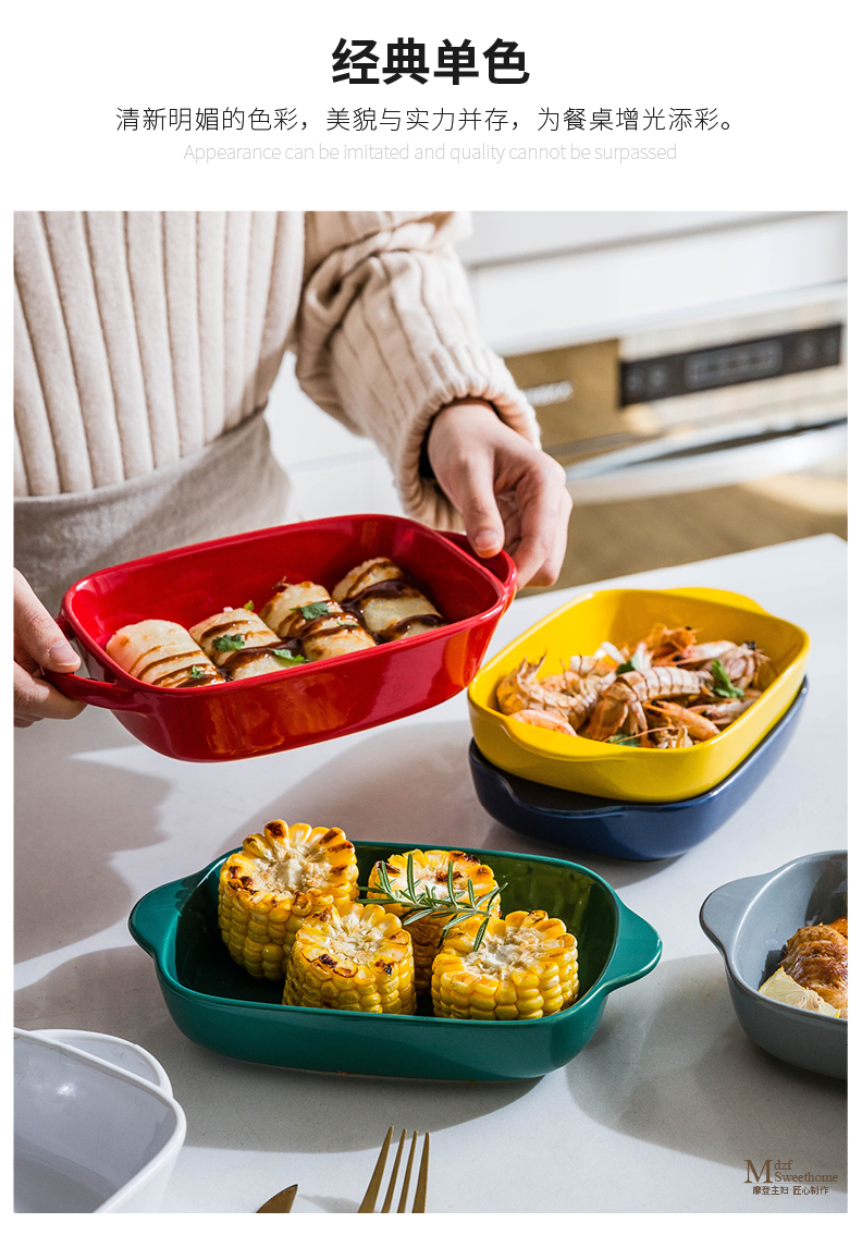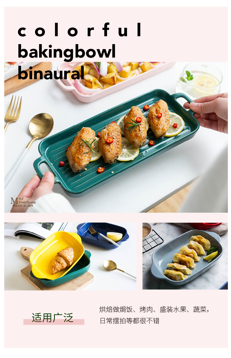 陶瓷双耳焗饭碗长方形烤碗千层面烘焙烤盘烘焙家用烤箱专用菜盘子