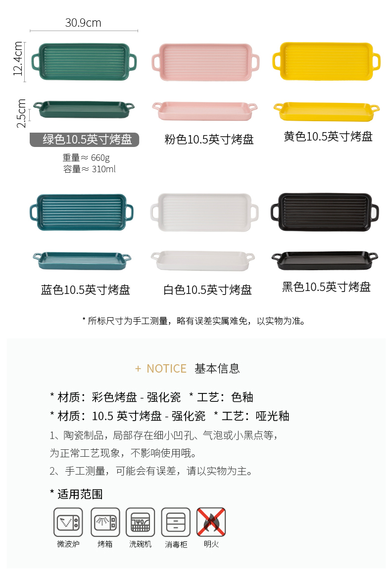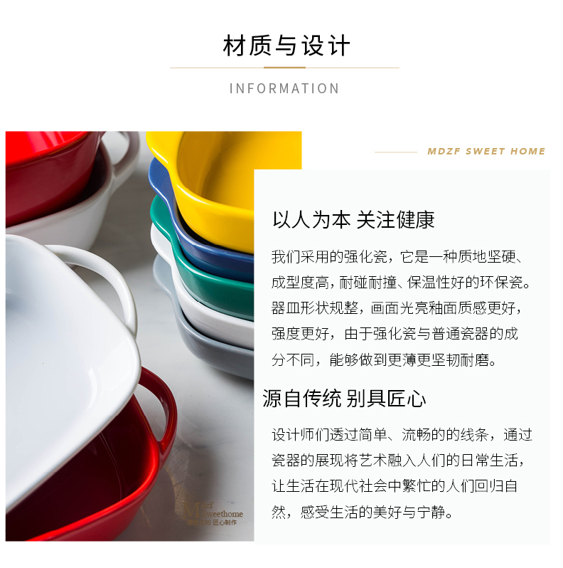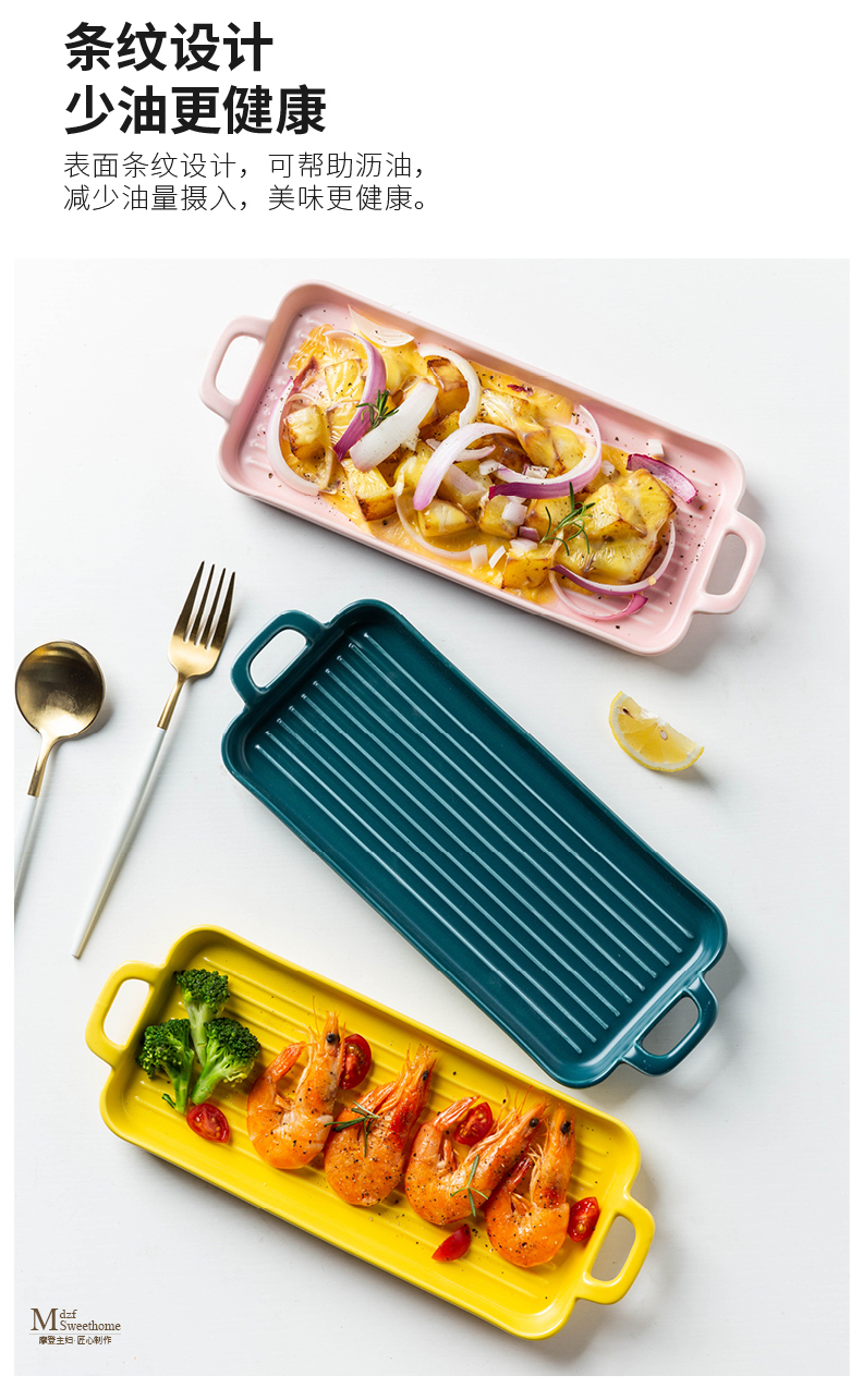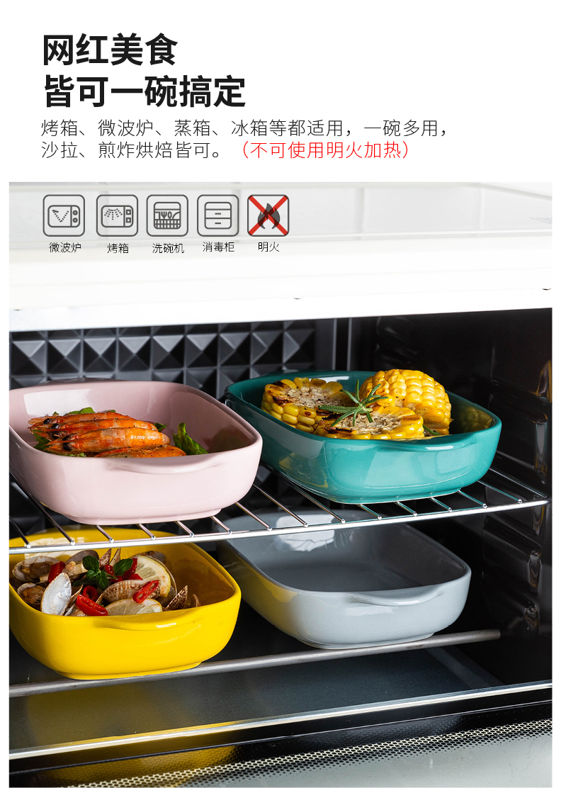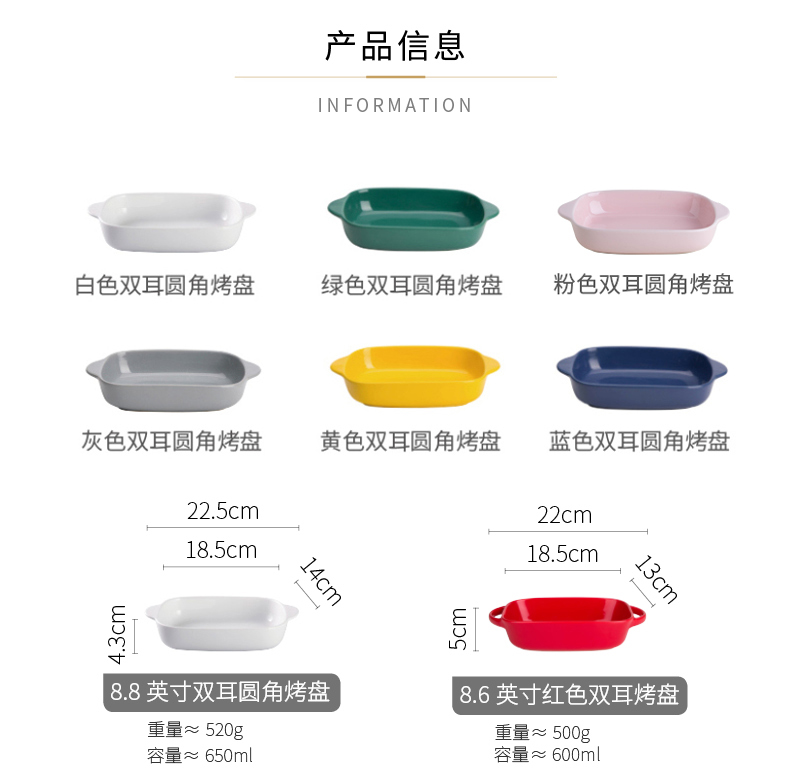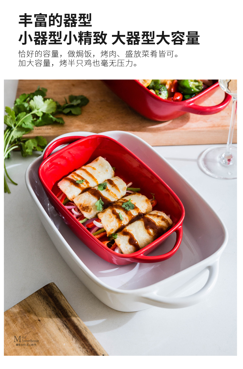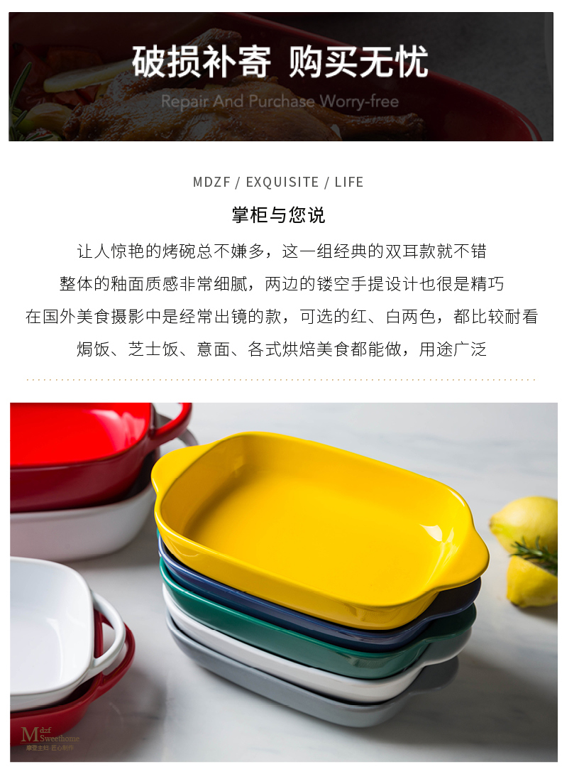 陶瓷双耳焗饭碗长方形烤碗千层面烘焙烤盘烘焙家用烤箱专用菜盘子