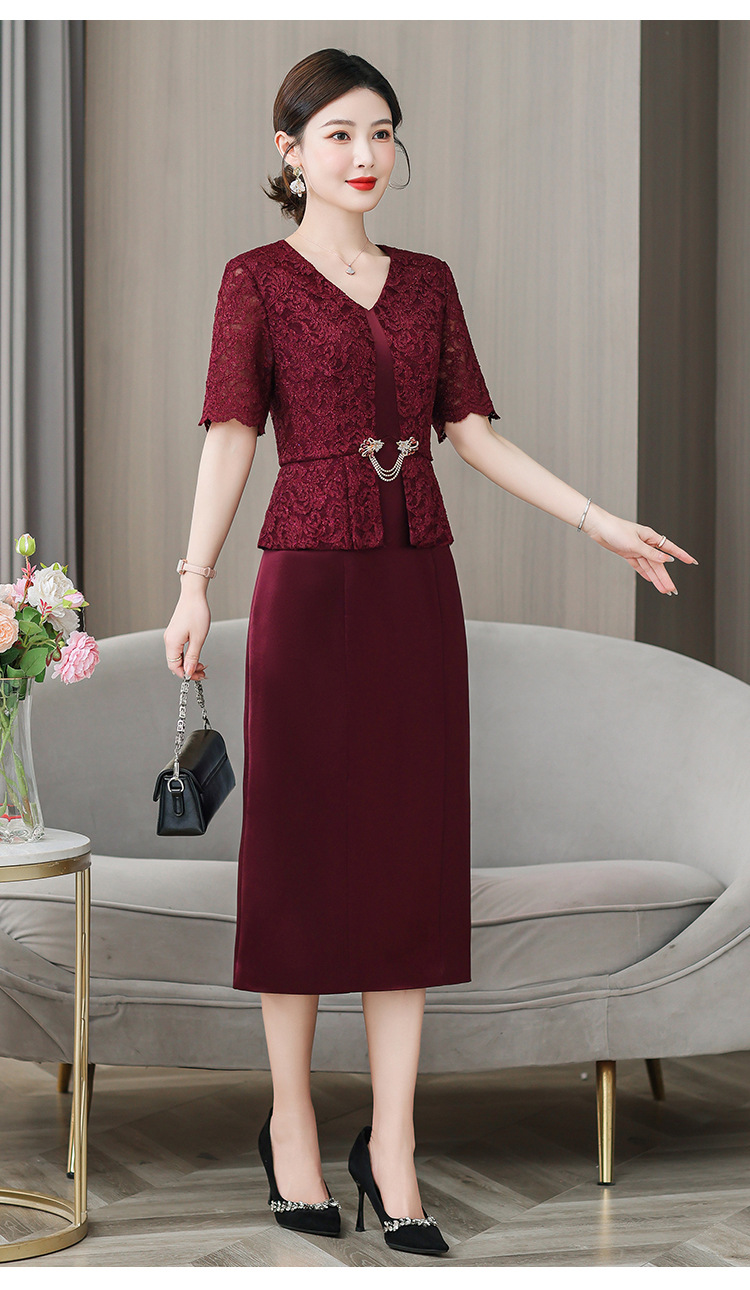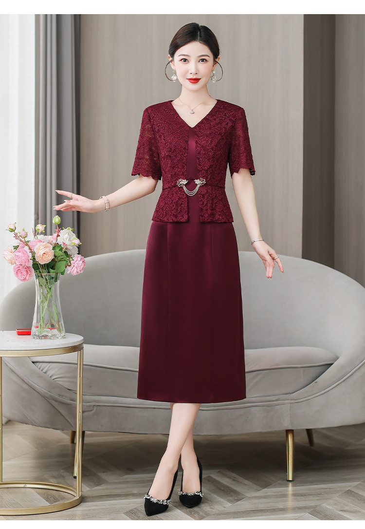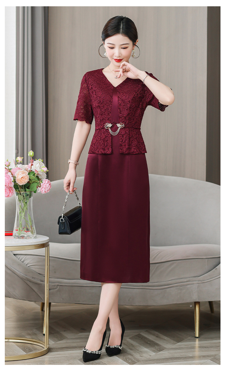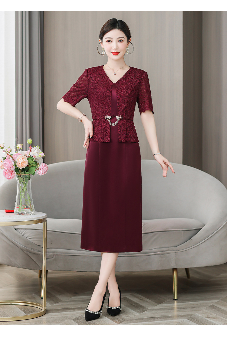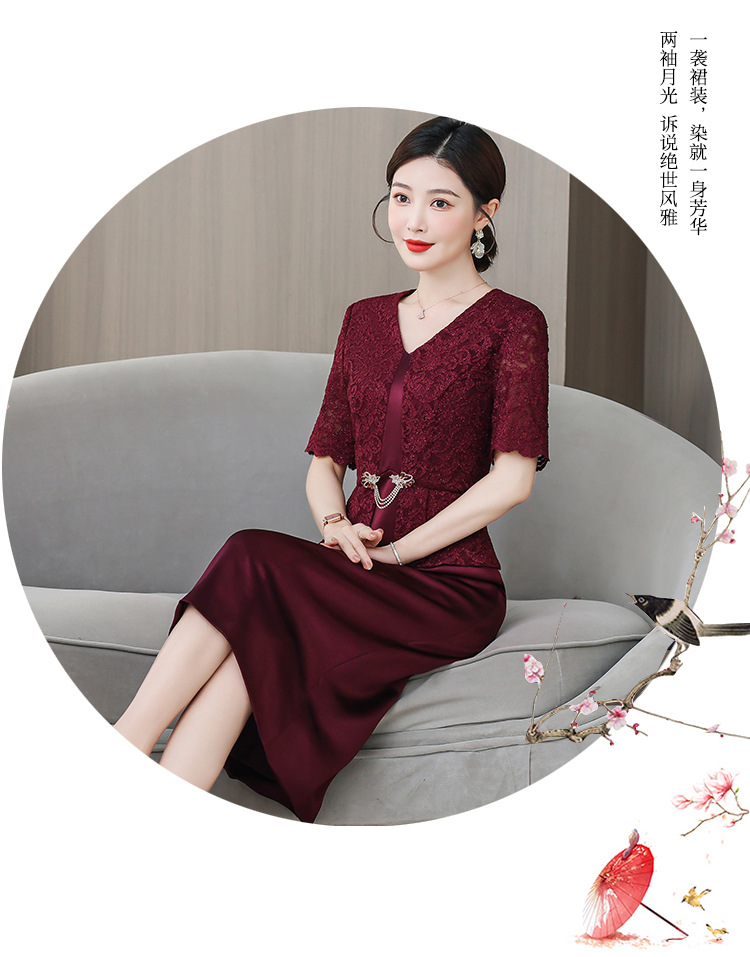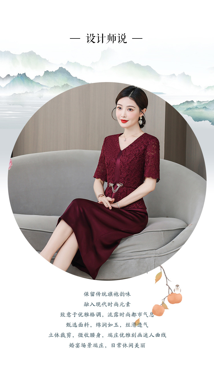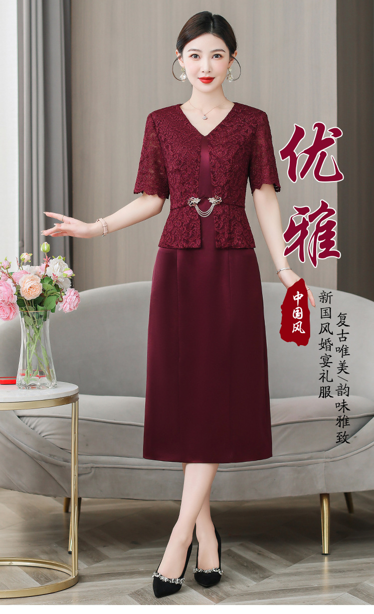 雀说喜婆婆婚宴装礼服裙子季新款酒红色连衣裙AL5571