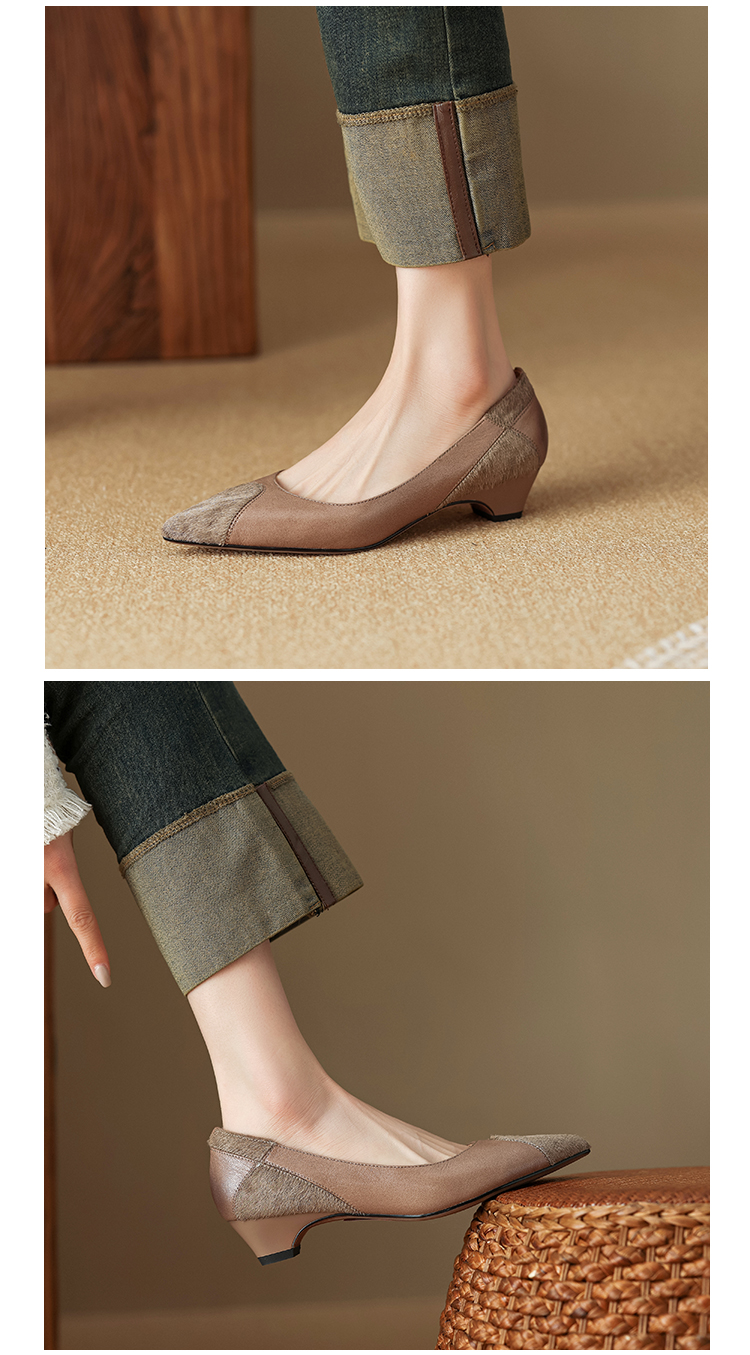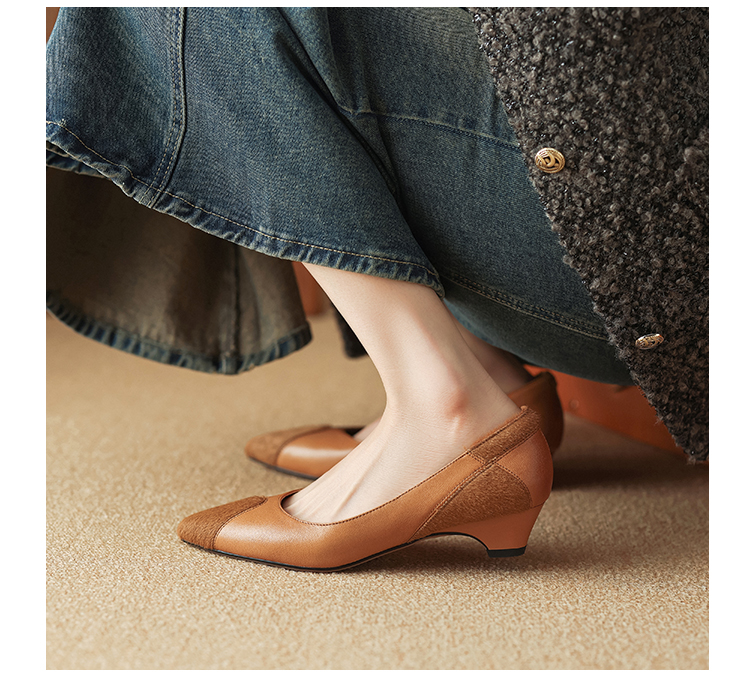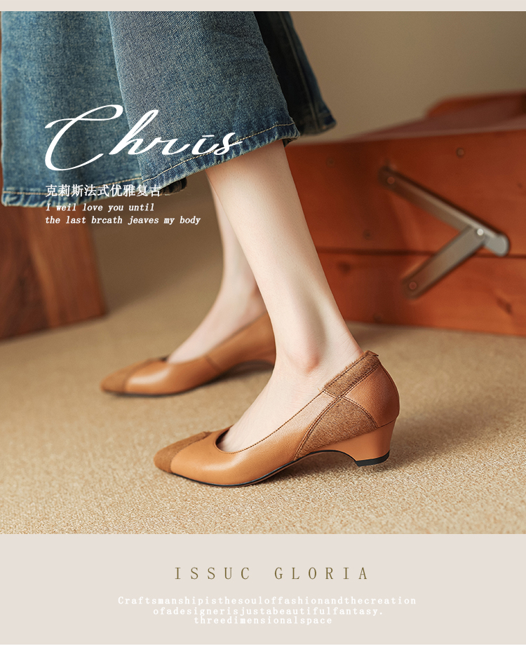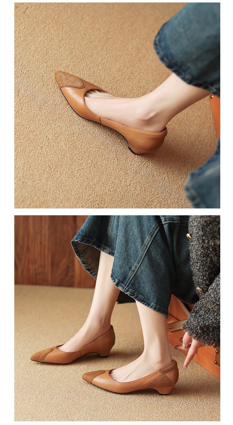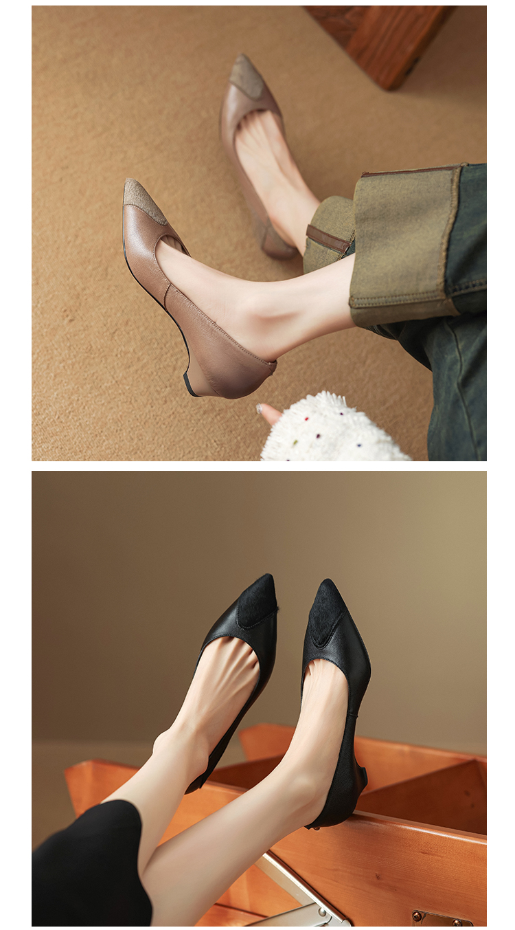 春季新款,浅口拼色小皮鞋爆款网红女鞋真皮鞋子HYT-7323