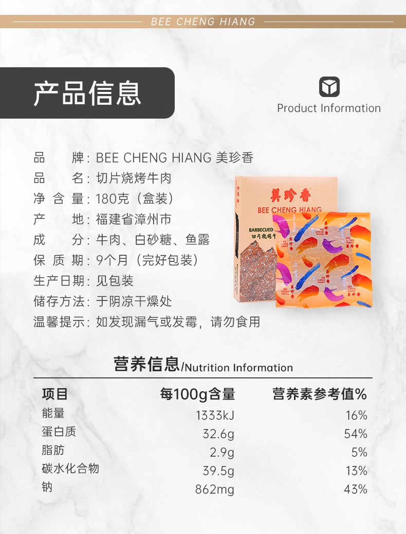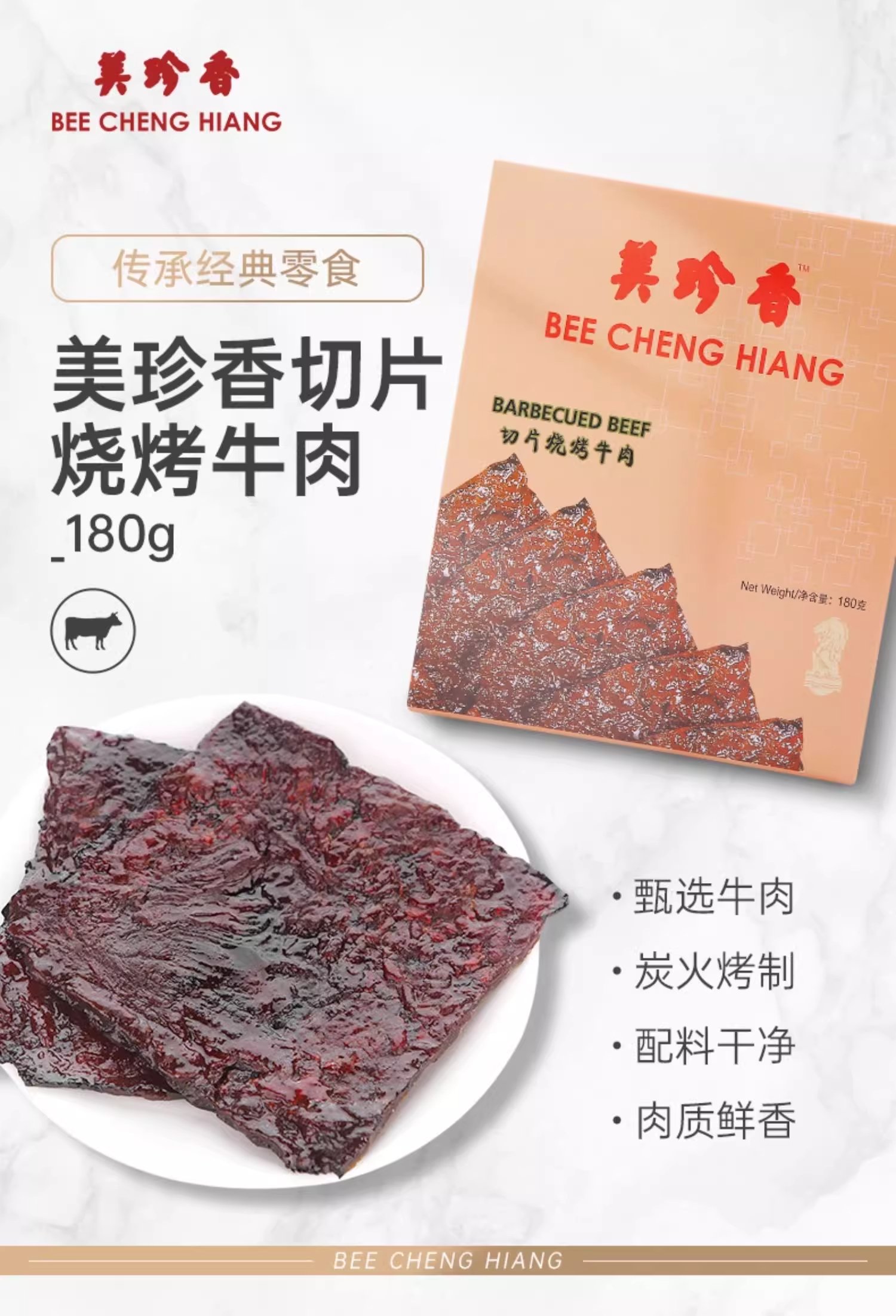 美珍香切片烧烤牛肉180g办公室休闲零食(非牛肉脯,手工铺制牛肉)