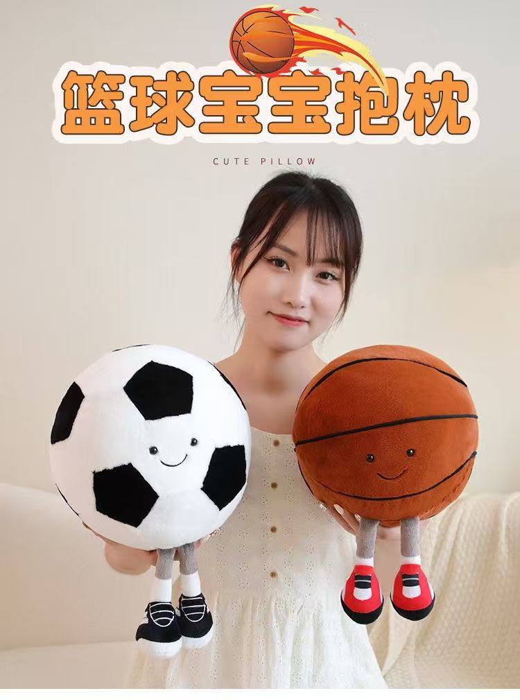 生日礼物!【篮球宝宝抱枕,亲肤毛绒面料~】创意公仔趣味篮球 学生毛绒玩具 足球玩偶 幼儿园生日礼物 儿童男孩-QQ