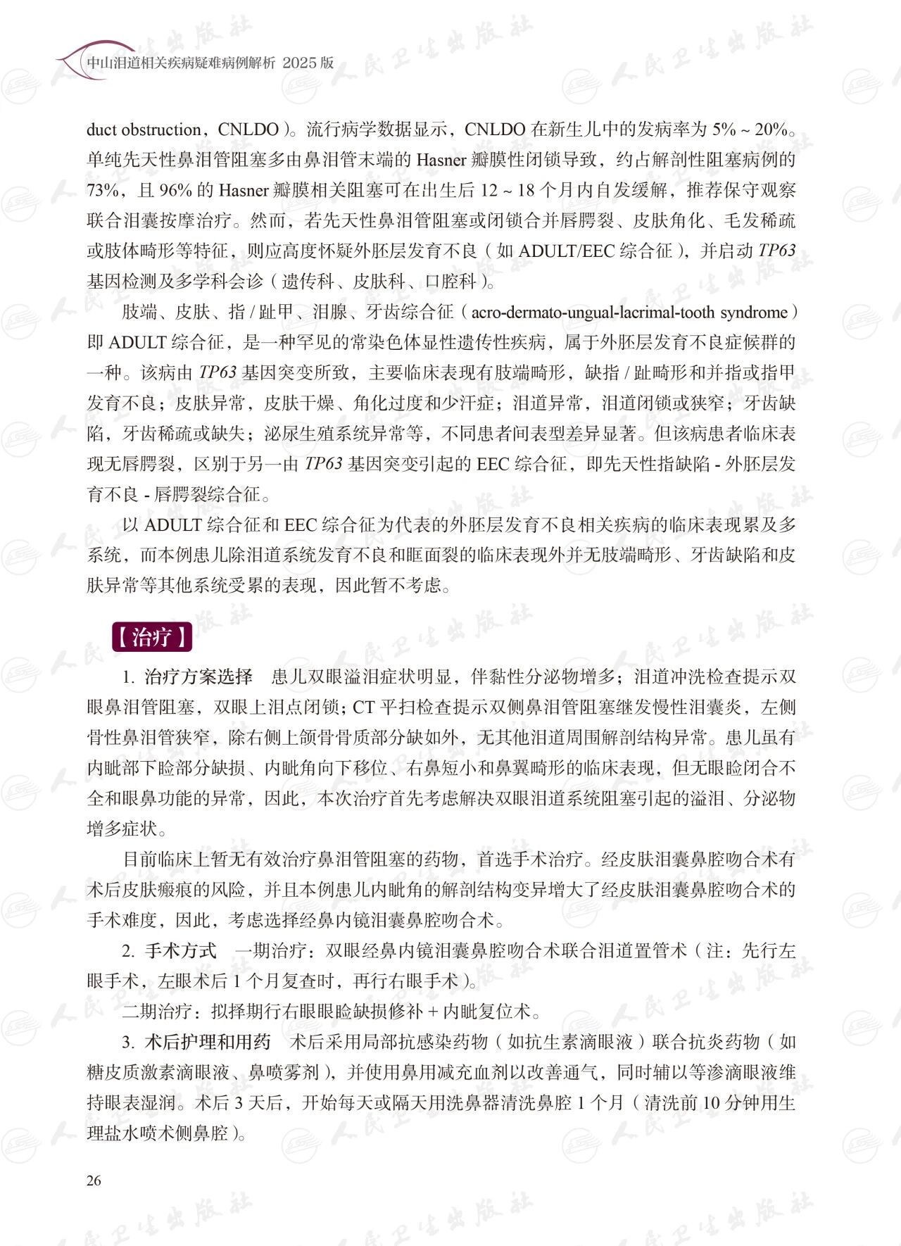 精选中山大学中山眼科中心泪道科团队近年来诊治的20例具有代表性的泪道疑难病例,涵盖先天性泪道畸形、复杂炎症、外伤后泪道结构重建等临床难点。每一病例均经细致筛选与深度剖析,呈现诊疗决策全过程、手术关键步骤的影像资料,着重阐述临床面对复杂病情、不确定性时的思维路径和应对策略。本书收录13段手术视频。