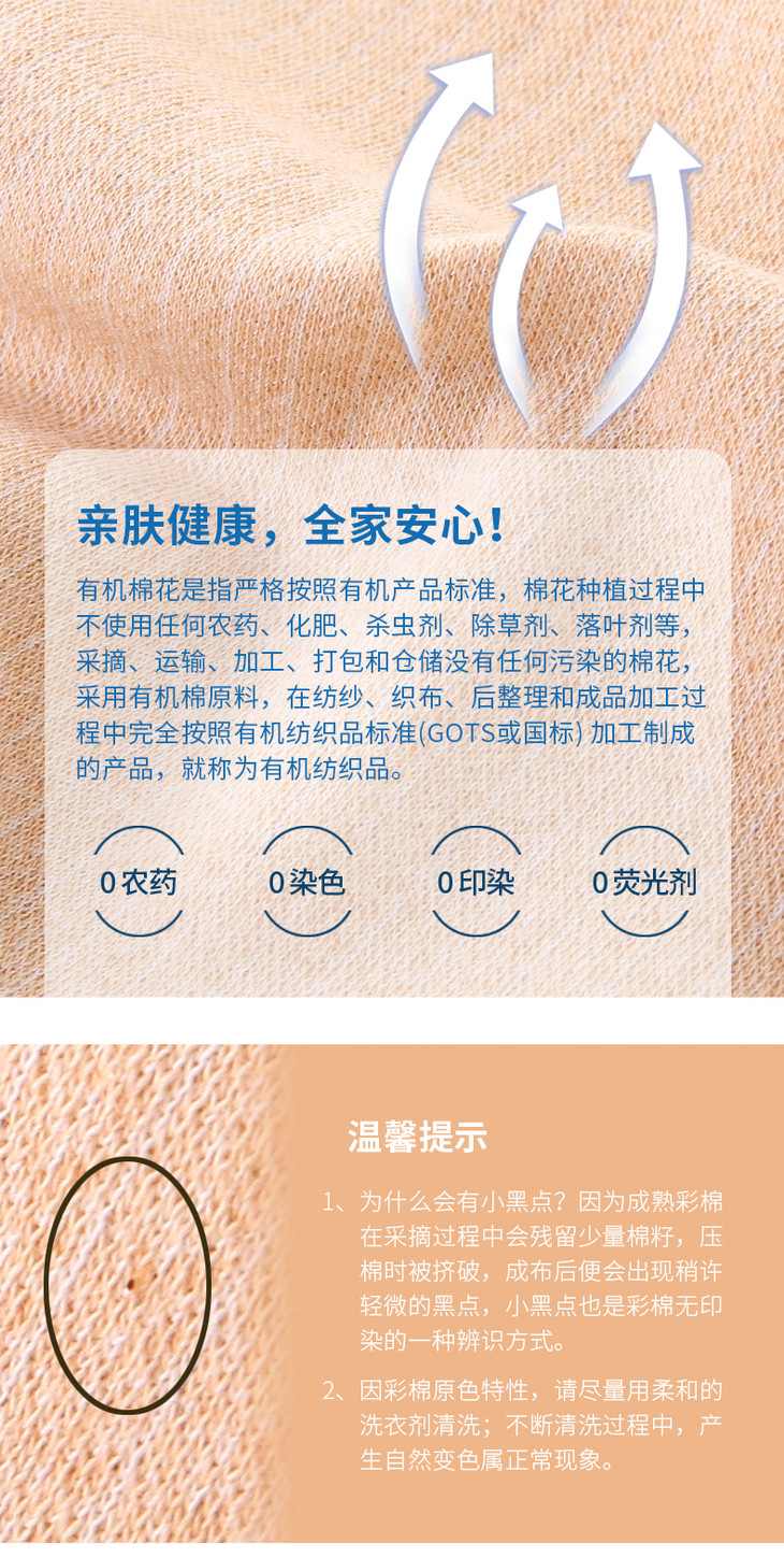 生产方式:棉花有机种植,加工过程无任何化学添加