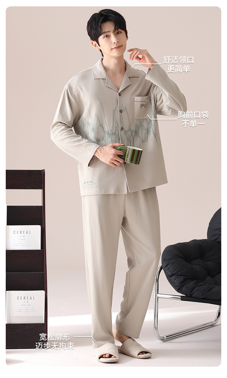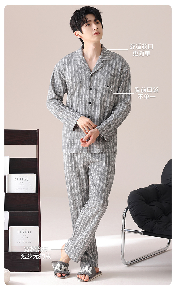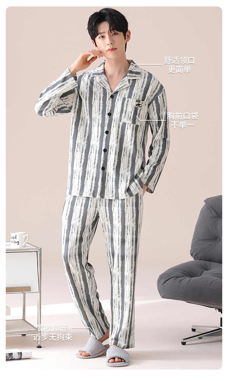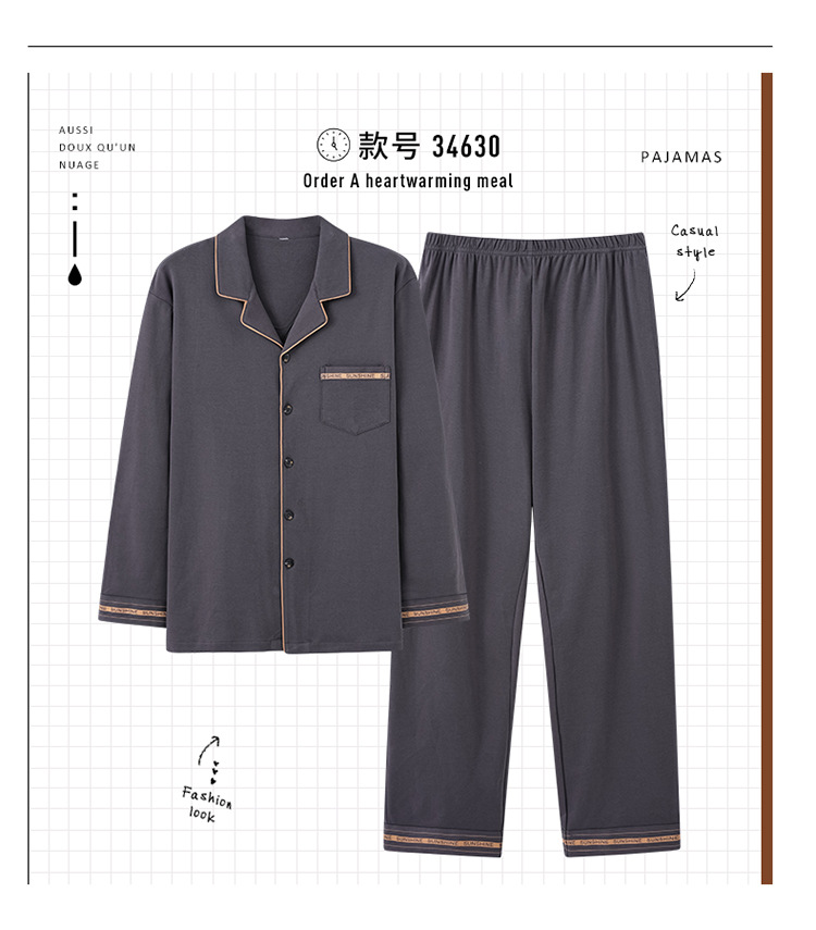 丁摩 高级感舒适睡衣男士春秋季纯棉长袖夏季简约青年男生家居服套装5ZF-34630