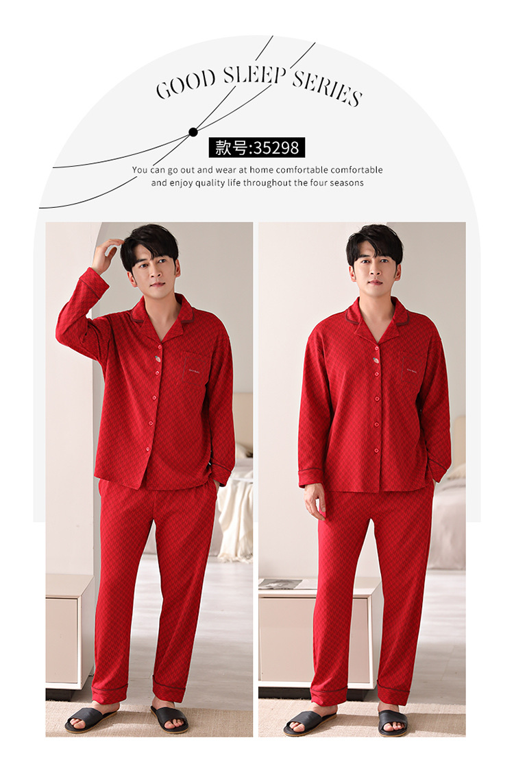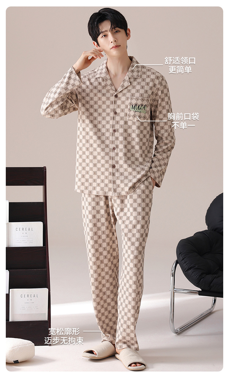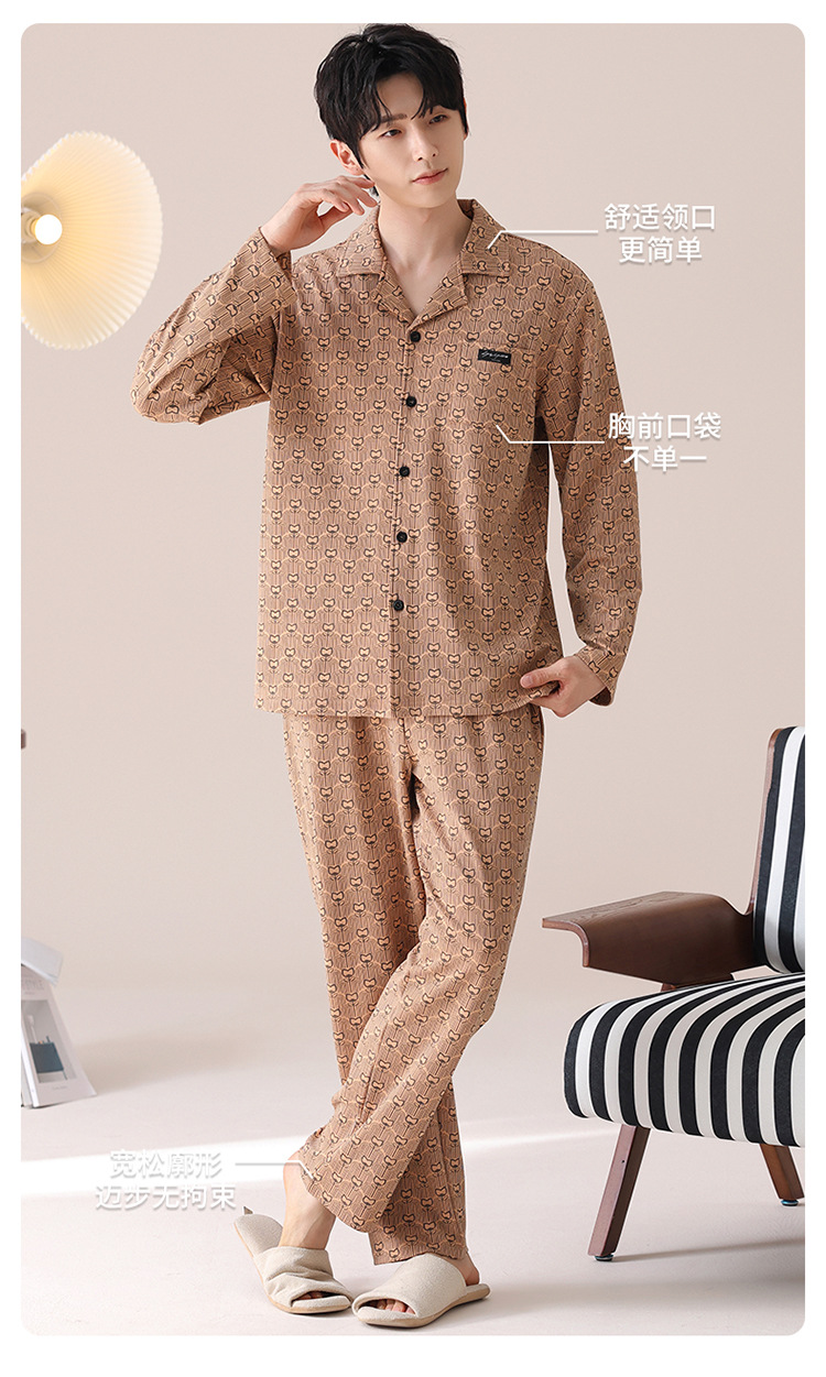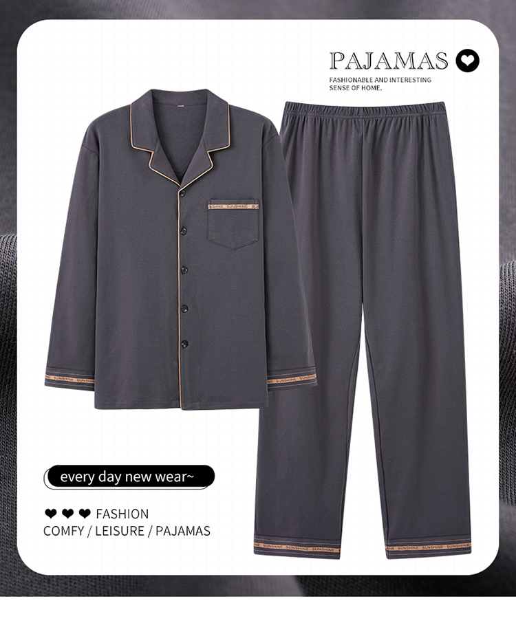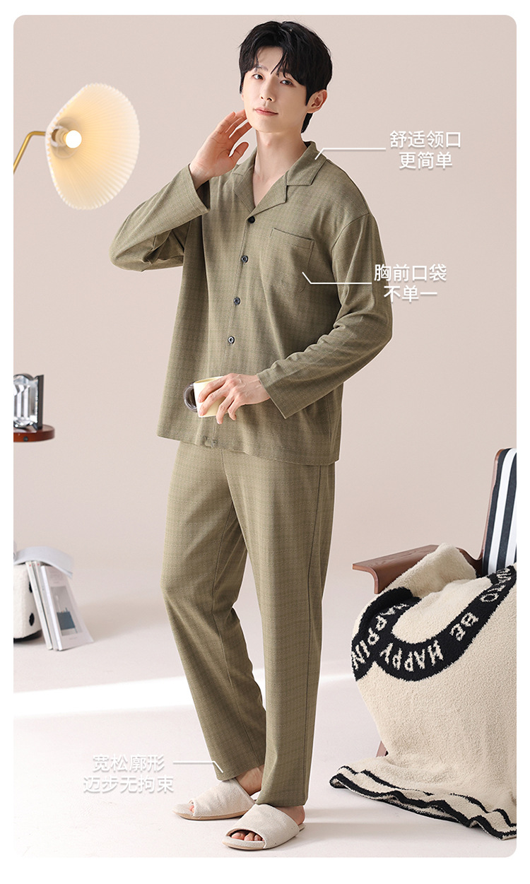 丁摩 高级感舒适睡衣男士春秋季纯棉长袖夏季简约青年男生家居服套装5ZF-34630