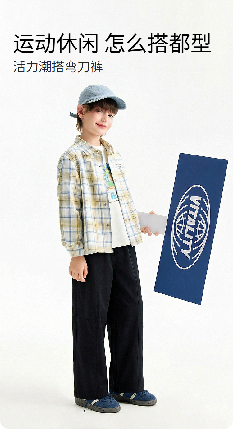 男女童全腰梭织单裤春季新款安奈儿童装EM616667
