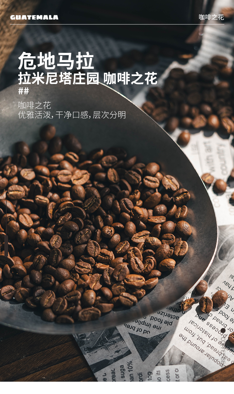 【茶馆咖啡】危地马拉 咖啡之花丨SHB高等级特硬咖啡之花咖啡豆,水洗豆,中度烘焙,优雅活泼,干净口感,层次分明(满90元包邮)