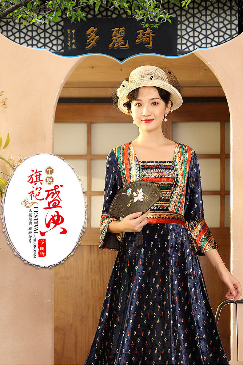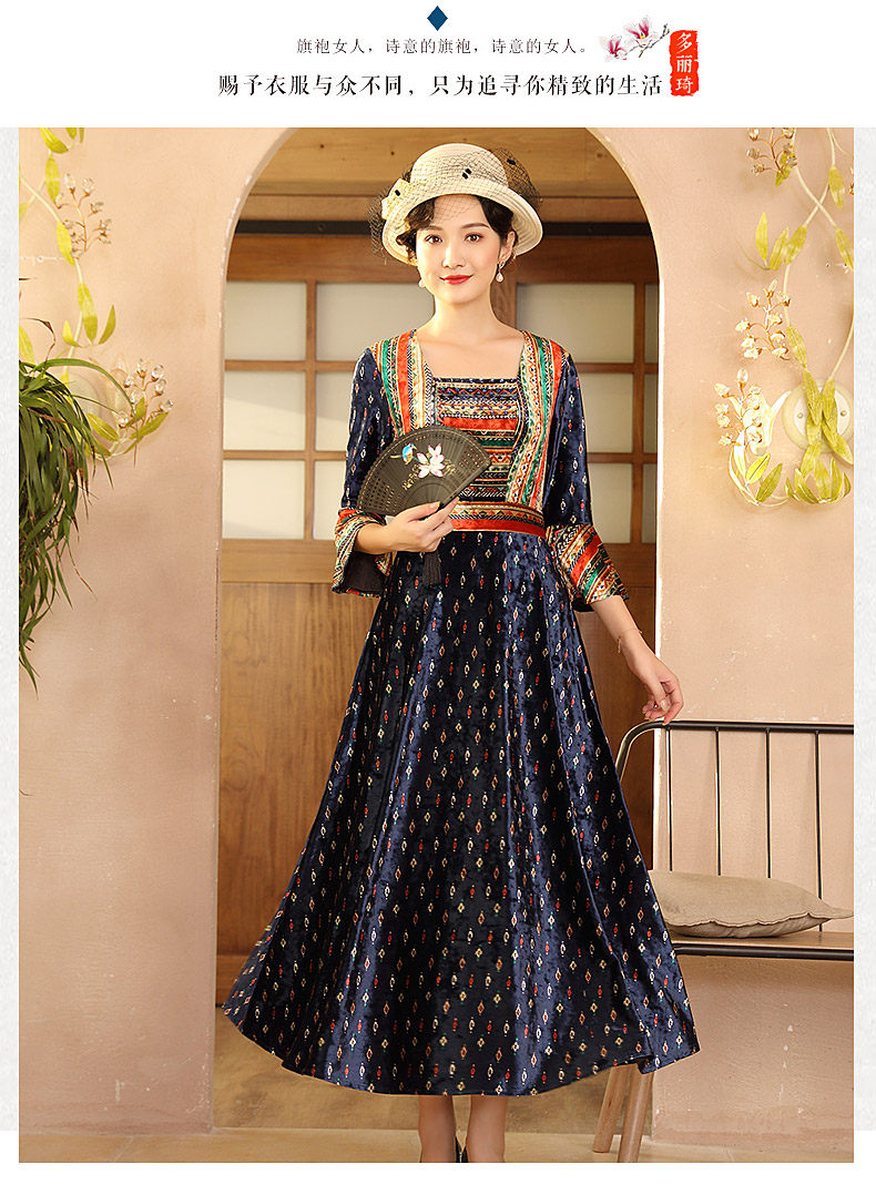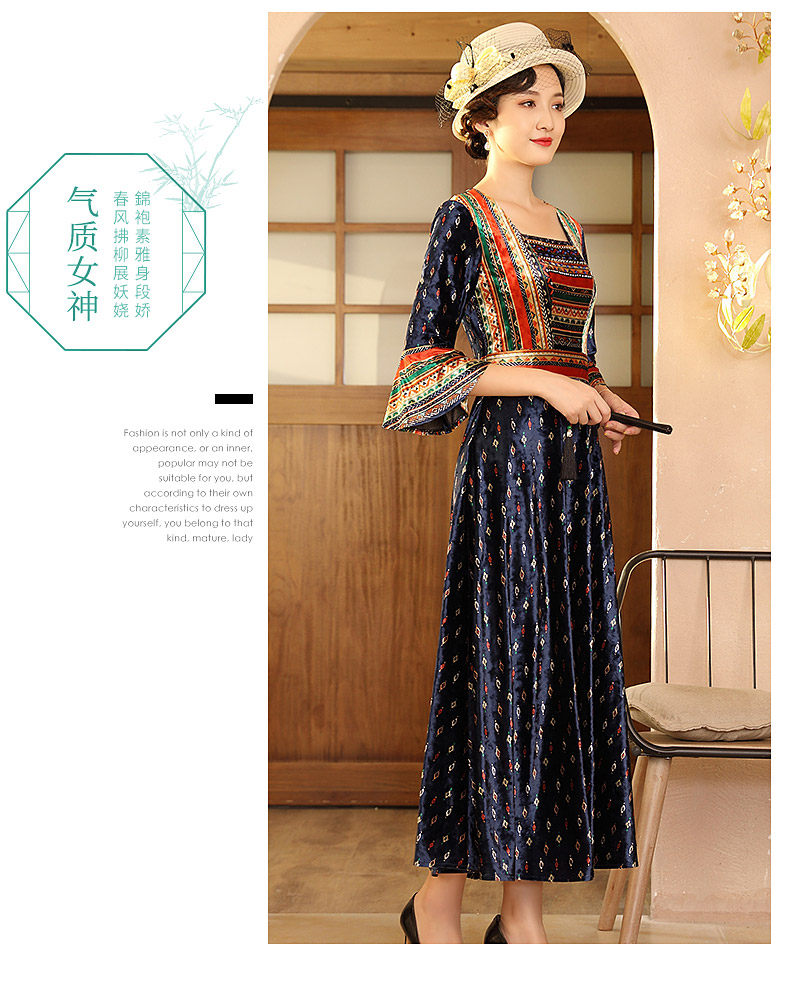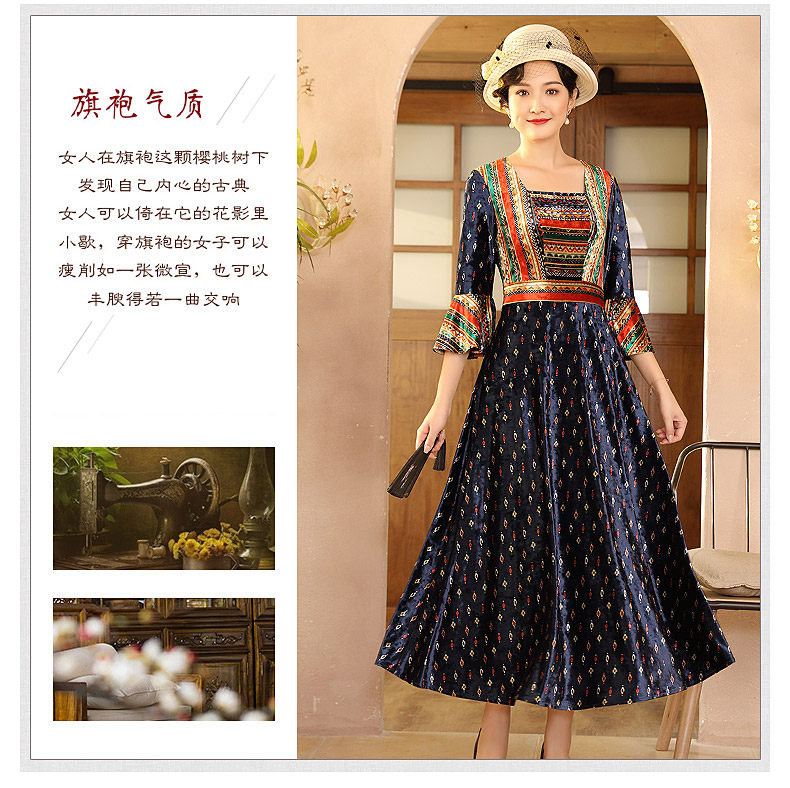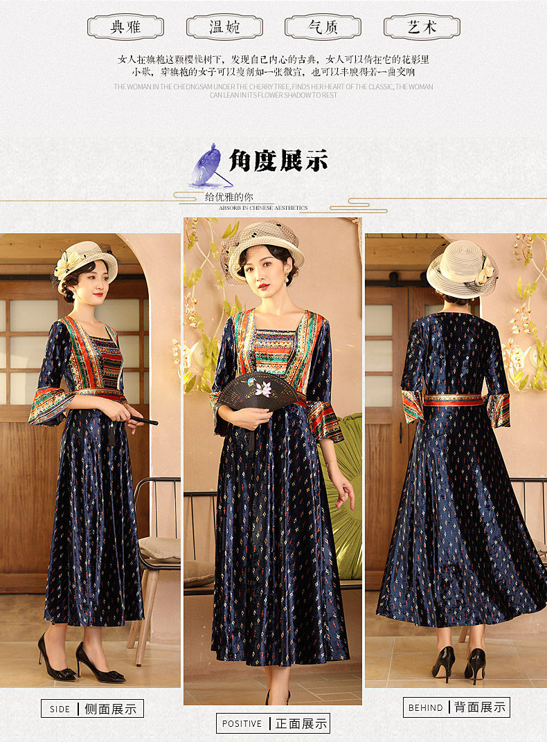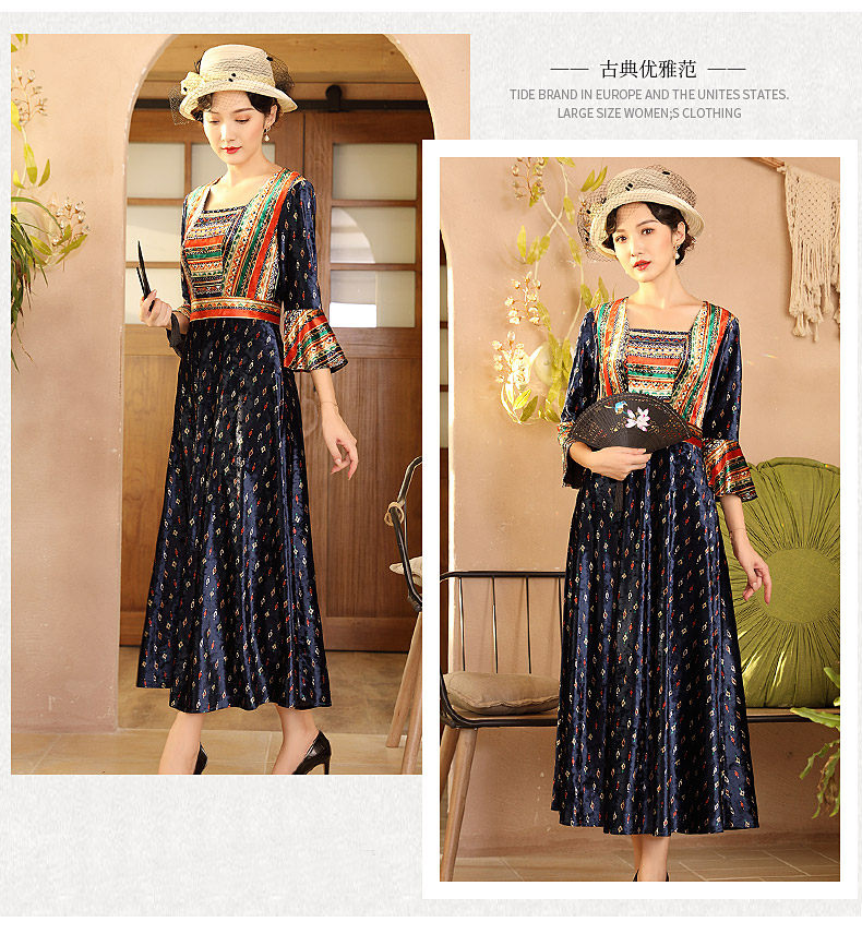 DLQ-A2674复古优雅印花新款收腰显瘦气质妈妈装长裙