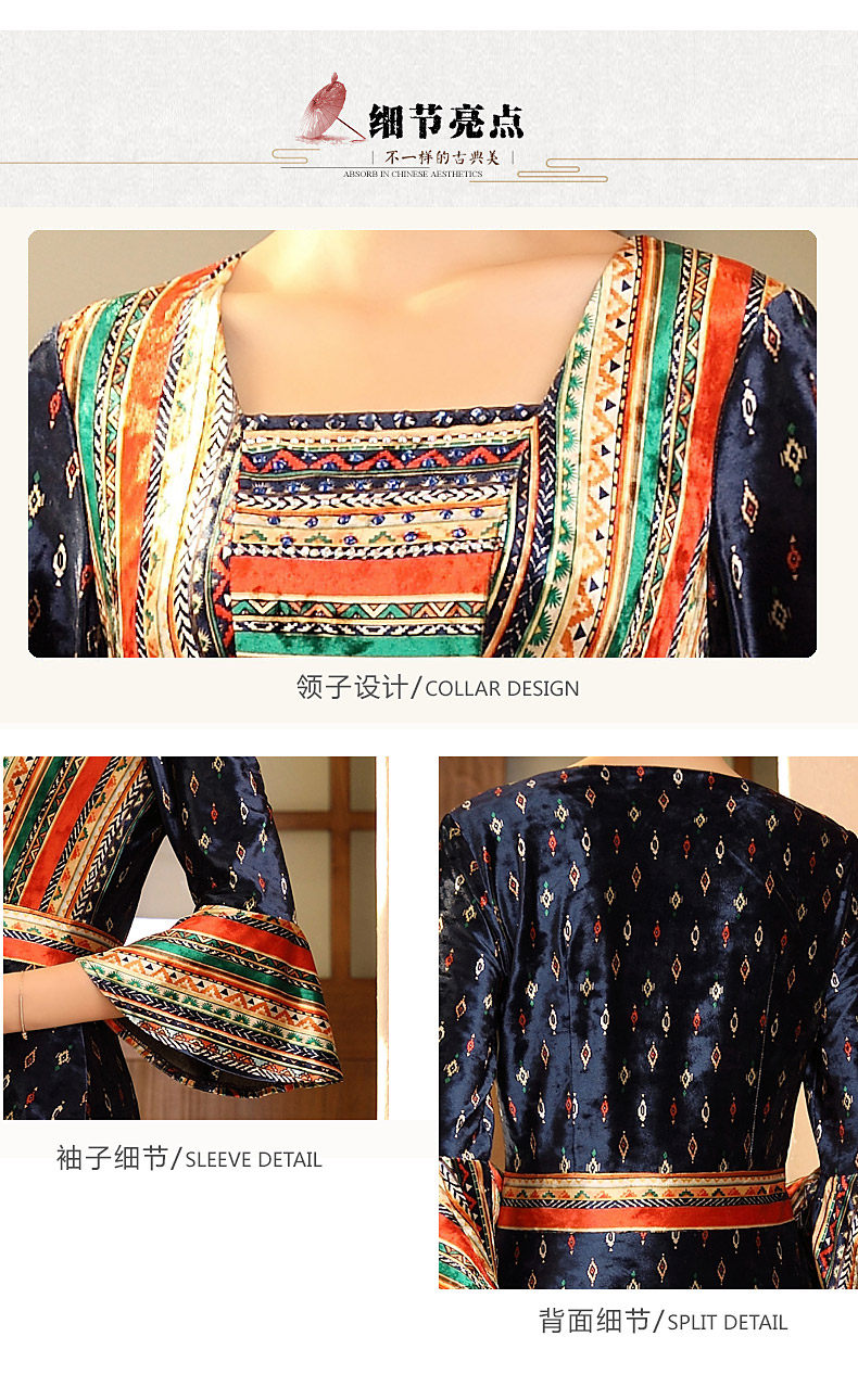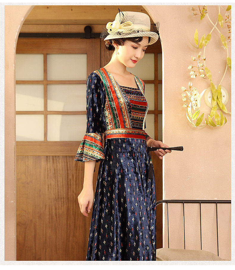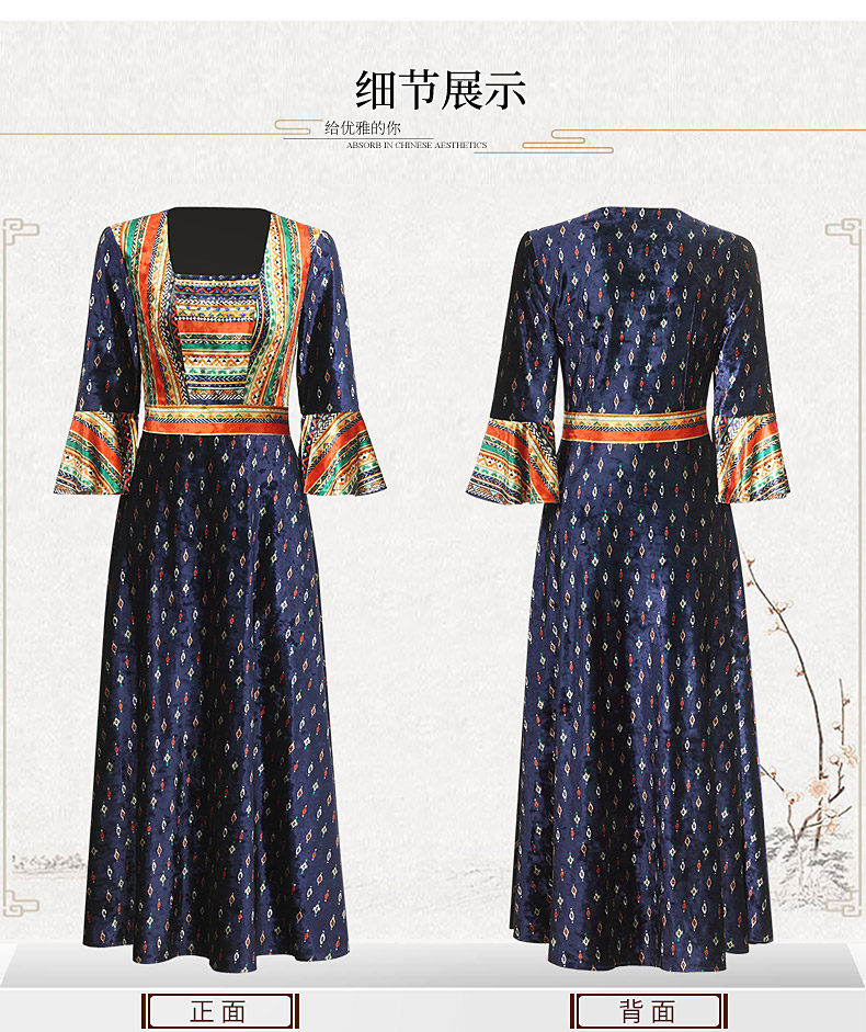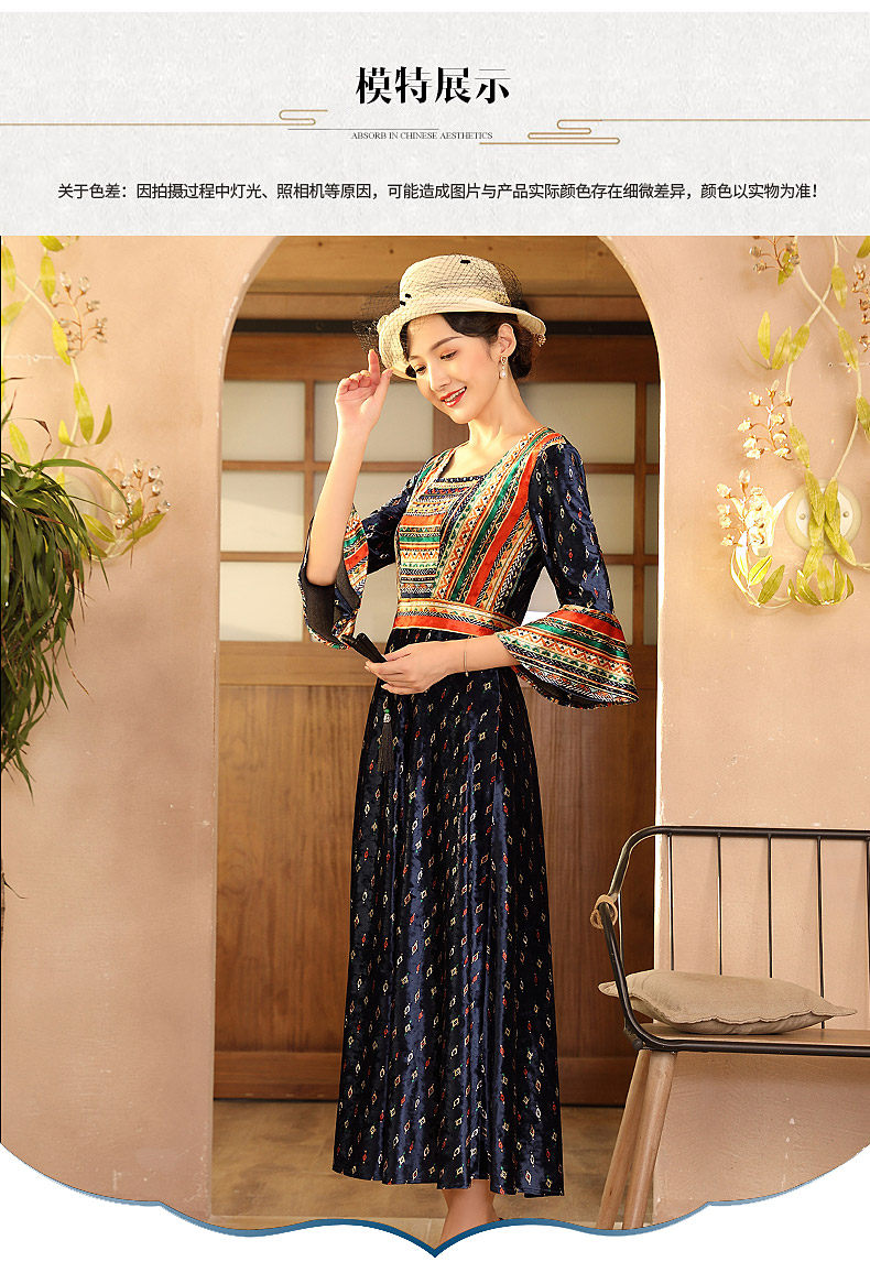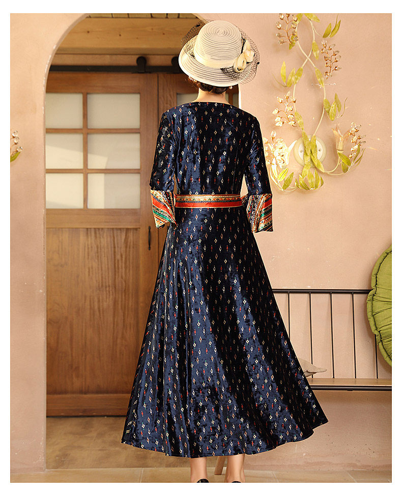 DLQ-A2674复古优雅印花新款收腰显瘦气质妈妈装长裙