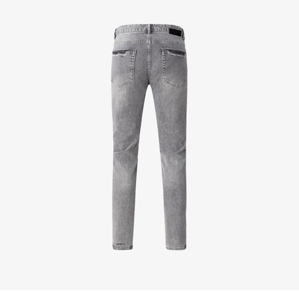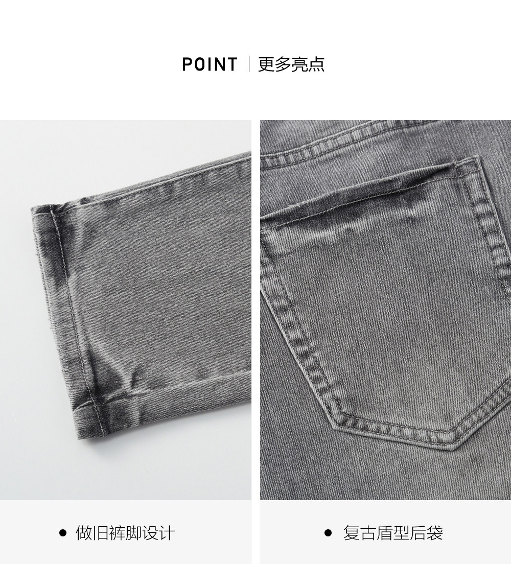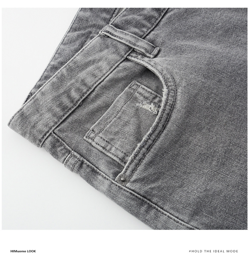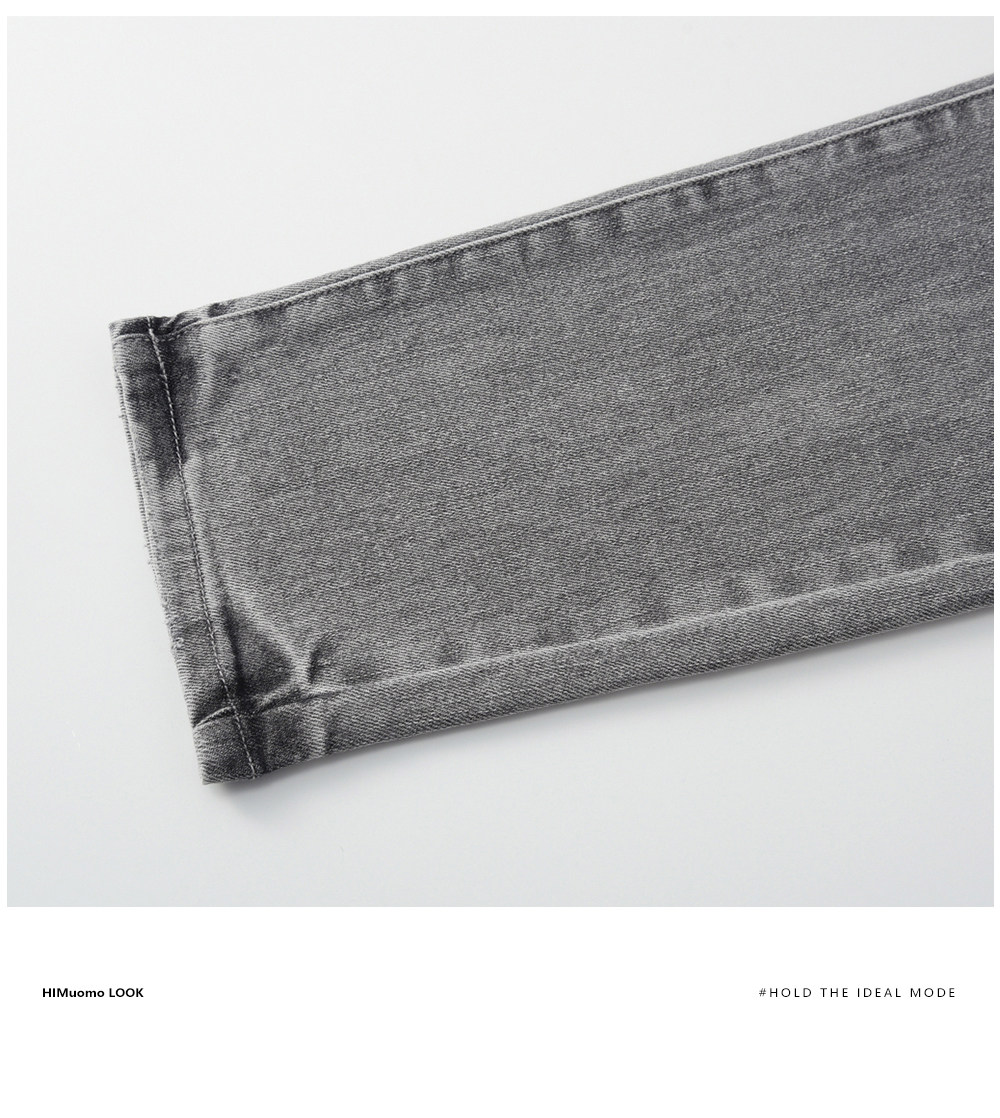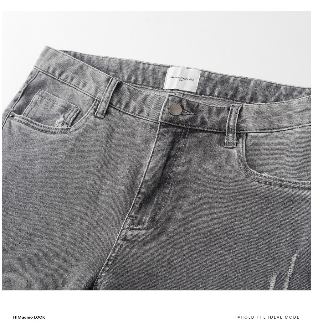 HIM漢崇 修身弹力烟灰色牛仔裤男潮流百搭破洞小脚长裤 2025秋季