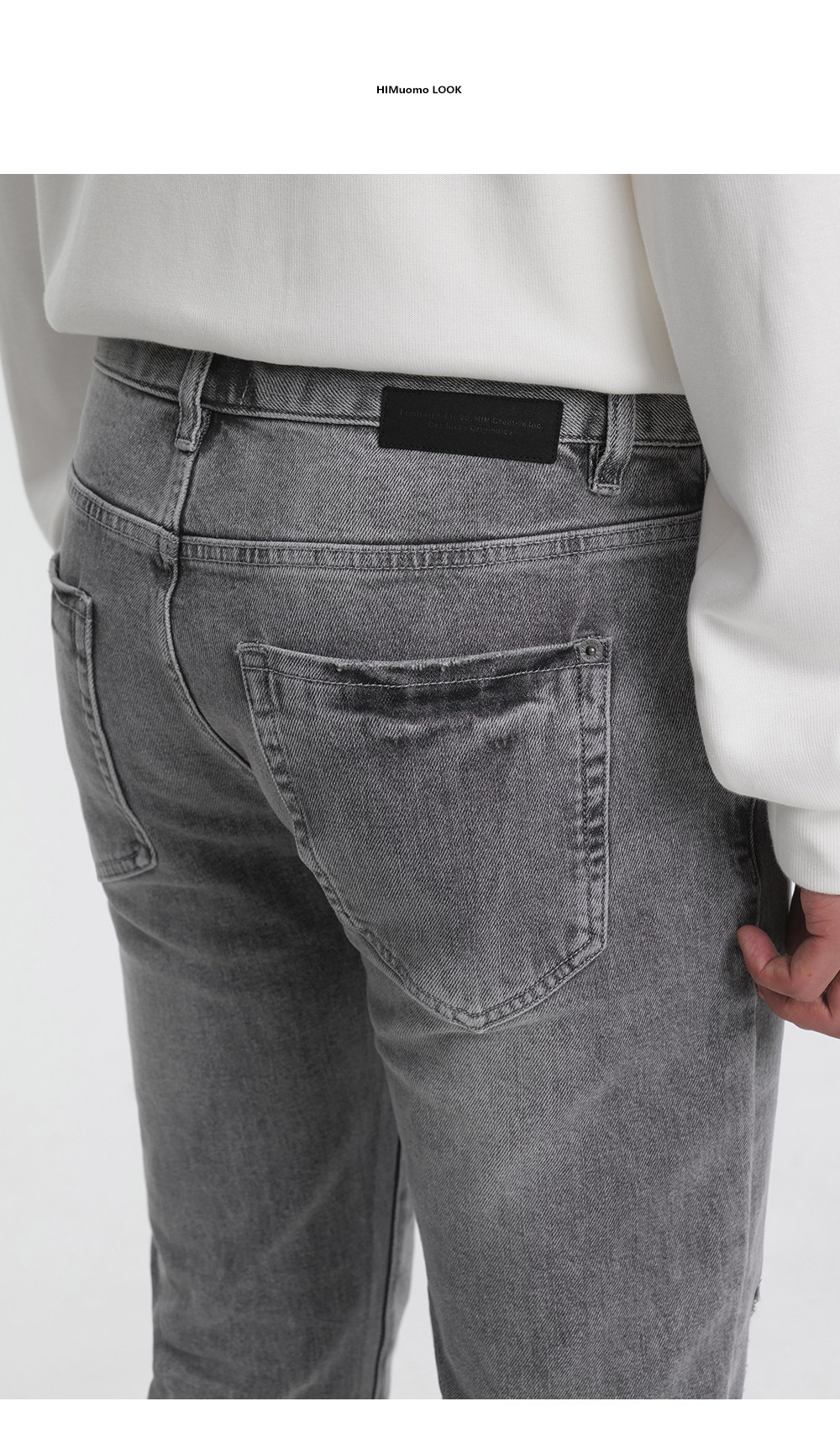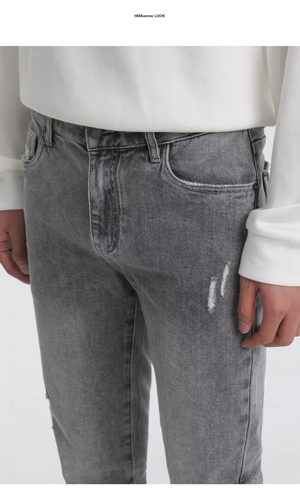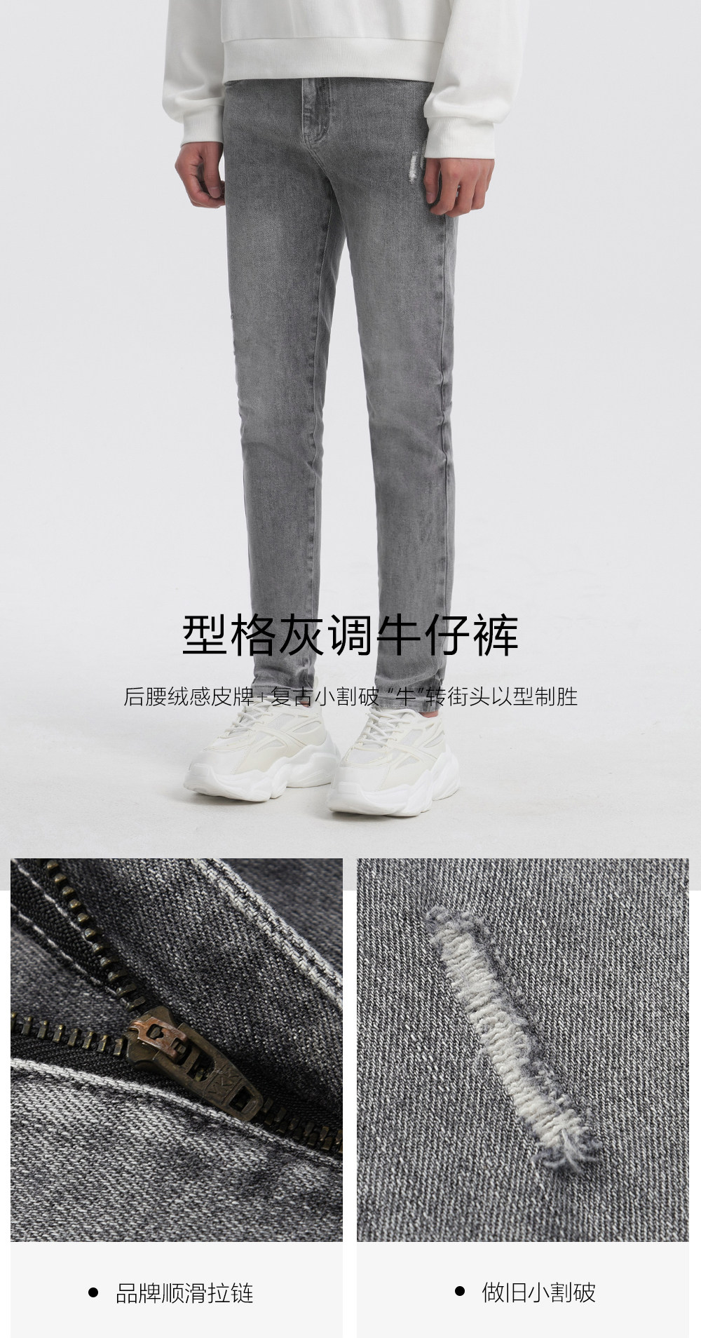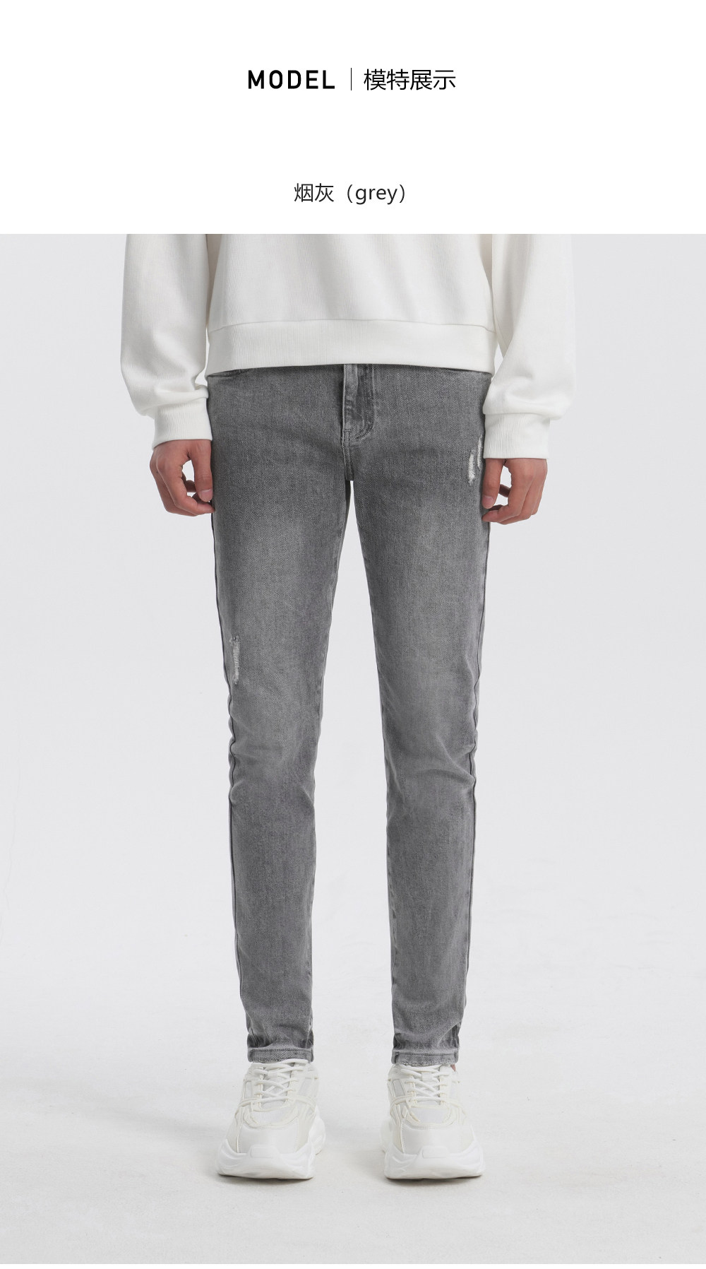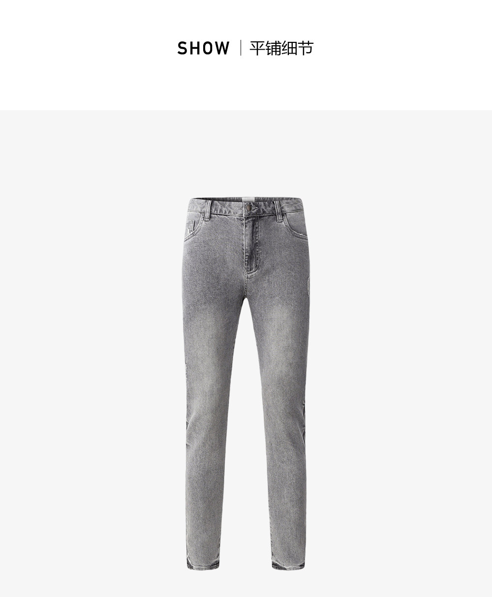 HIM漢崇 修身弹力烟灰色牛仔裤男潮流百搭破洞小脚长裤 2025秋季