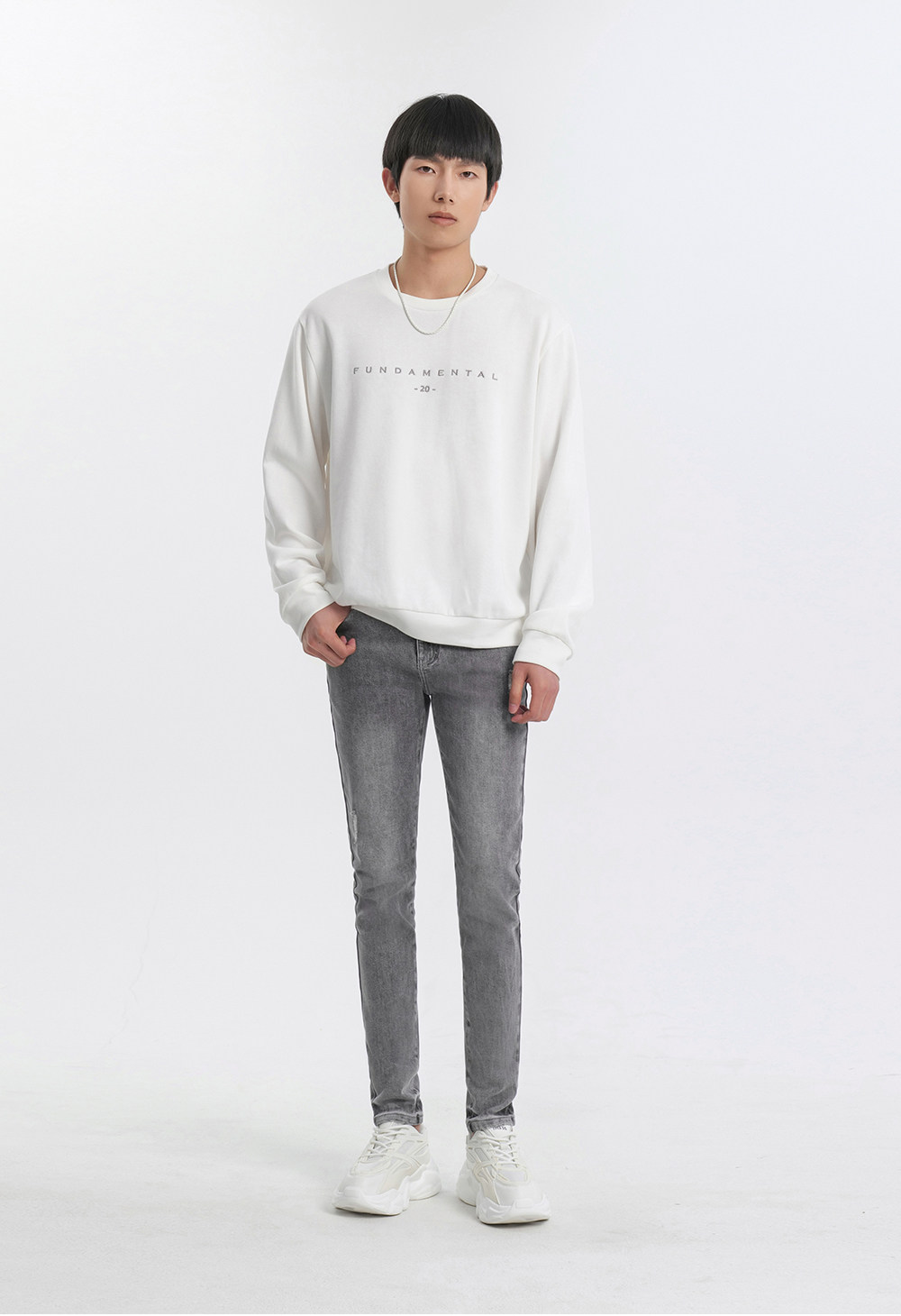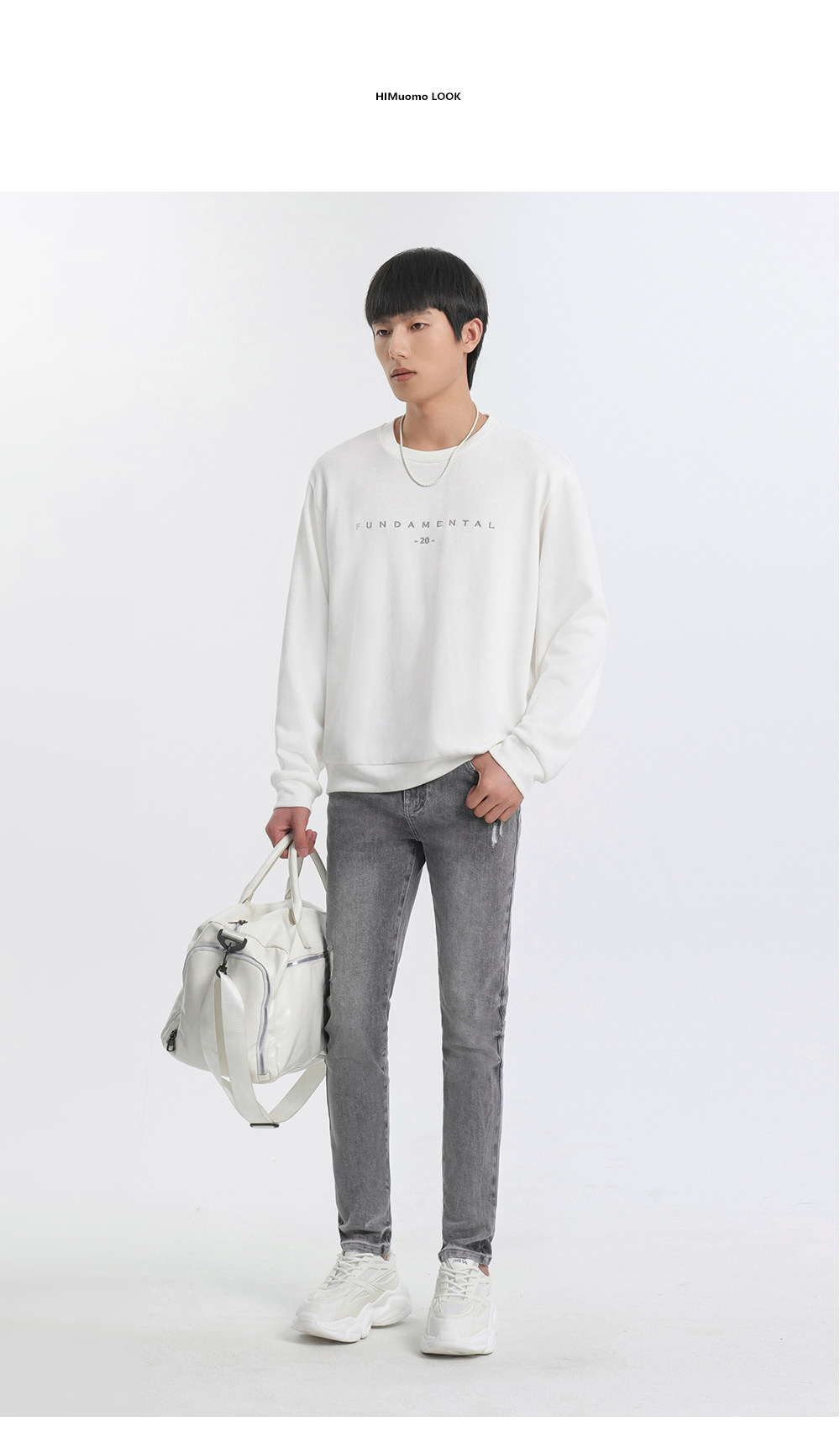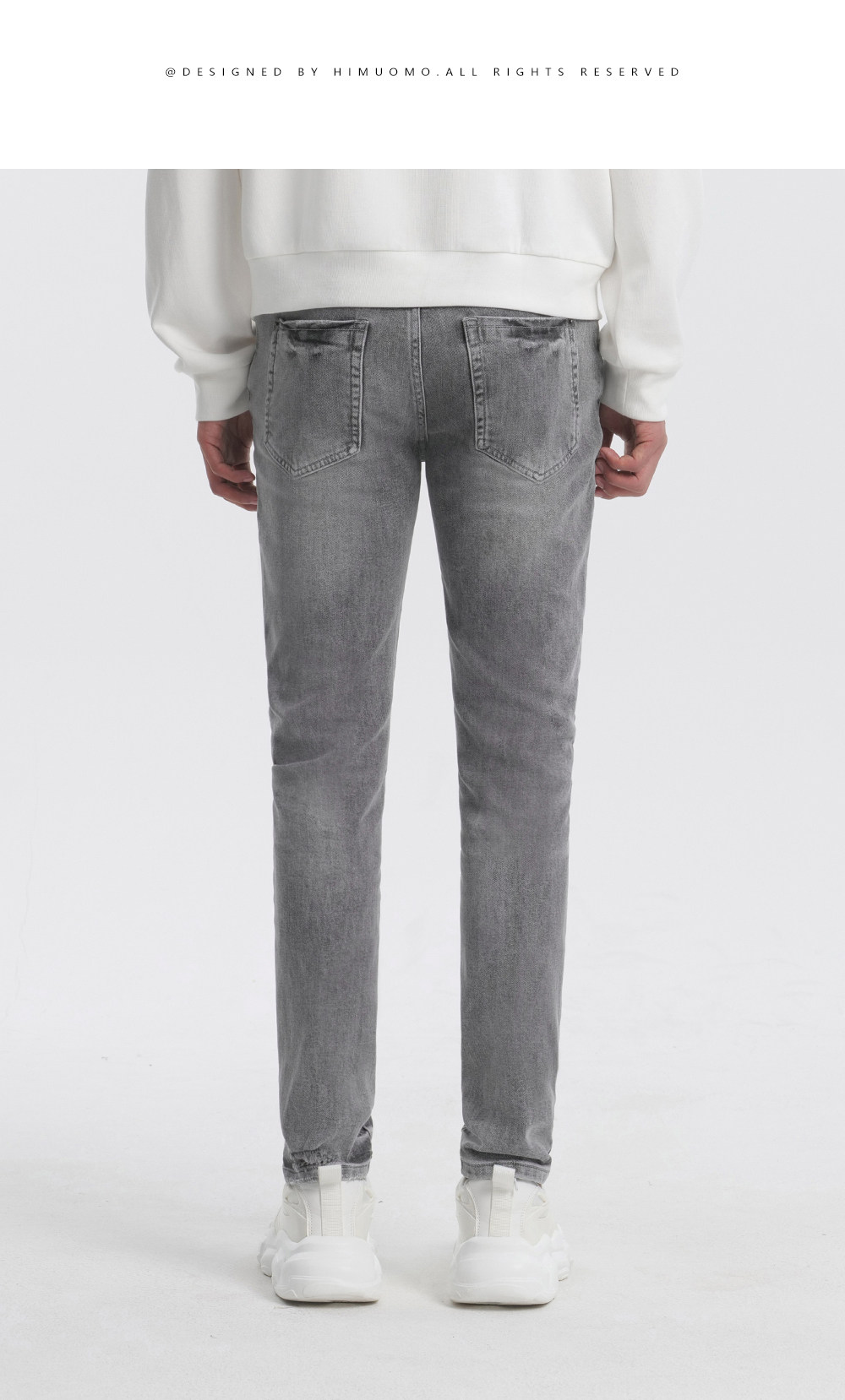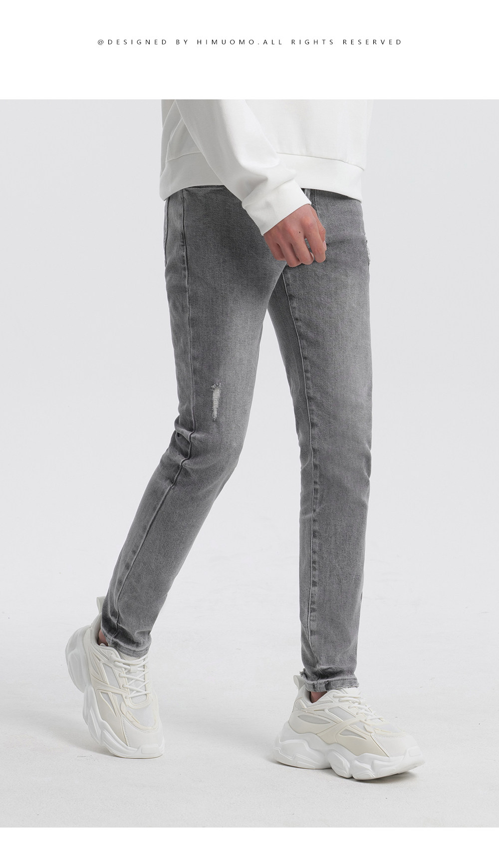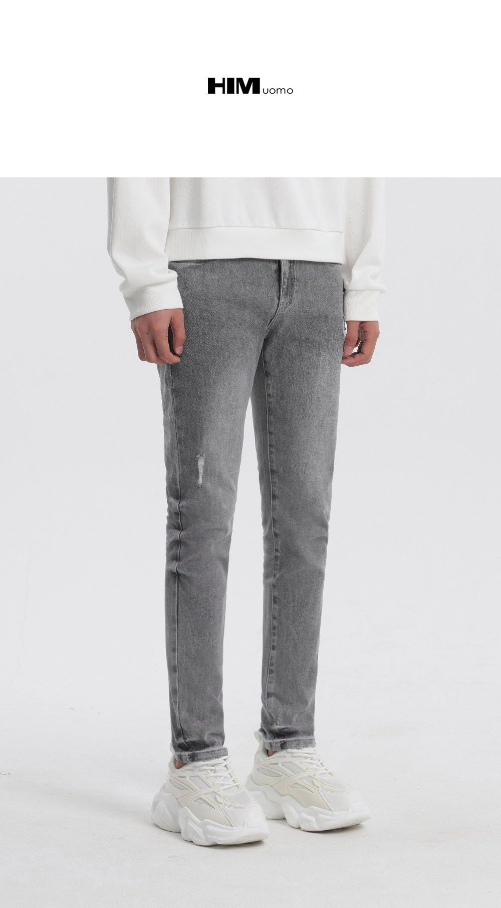 HIM漢崇 修身弹力烟灰色牛仔裤男潮流百搭破洞小脚长裤 2025秋季