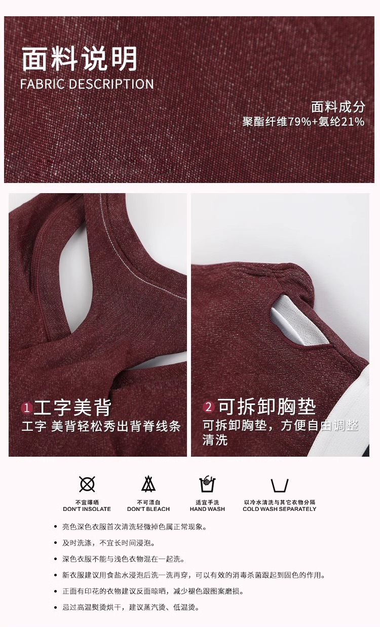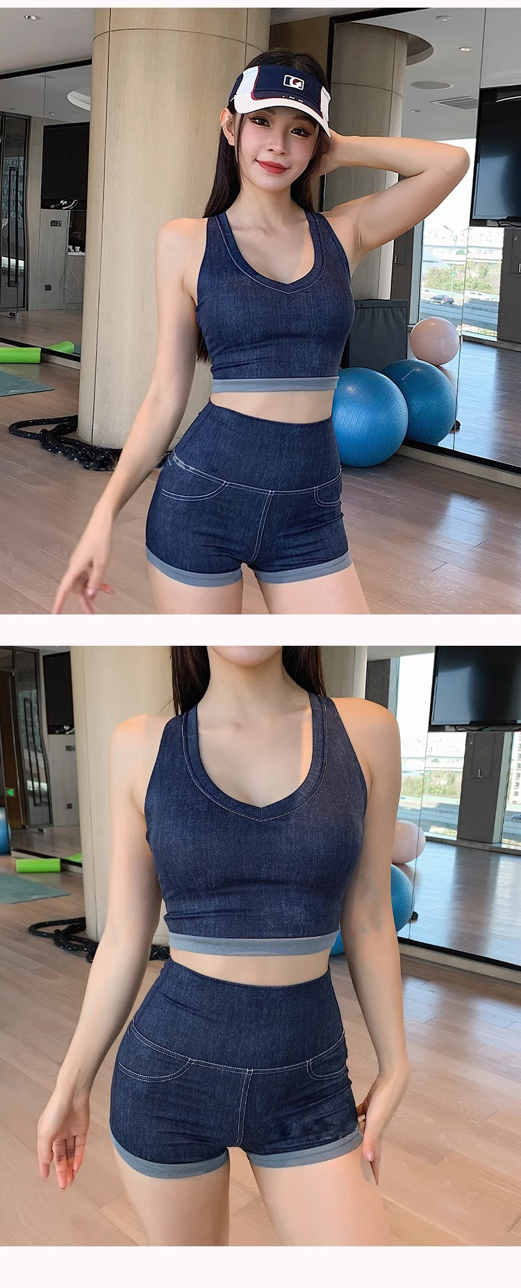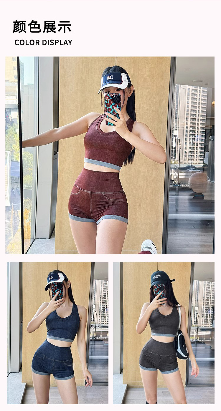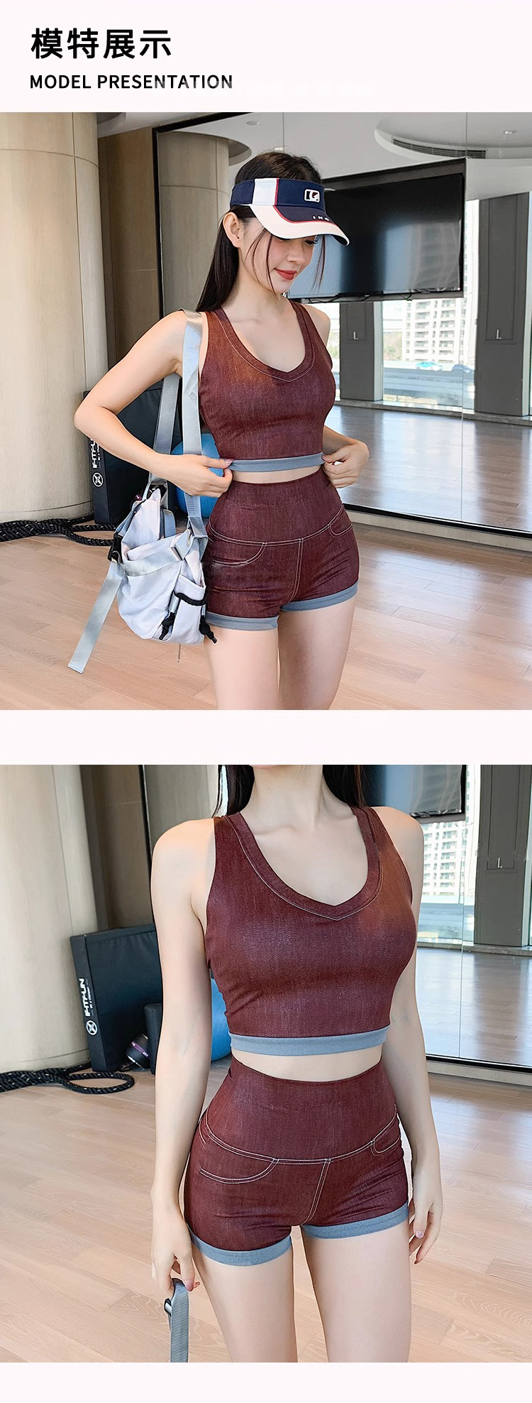 跃牌【禅语梵心】仿牛仔运动内衣女跑步美背普拉提文胸健身bra背心瑜伽服WX4043