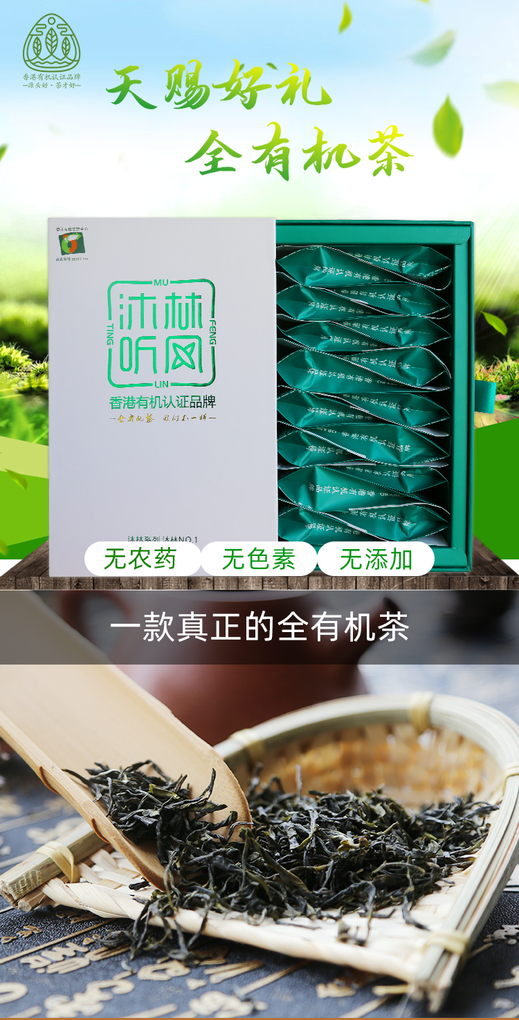 沐林听风 2020新茶明前全有机毛峰绿茶叶浓香型一级高品质天然无添加紫金茶礼盒装 16包100g