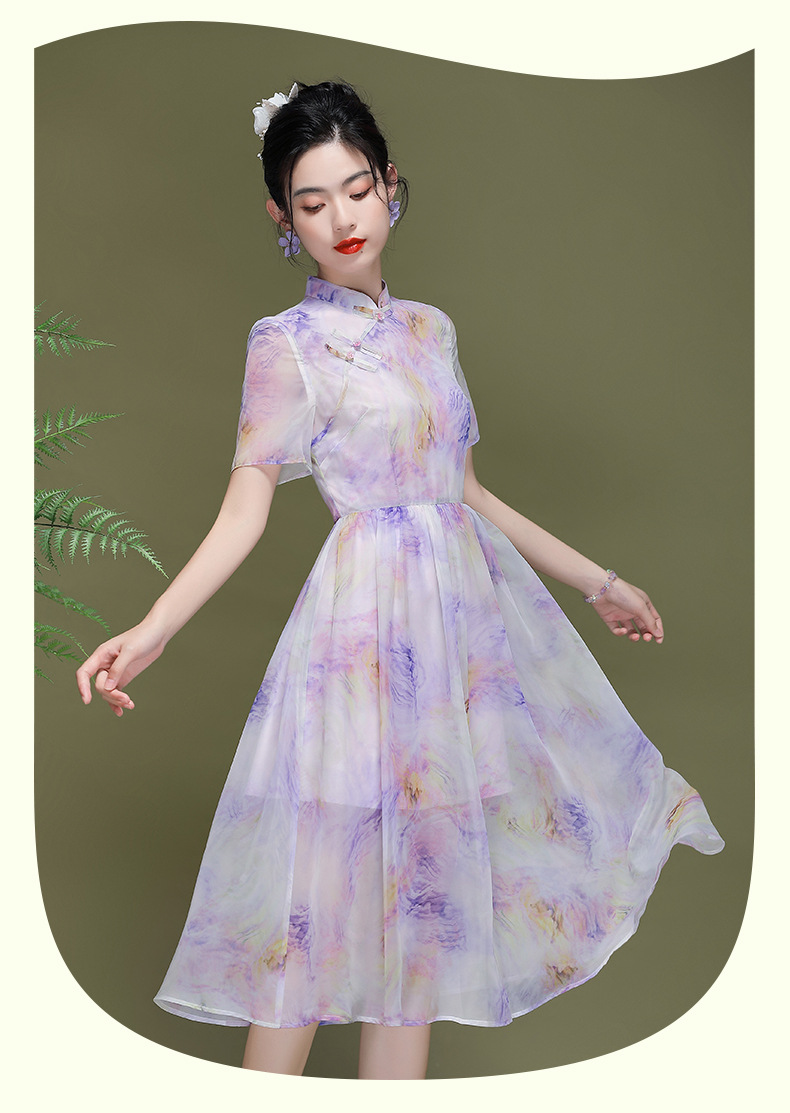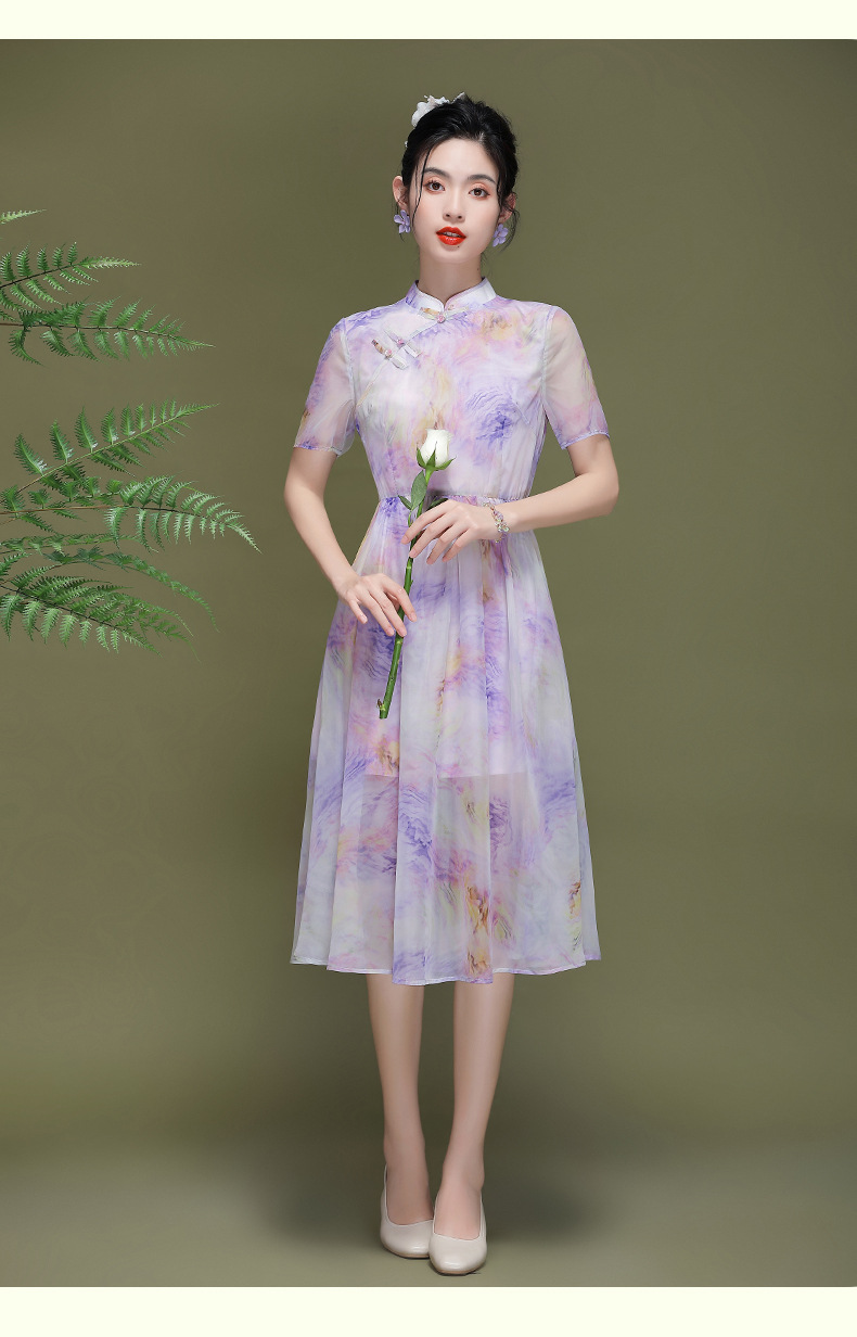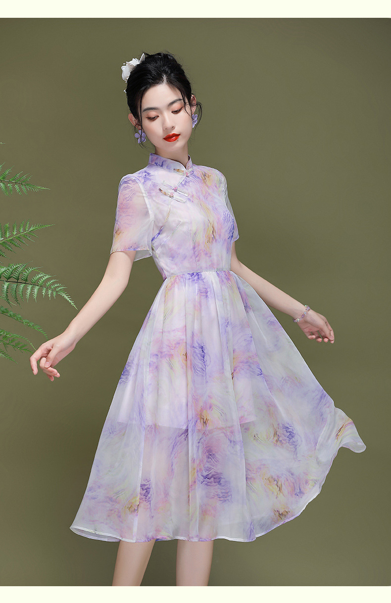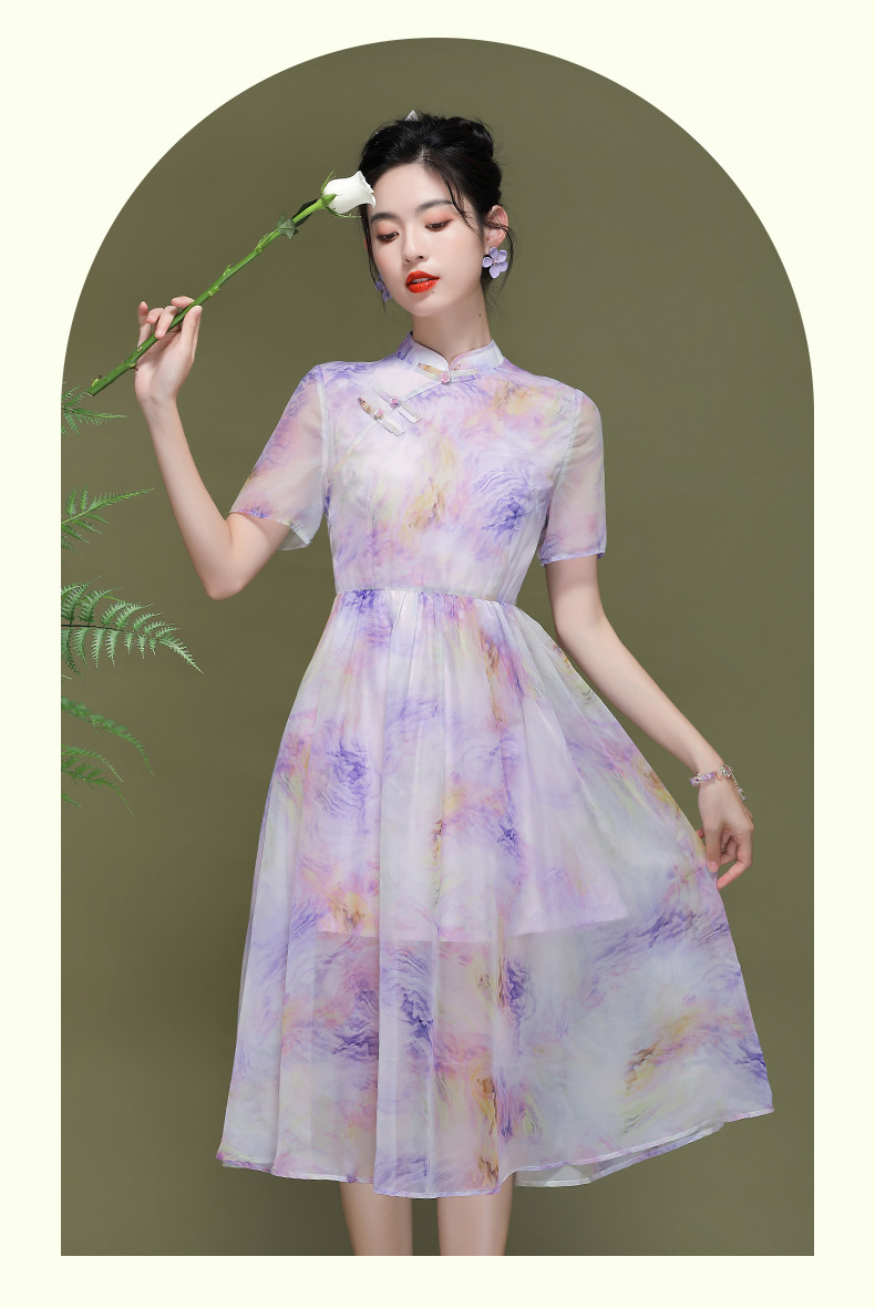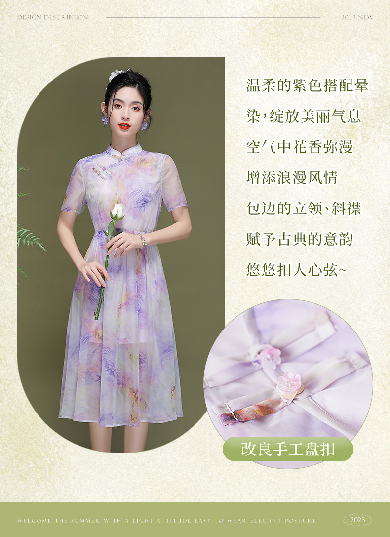夏季新款,时尚优雅改良年轻玻璃纱旗袍连衣裙OY-230269