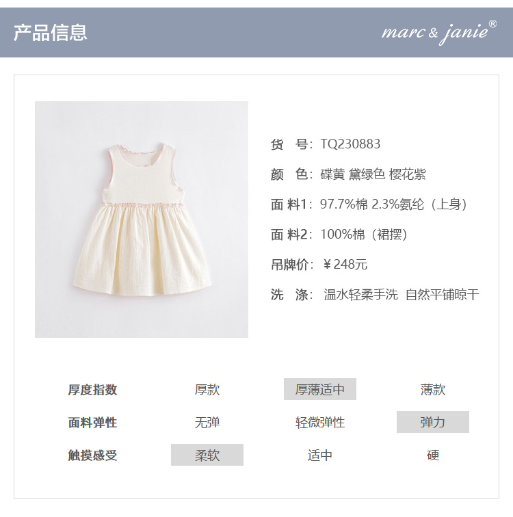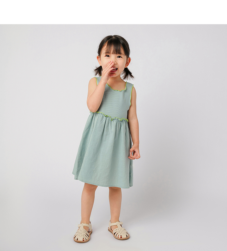 马克珍妮夏装 女童撞色木耳边锁边针织背心裙 儿童裙子230883