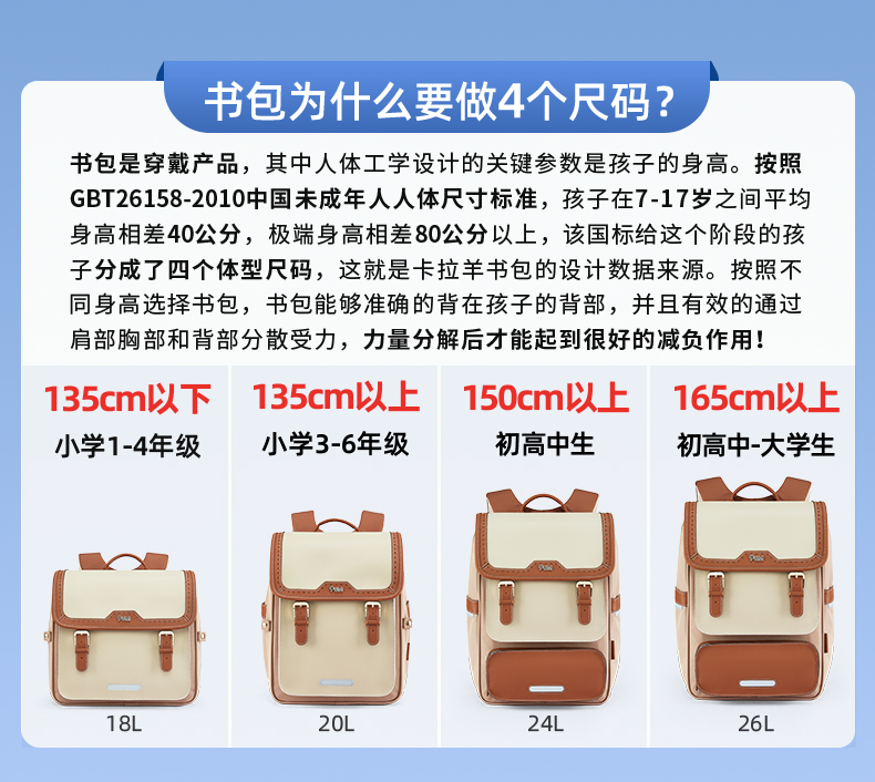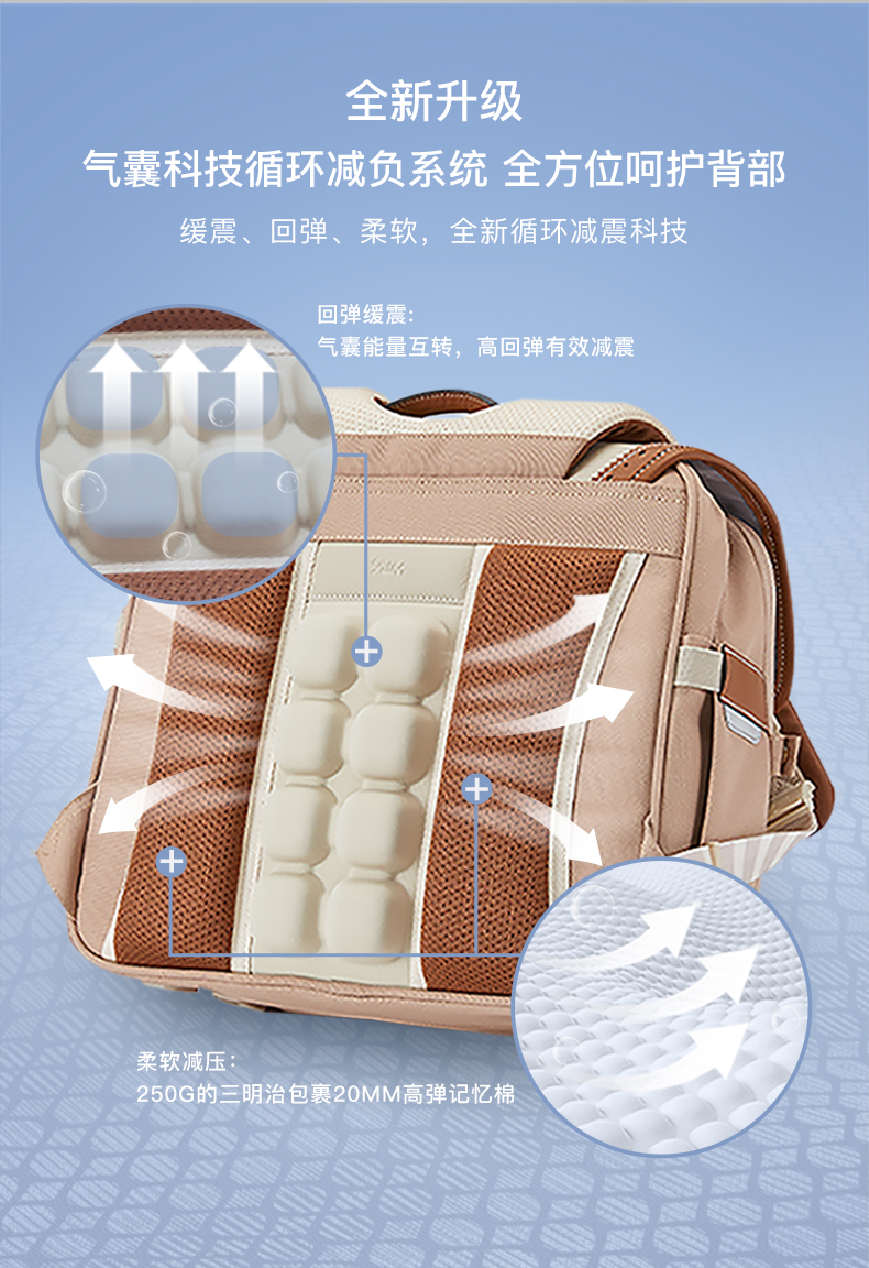 卡拉羊X九微米 18L/20L小学生1-3-6年级防下坠减负气囊缓震轻奢立体书包 维也纳U2180+U2620