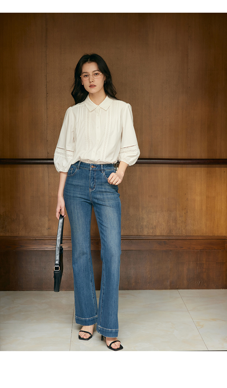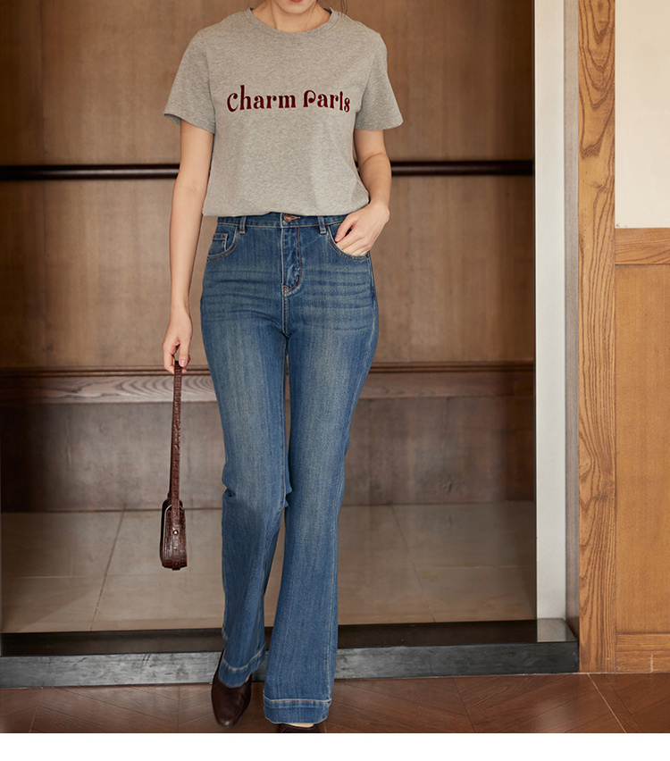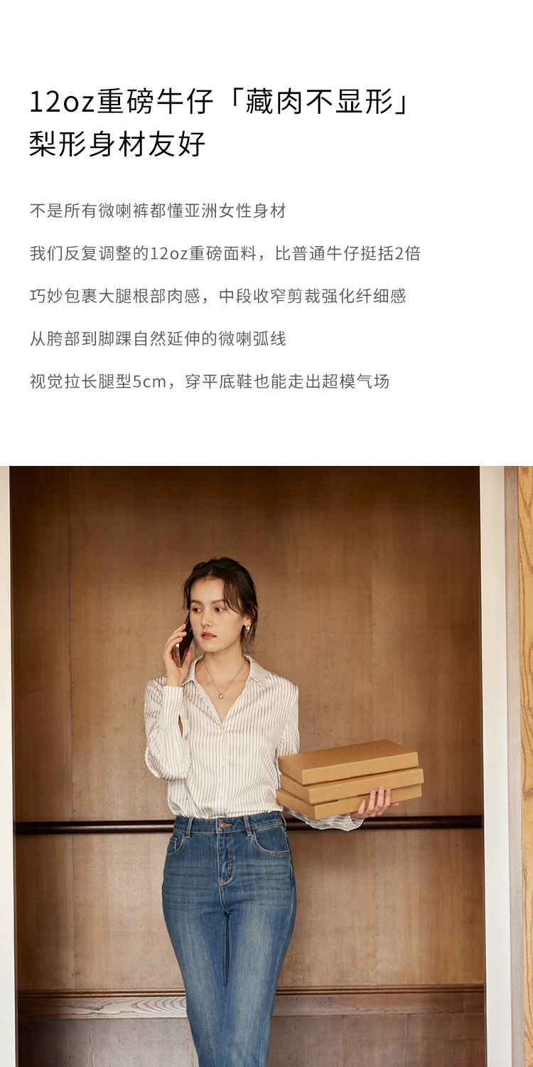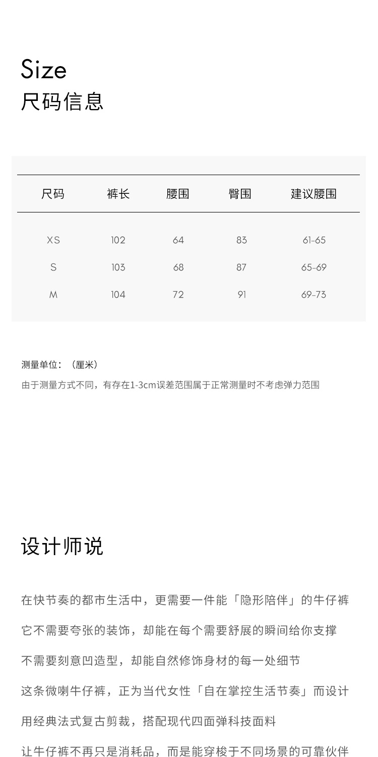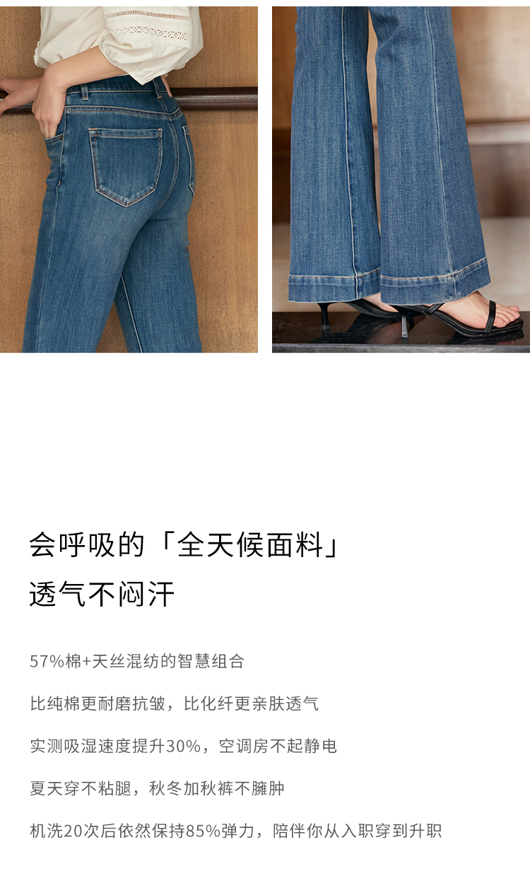 HeyDress四面弹微喇牛仔裤女春季法式复古修身直筒裤通勤百搭裤子