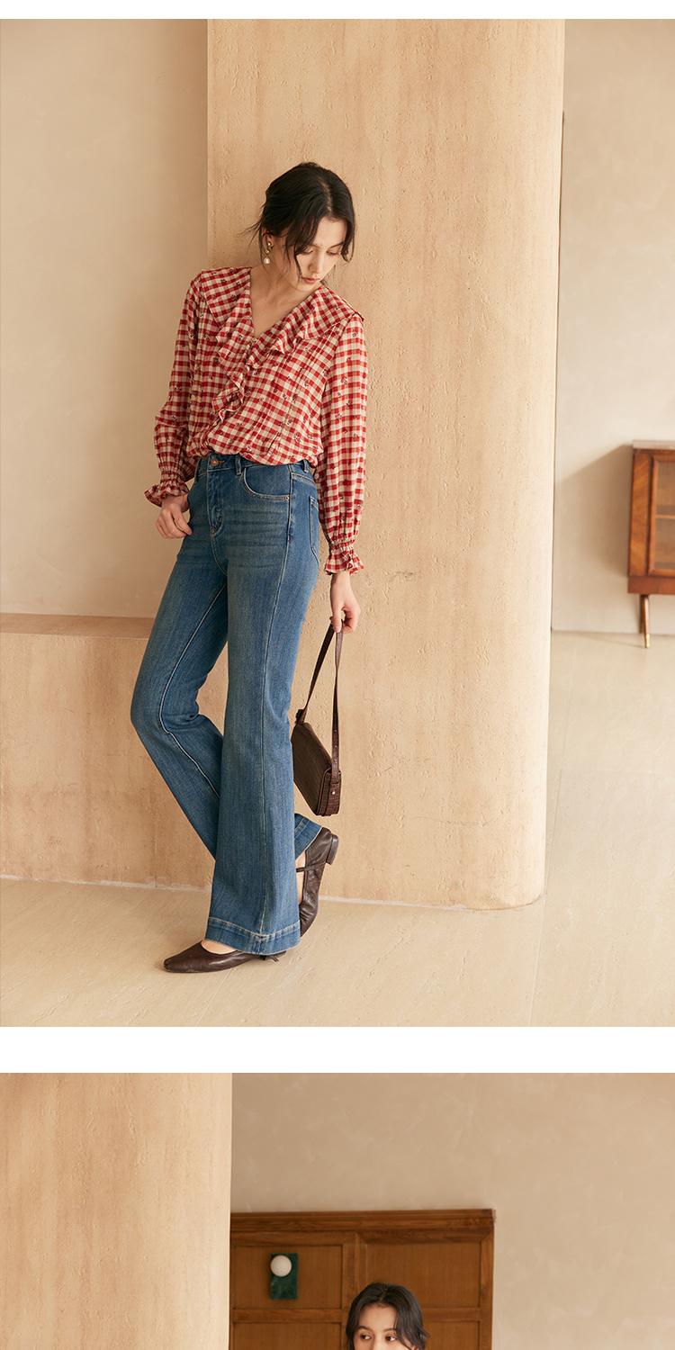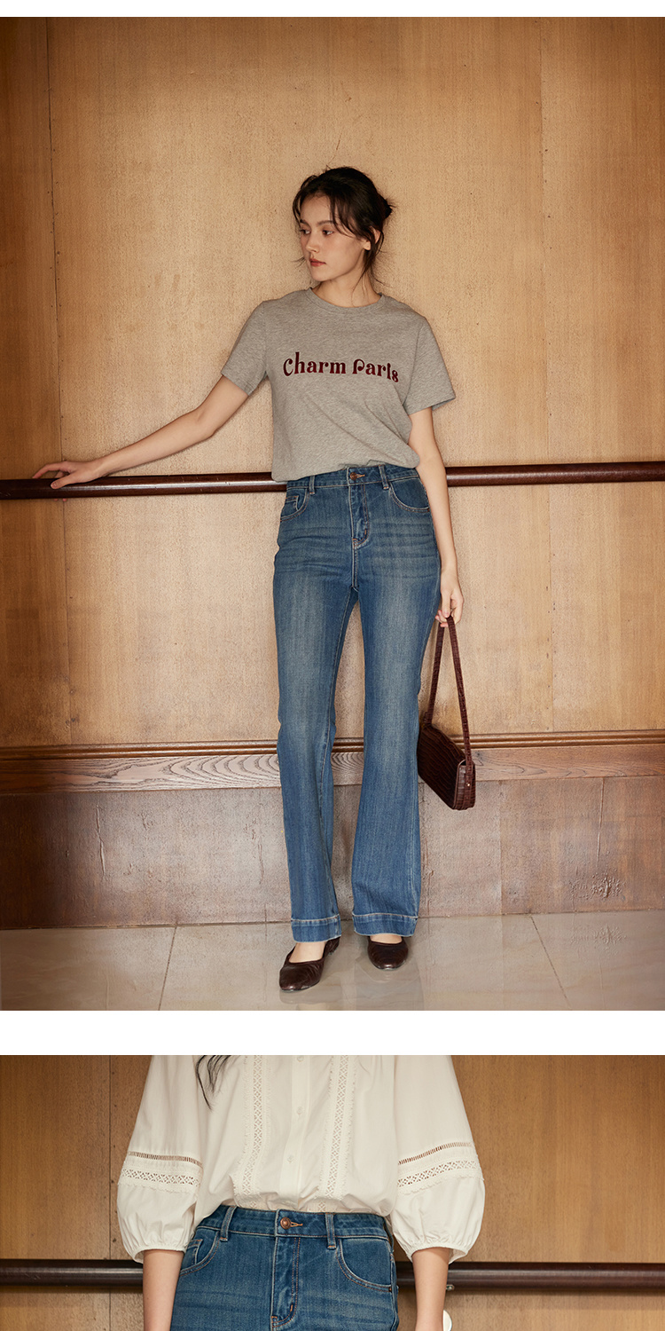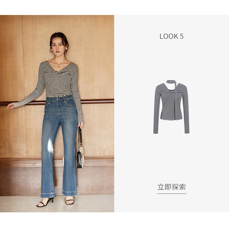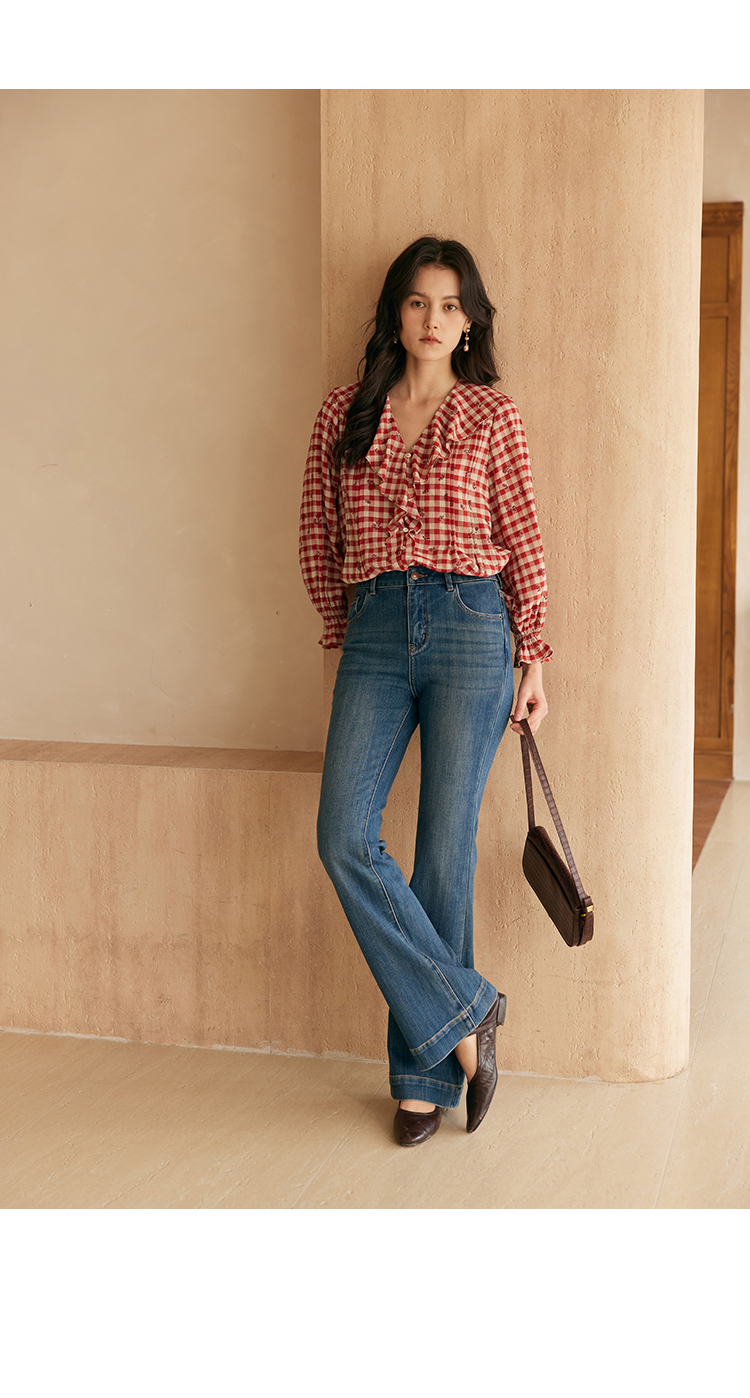 HeyDress四面弹微喇牛仔裤女春季法式复古修身直筒裤通勤百搭裤子