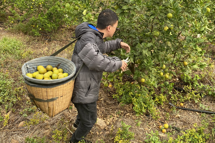 黄柠檬露天成长,没有套袋,果子会粗糙一些(外貌不太靓丽)。待到果子成熟采摘时,农人就会肩挎一个大兜或木蓝子,往山里走,挑成熟度足够的果子采摘。