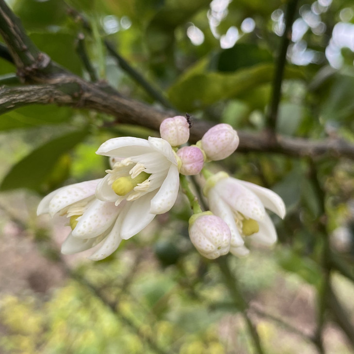 柠檬花盛开了,洁白如玉,淡淡的花香也吸引着蜜蜂来授粉。