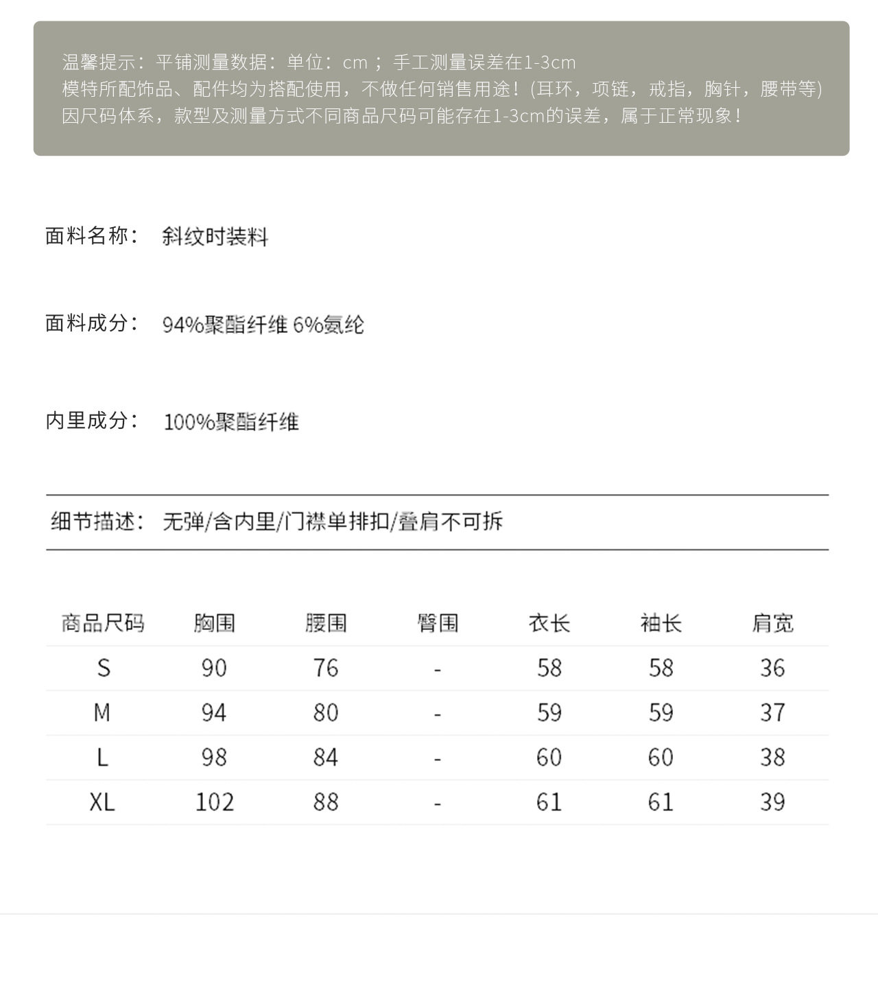 「高货wl」全新升级【铂金会员330/天猫439/差价109】(95510)洛诗琳气质单排扣减龄外套2026春季新款通勤收腰西装外套