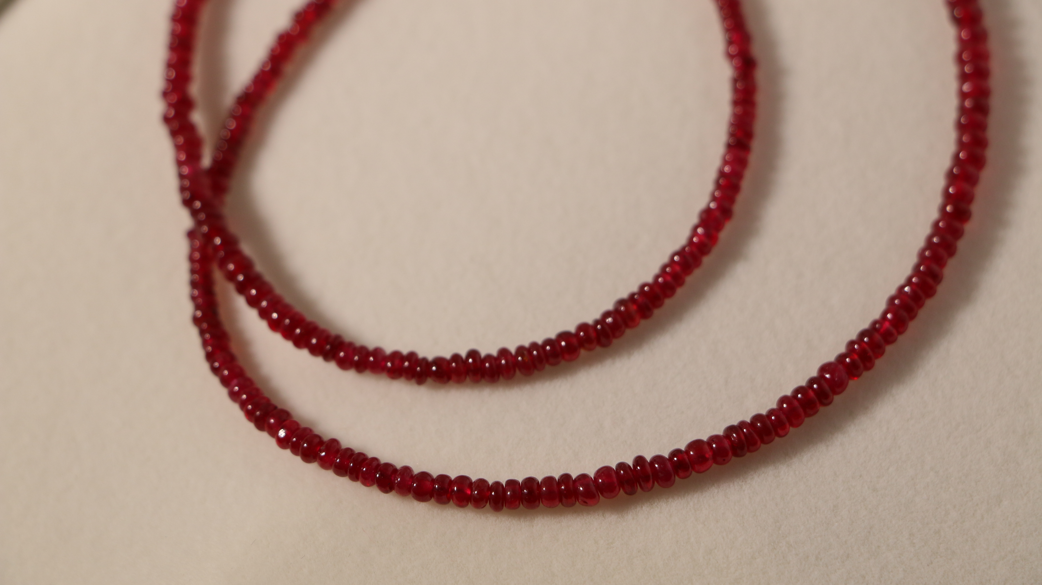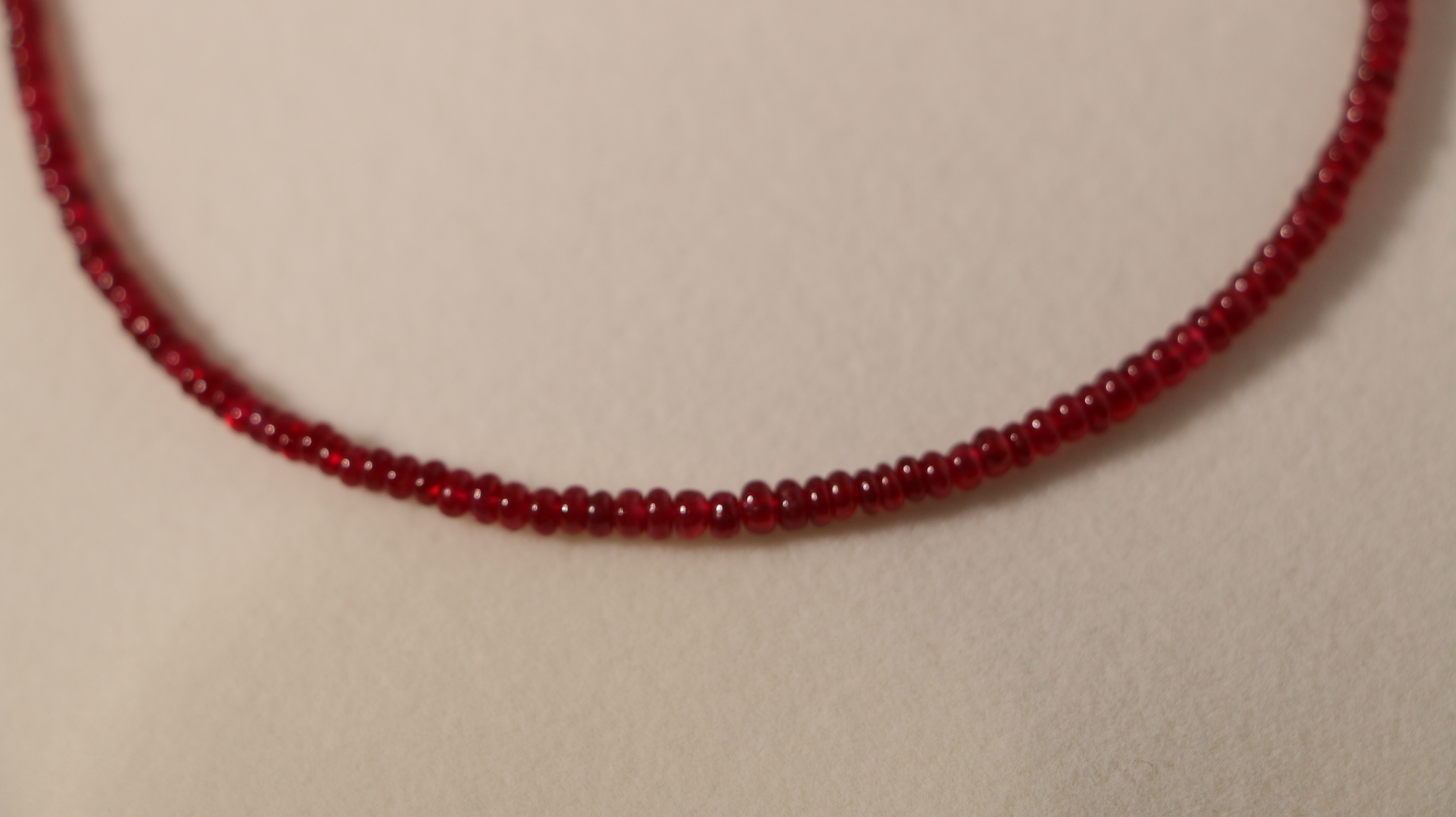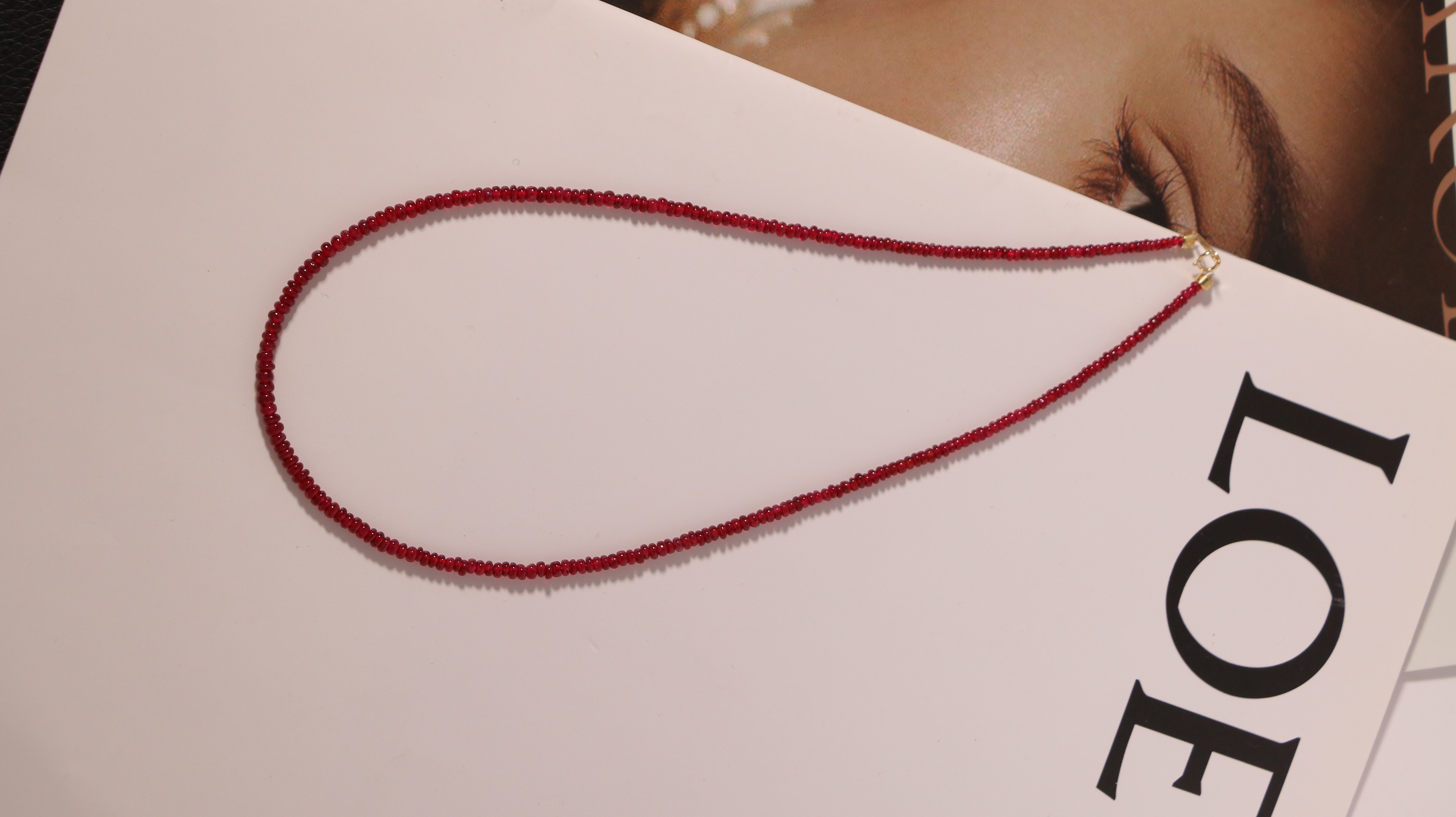 红宝石素链,2.5-3.5mm,通透明艳,晶体干净。