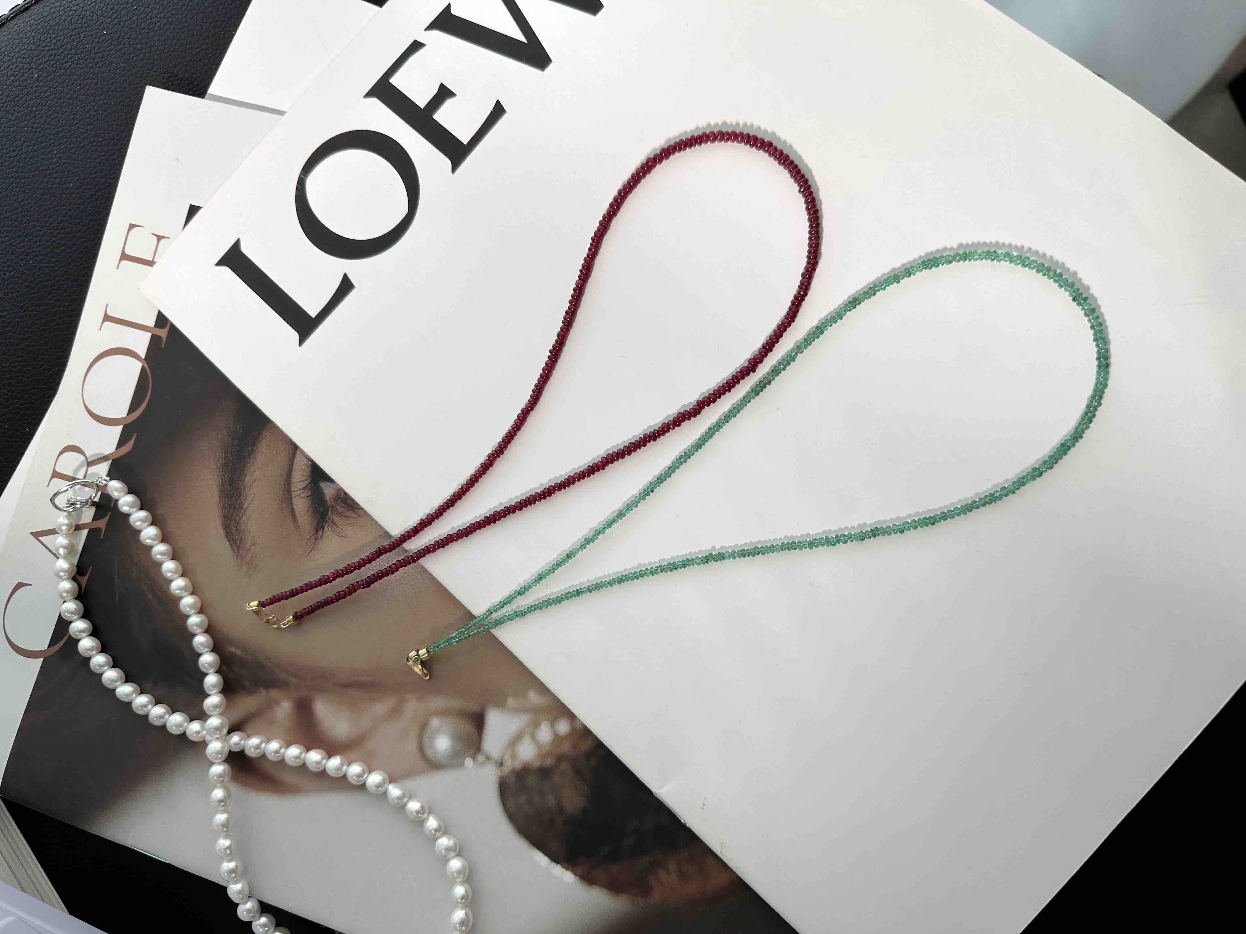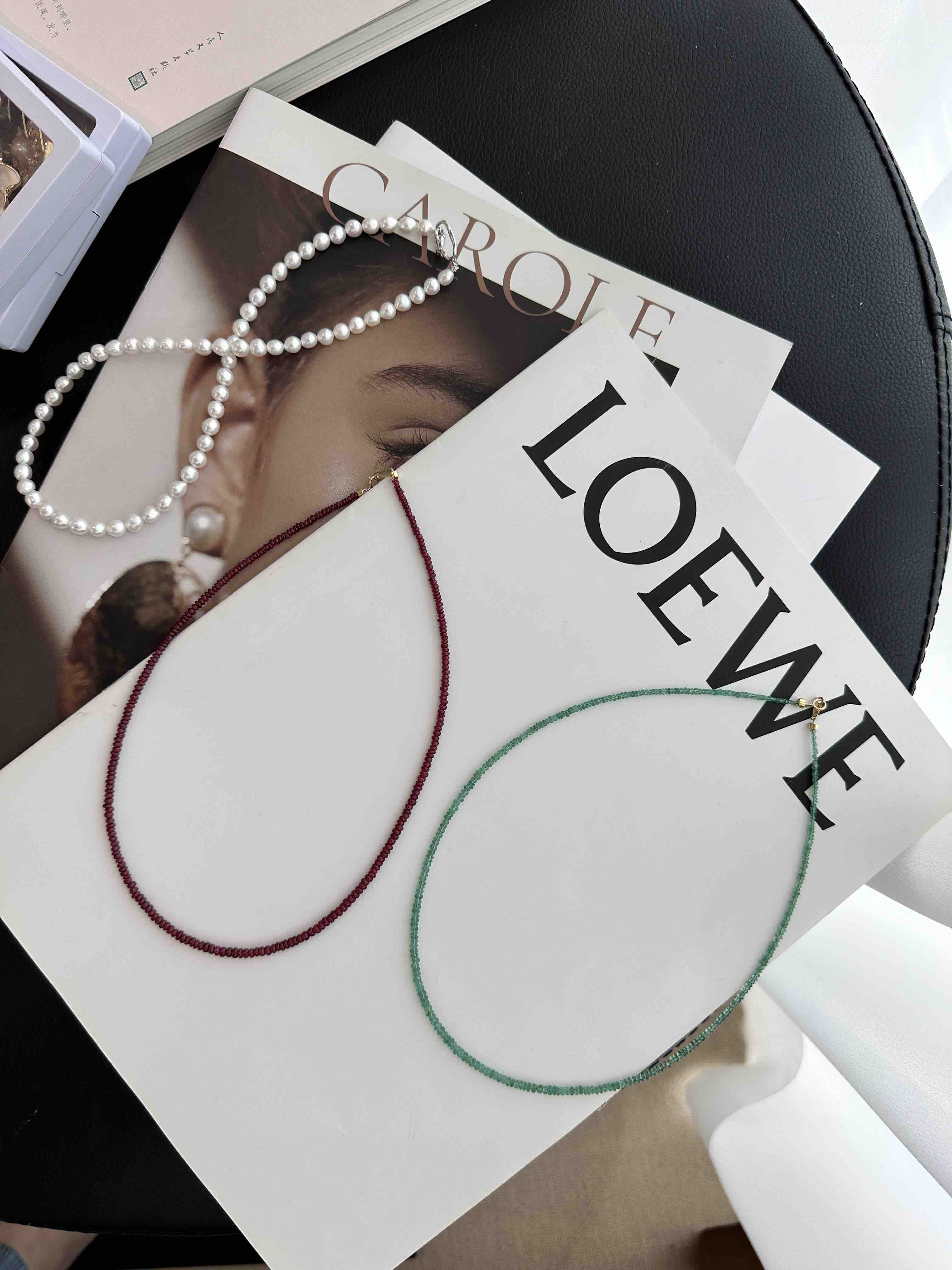 甄珠贝 进口彩宝素链 高叶、倪妮同款 祖母绿/红宝石 通透明艳,氧气感满满 18k金扣(注:固定项链的压扣不是18k,如需定制18k,加180元,请私)
