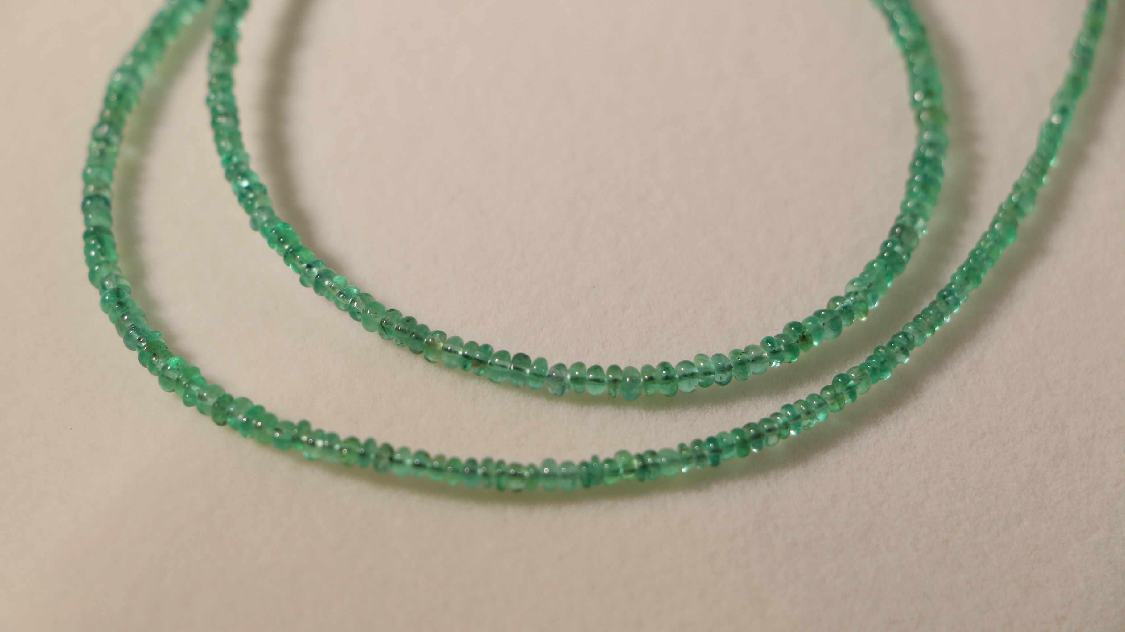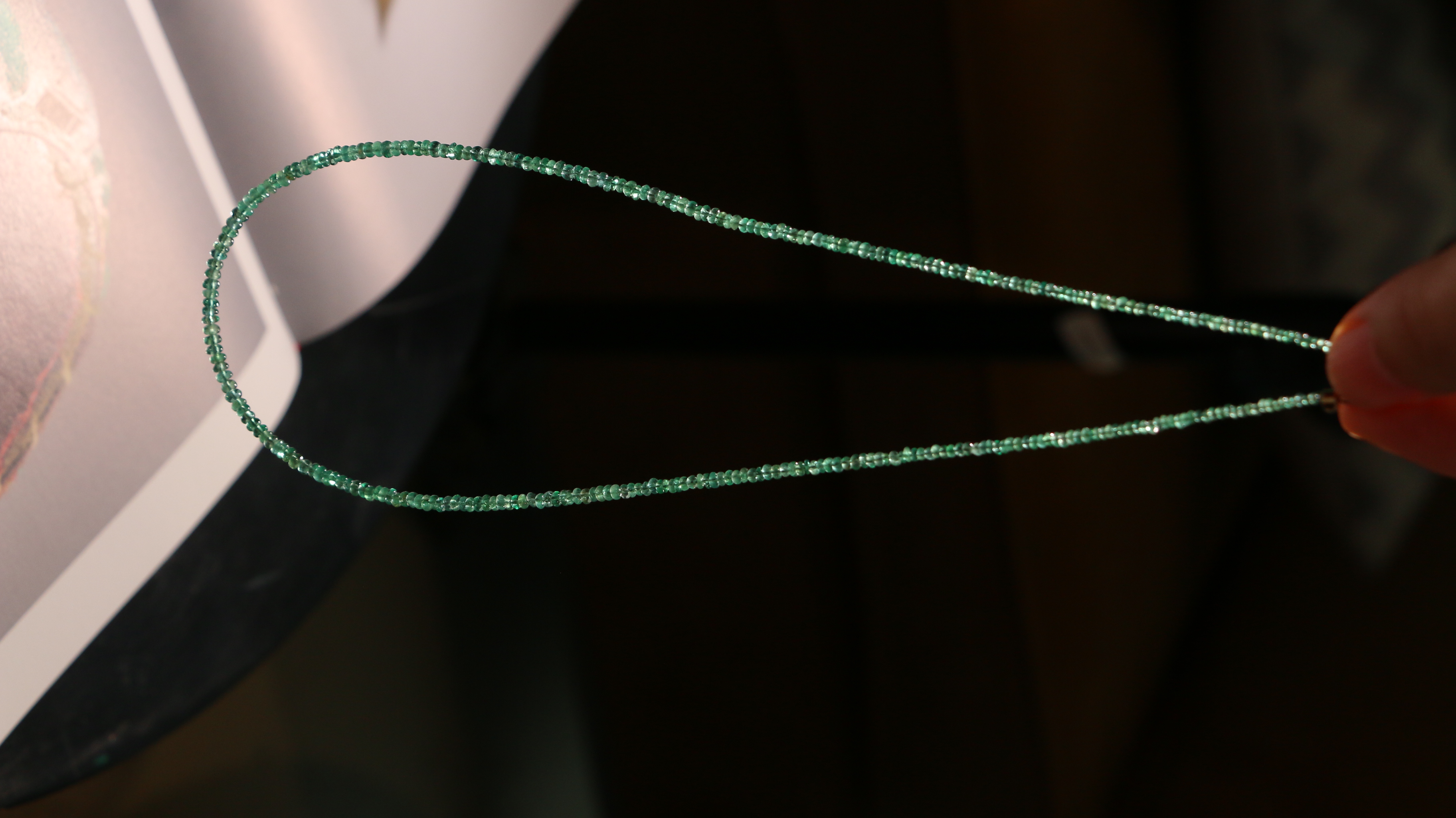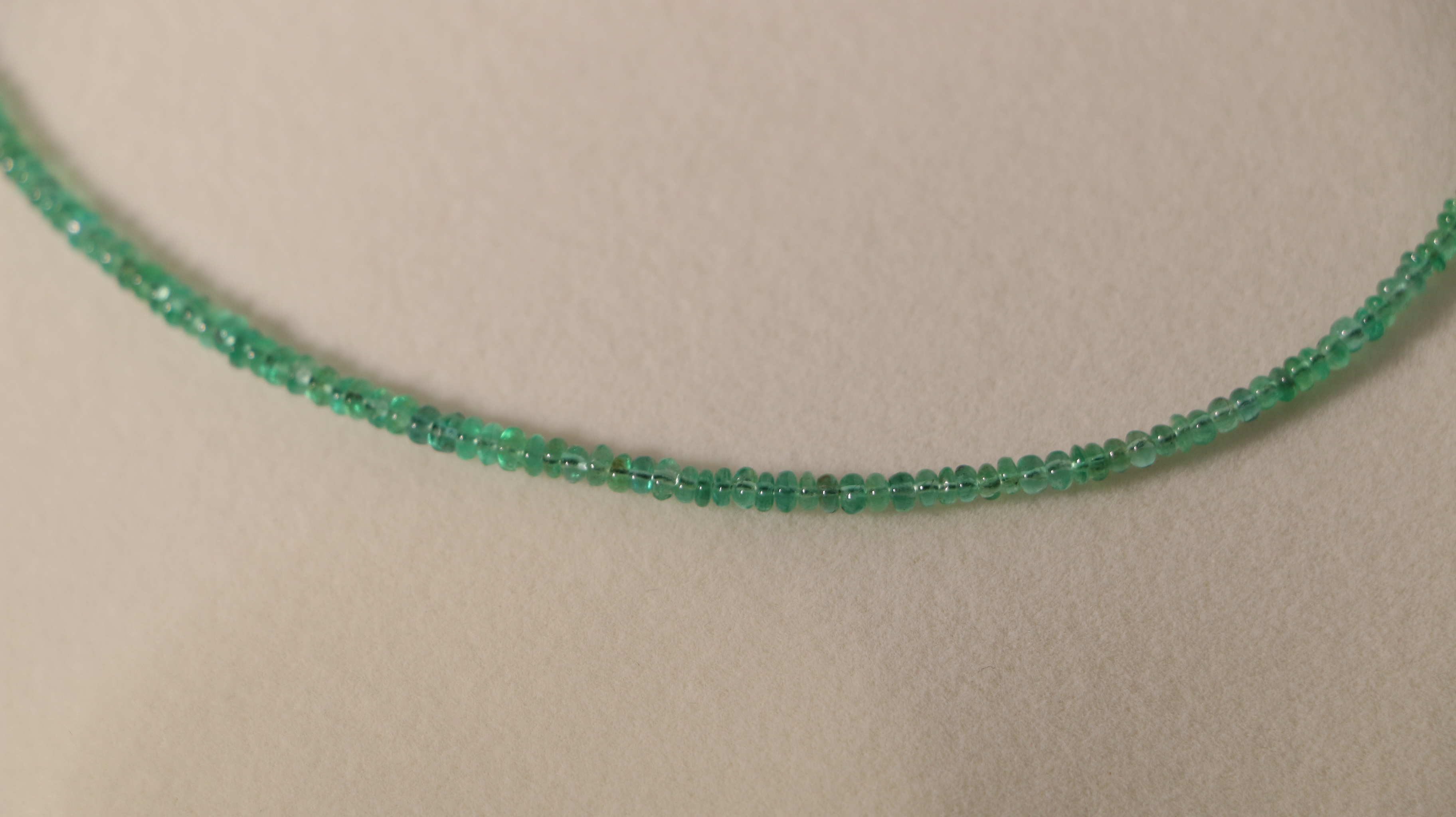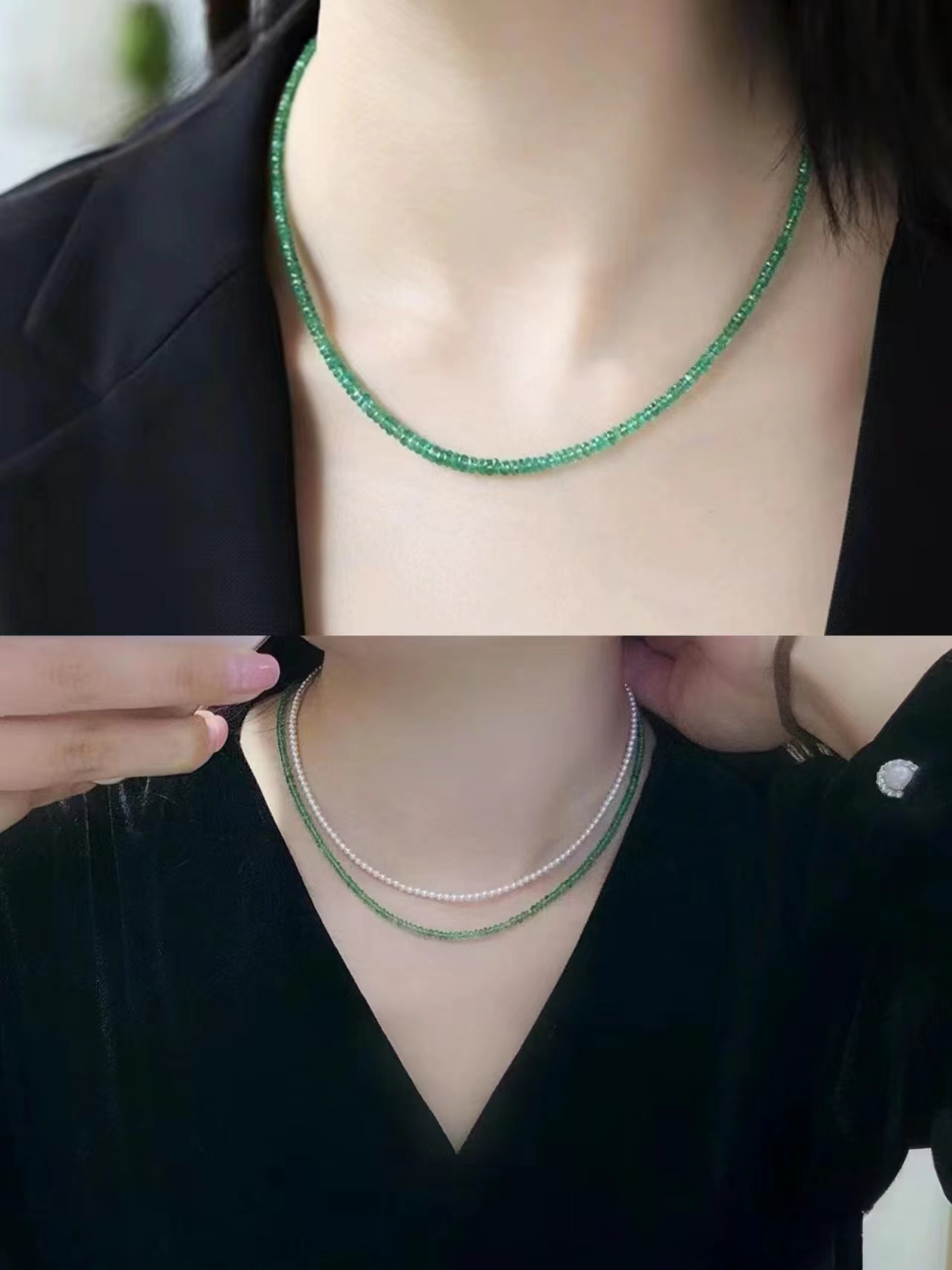 祖母绿素链,2-3mm,小而美,饱和度很高。