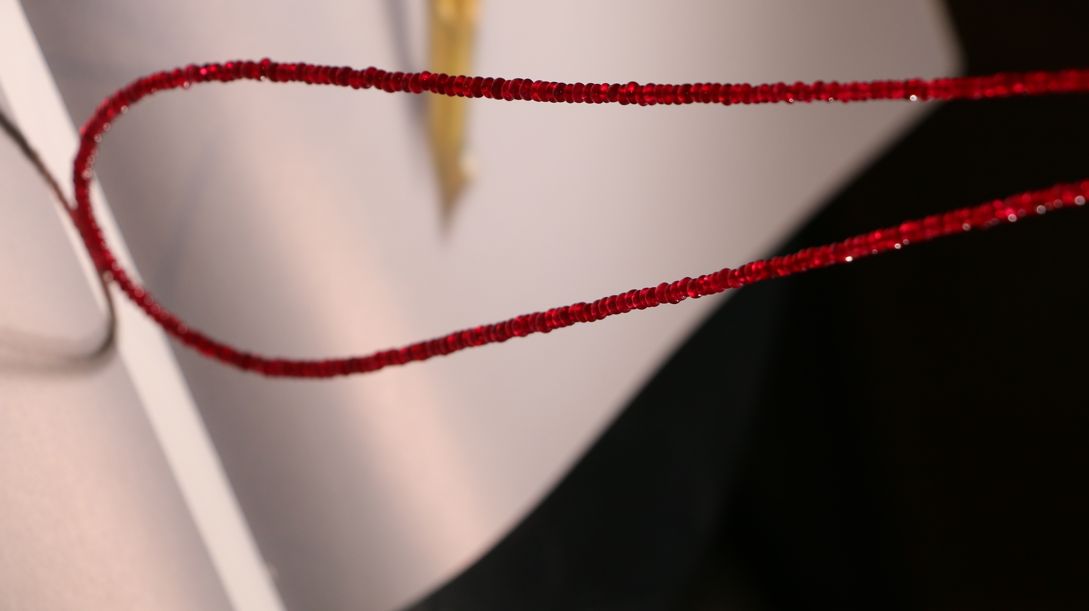 红宝石这串呢是有点酱红色的,暗红,跟倪妮和高叶的都是一样的调性感。他们喜欢和珍珠项链缠绕叠搭在一起,我们这一次也可以轻松实现这样的元气感啦!