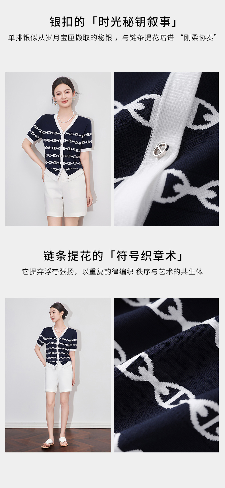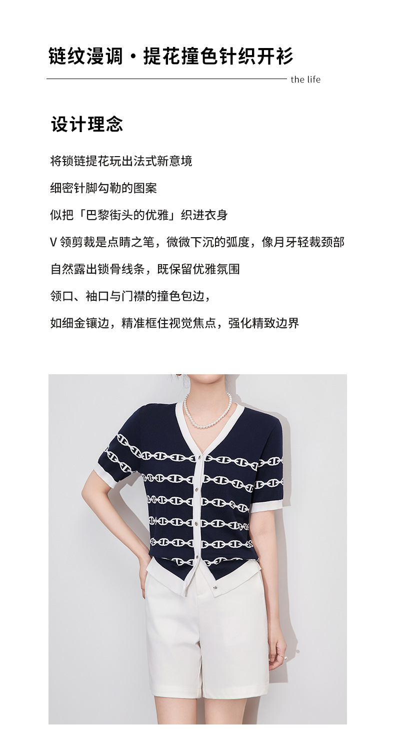「高货wl」全新升级【铂金会员220/天猫299/差价79】(13605)洛诗琳优雅链条V领针织开衫2025夏季16针超细兰精天丝上衣
