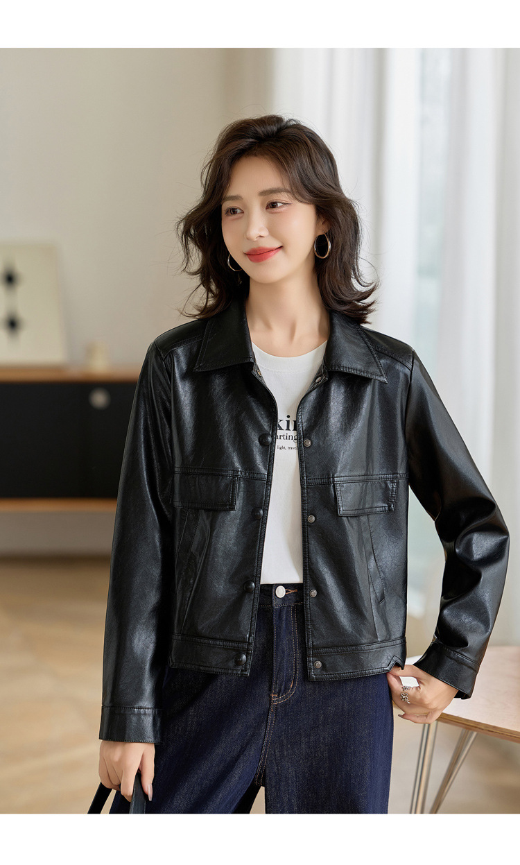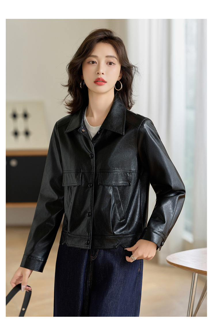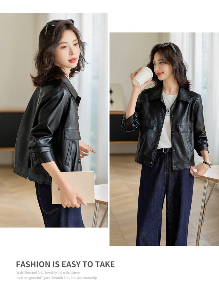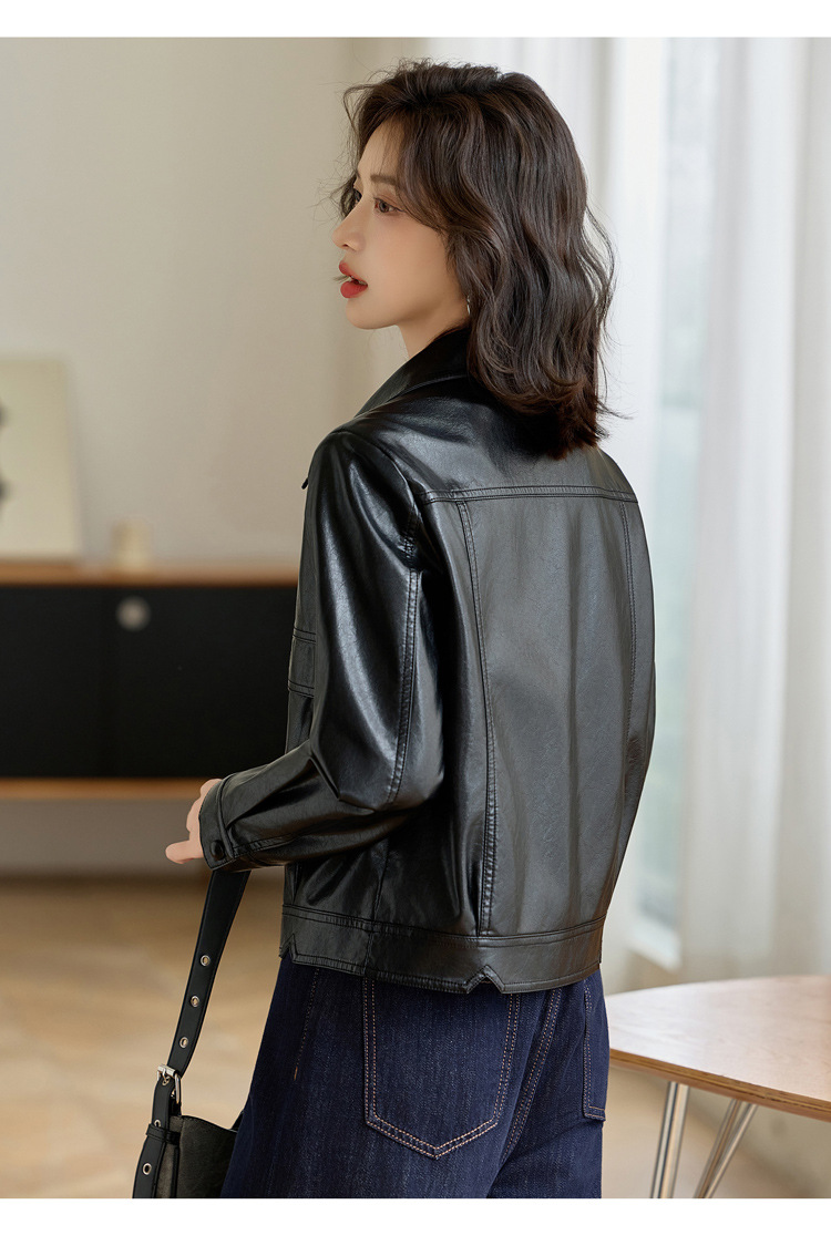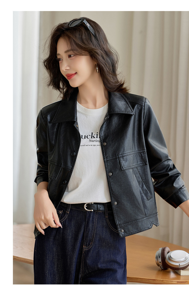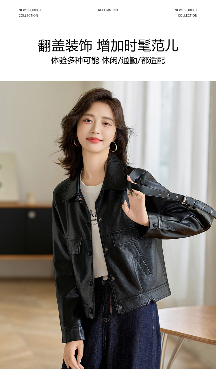 YYG82995潮流风皮衣外套女2025秋季新款翻领气质显瘦短款小个子夹克上衣