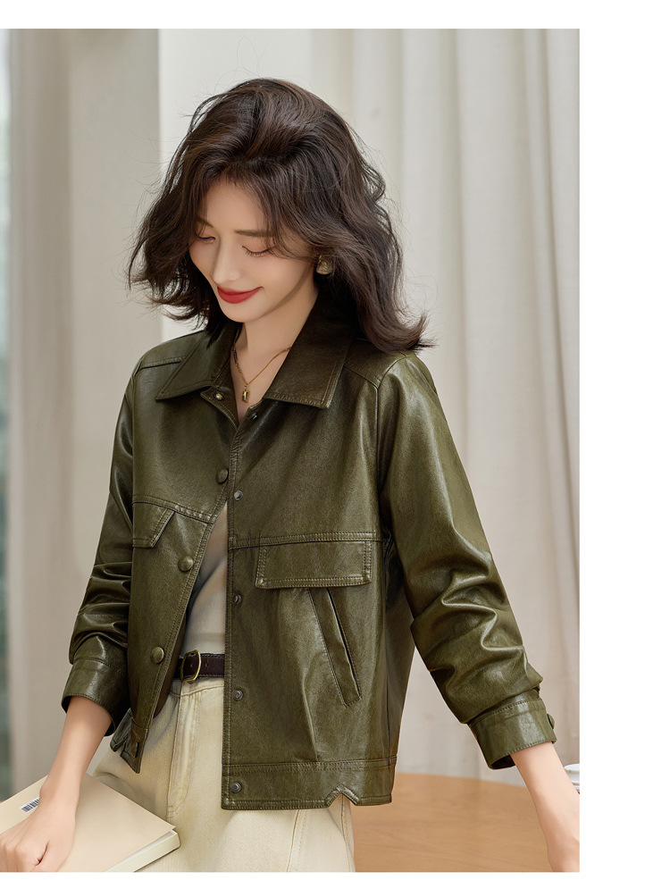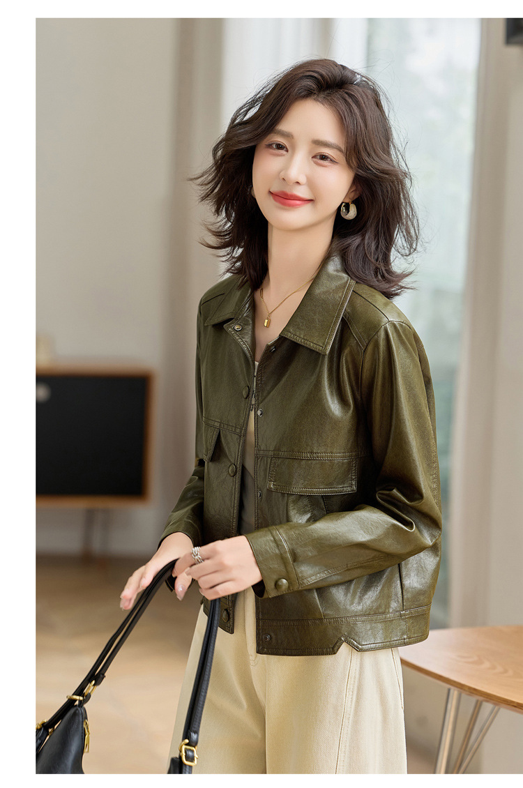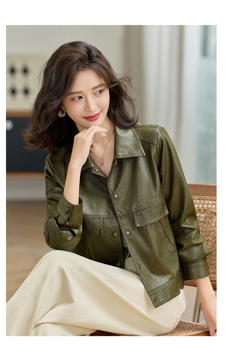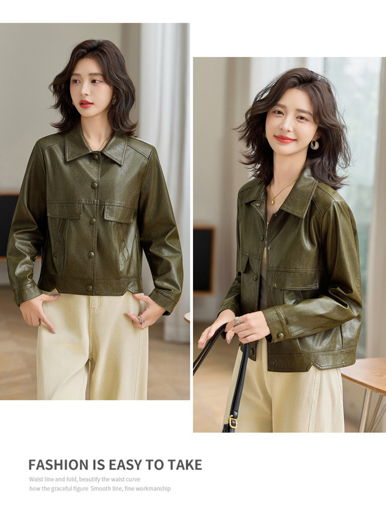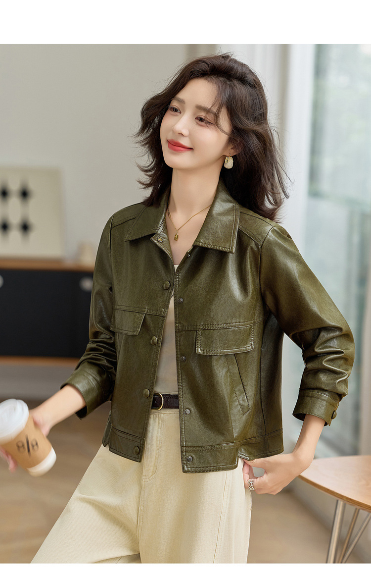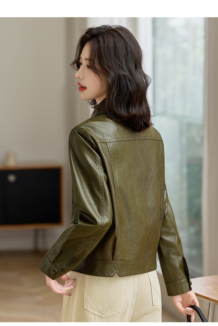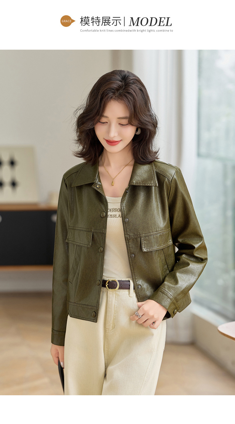 YYG82995潮流风皮衣外套女2025秋季新款翻领气质显瘦短款小个子夹克上衣