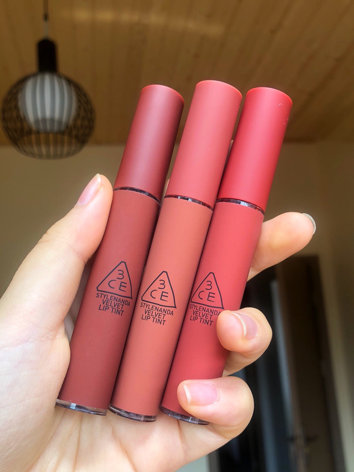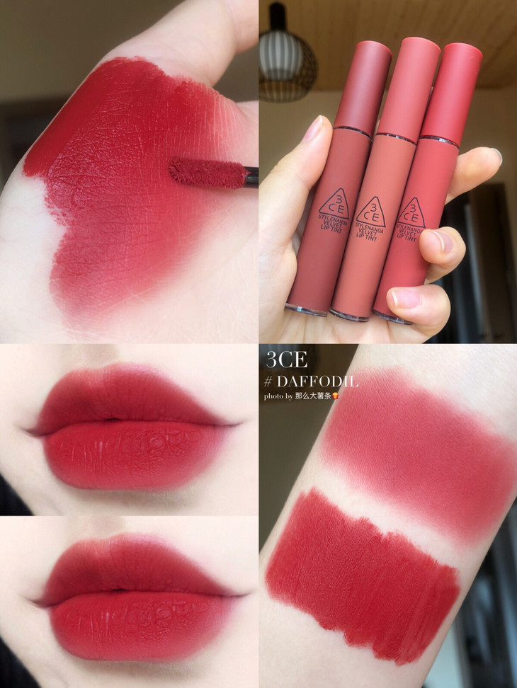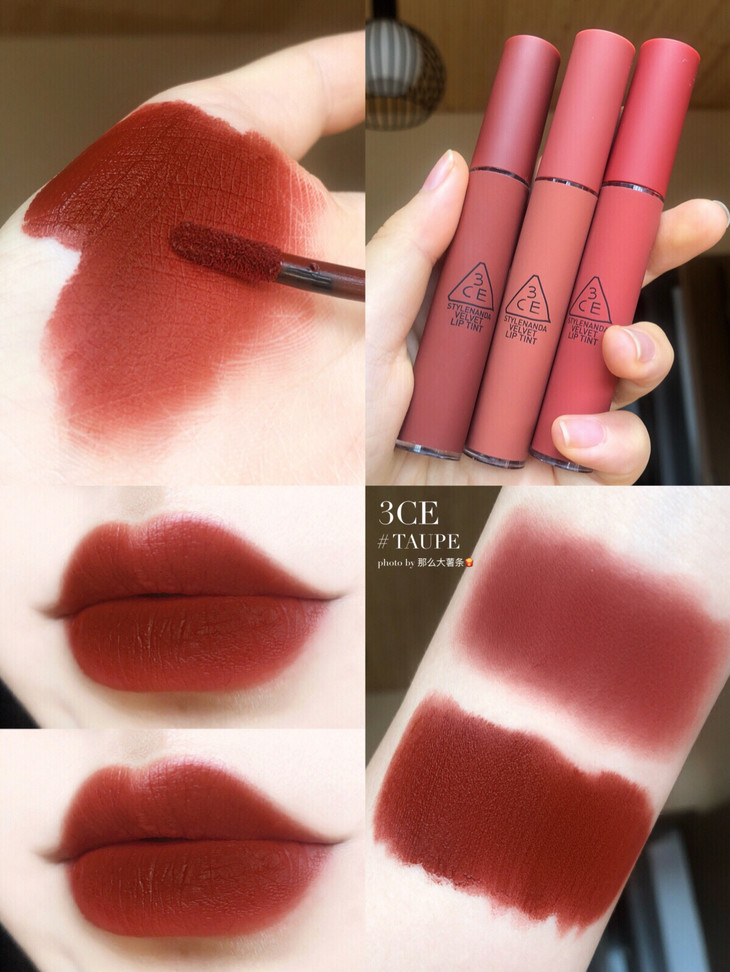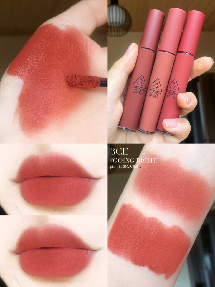 3CE必备丝绒唇釉,黄皮品品这神仙调色,今天po的这三支3CE丝绒唇釉真的是真爱了!!!不会鬼打墙的网红色号,各个场合都很适用,黄皮友好👭这个奶油丝绒质地,哑而不干~
