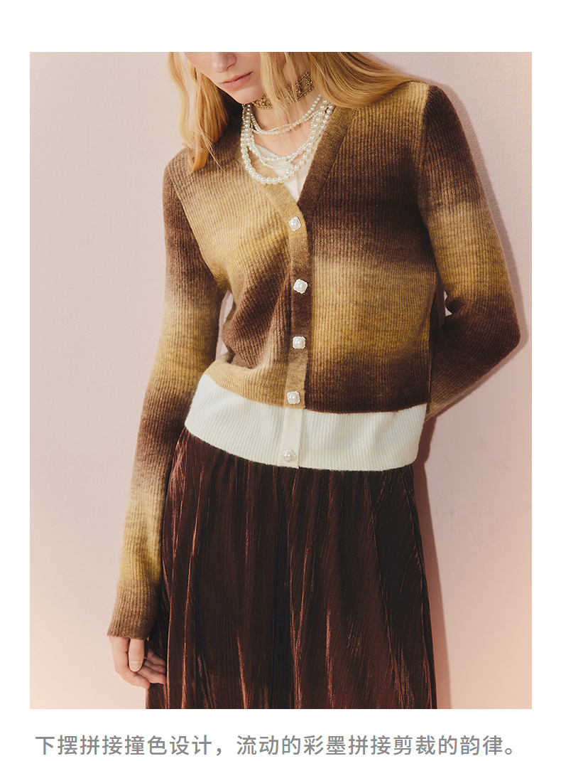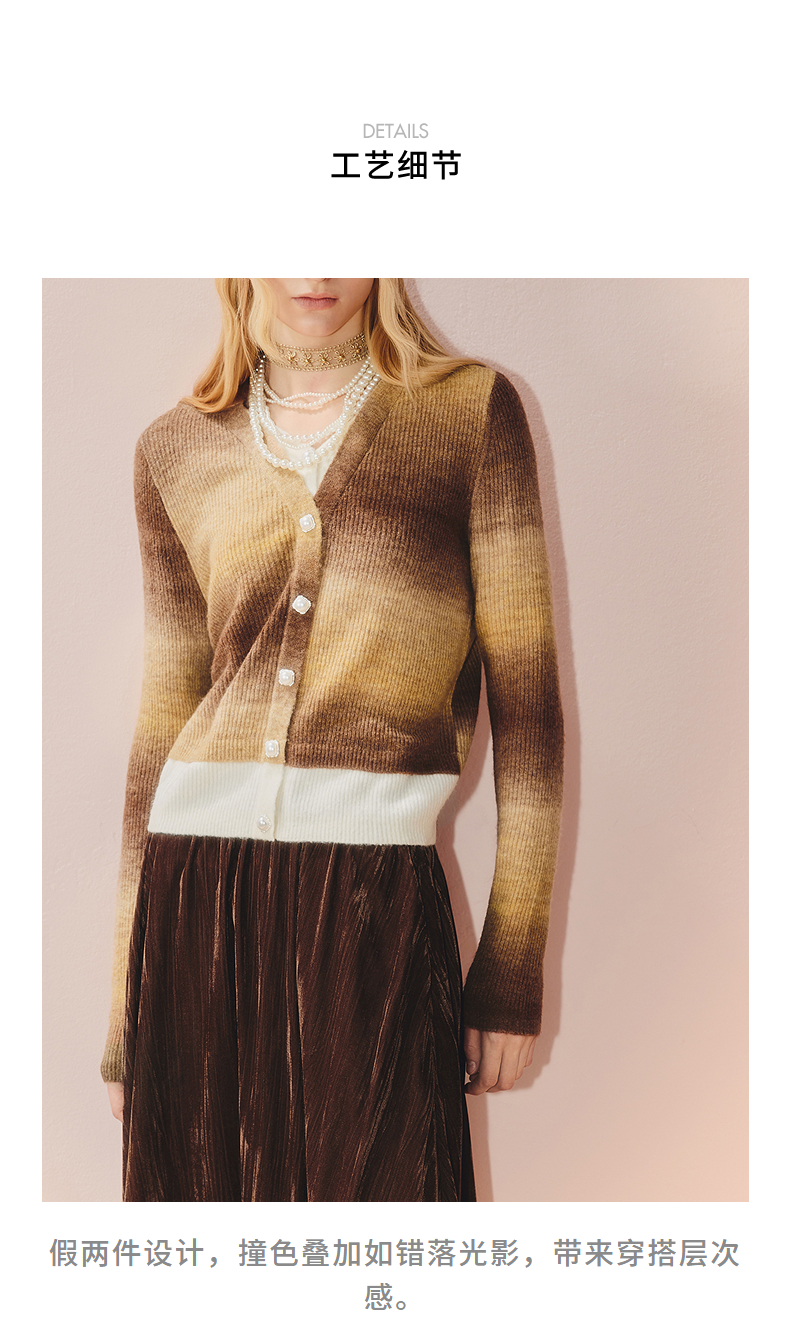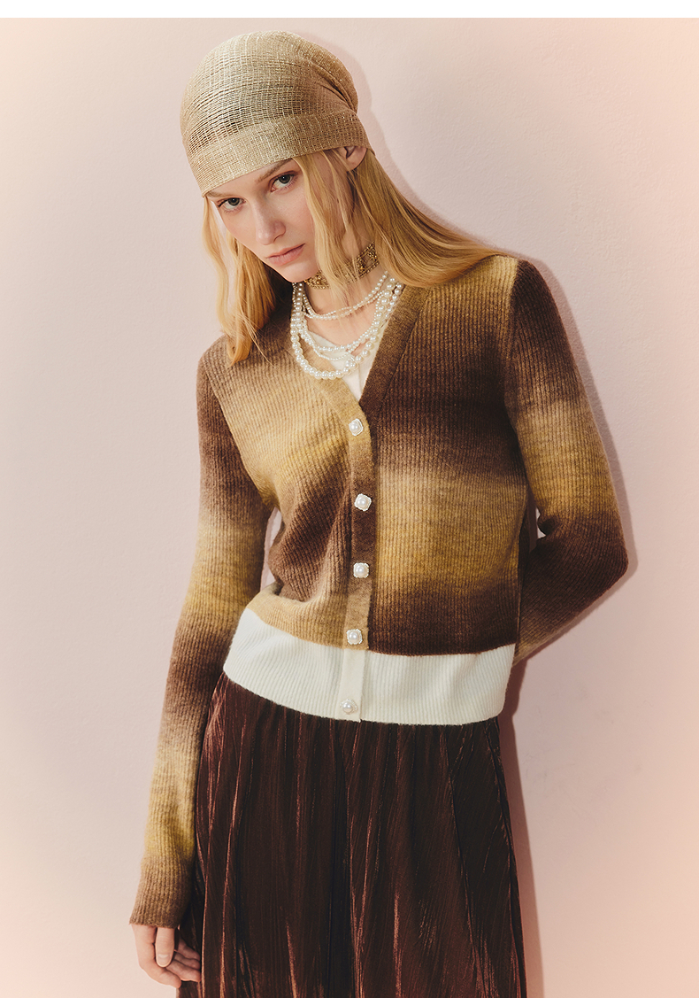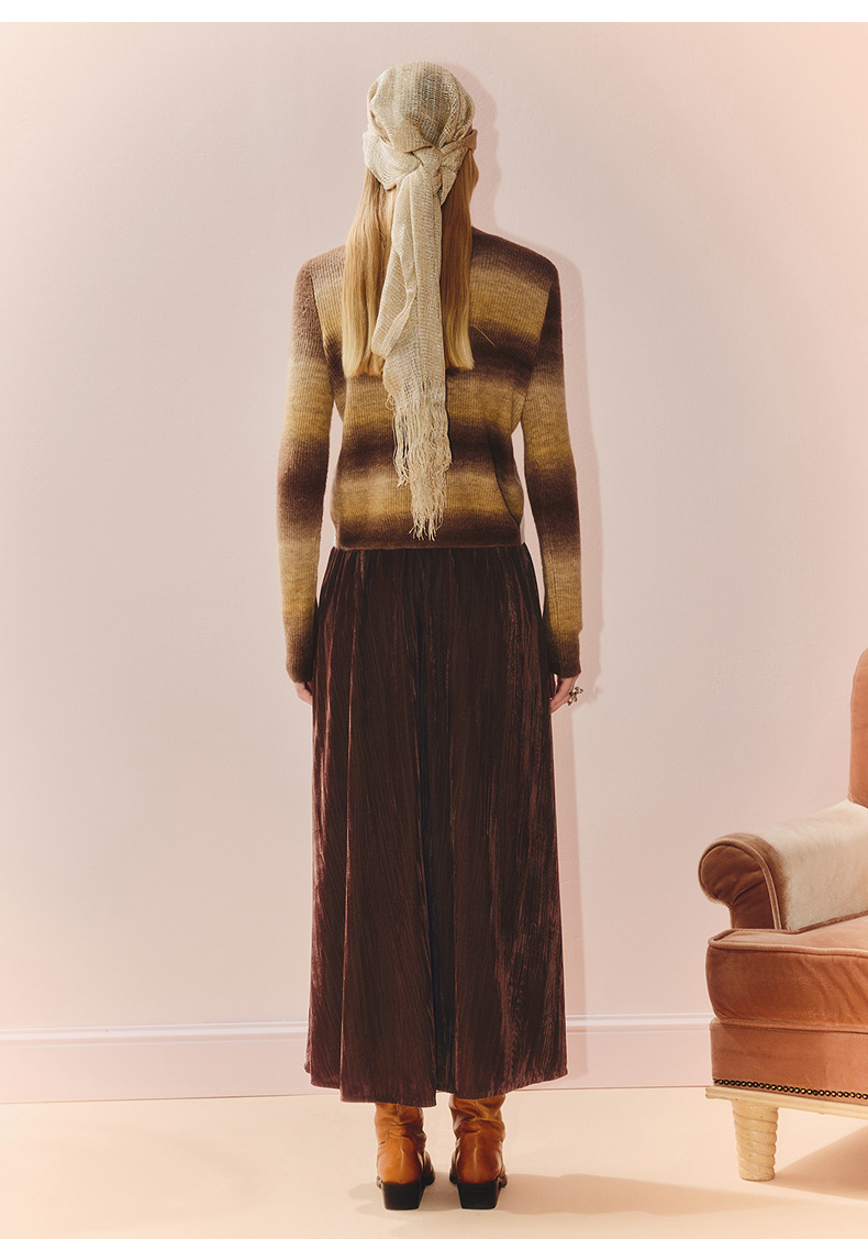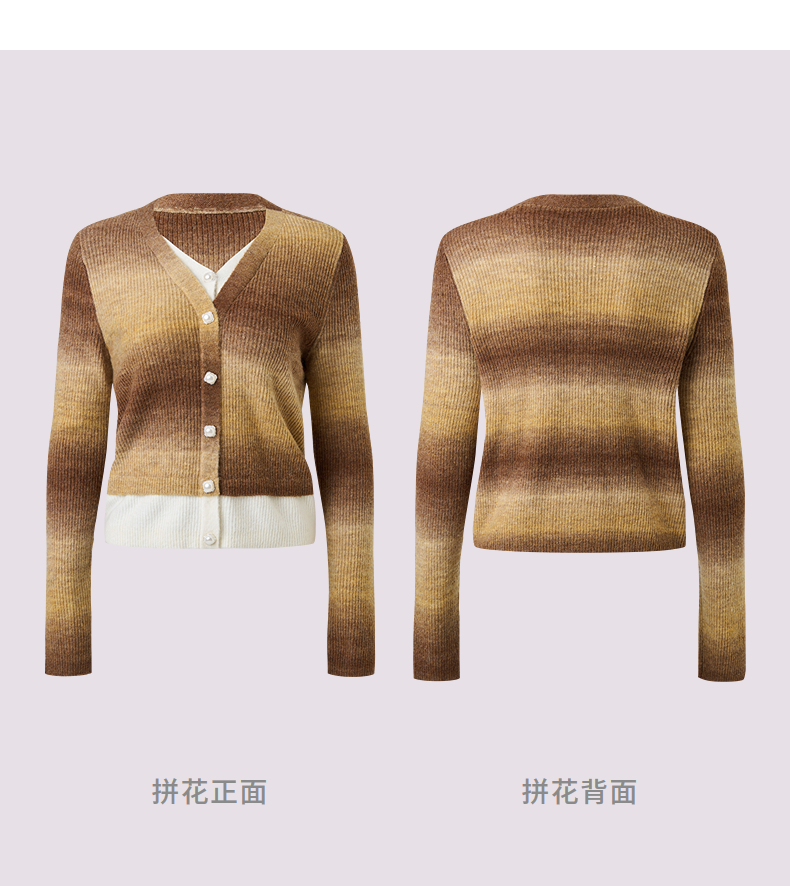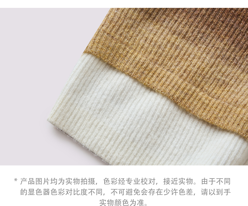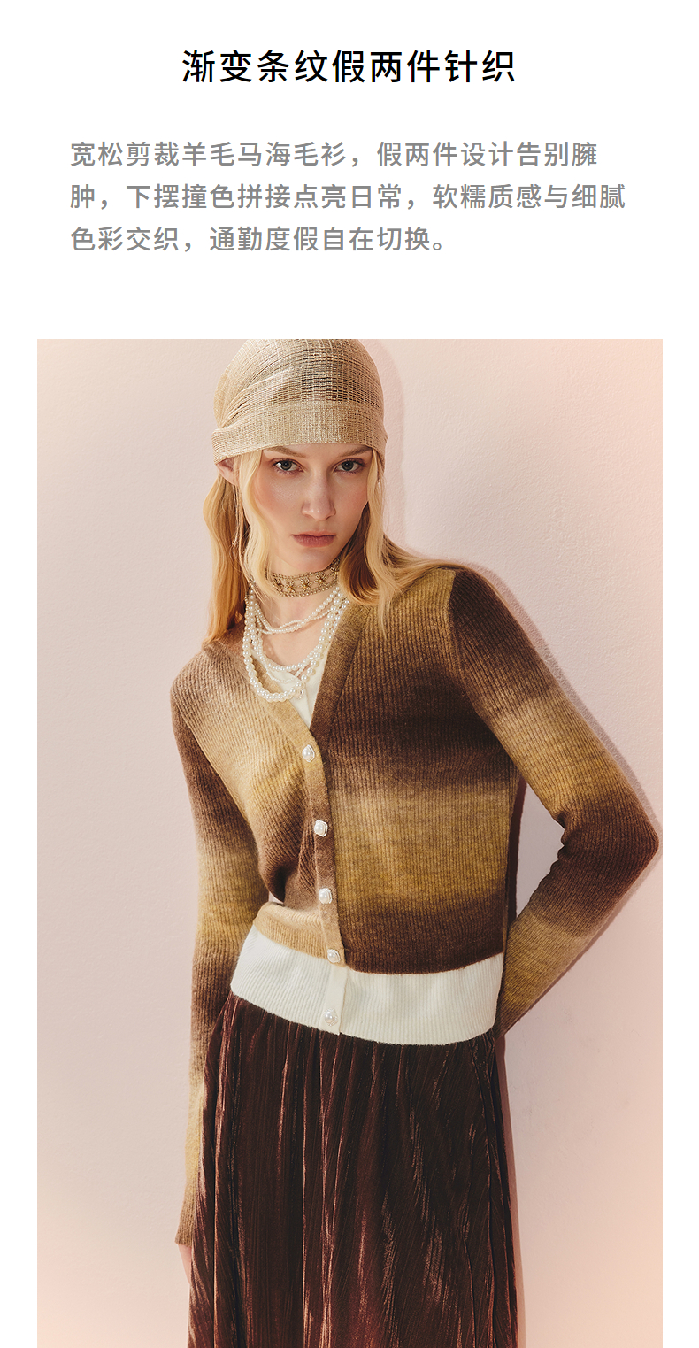 MAXRIENY慵懒感穿搭渐变条纹假两件针织羊毛混纺毛衫费尔岛穿搭(货号:MS86SW508)