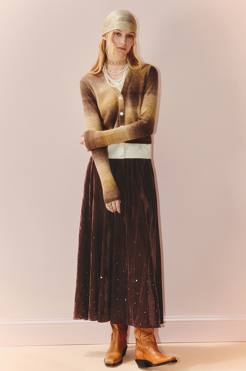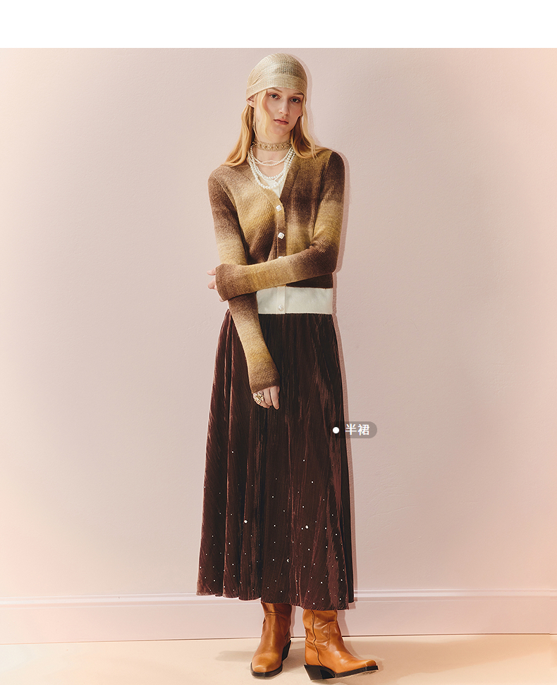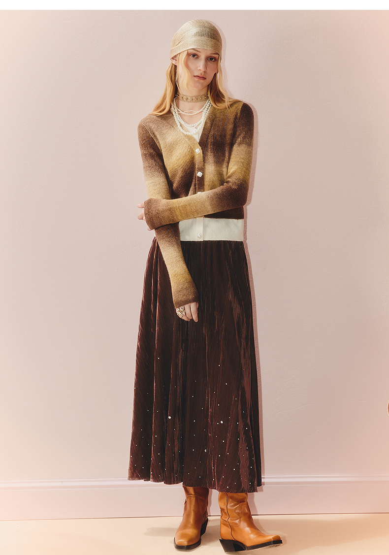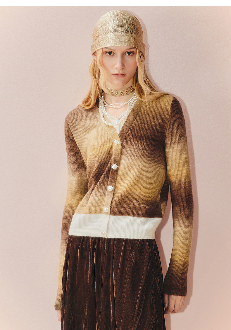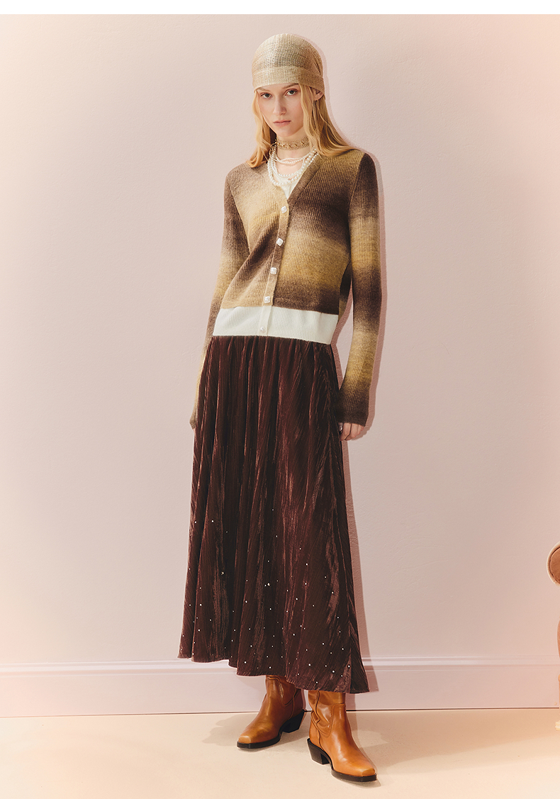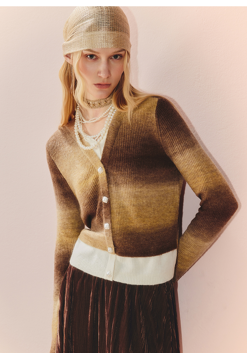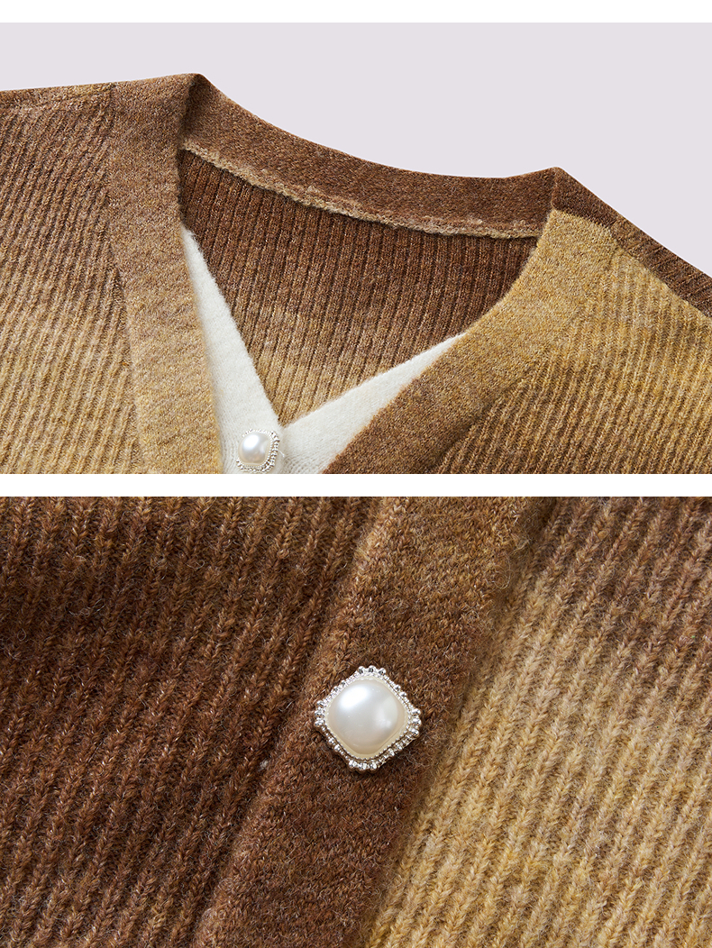 MAXRIENY慵懒感穿搭渐变条纹假两件针织羊毛混纺毛衫费尔岛穿搭(货号:MS86SW508)