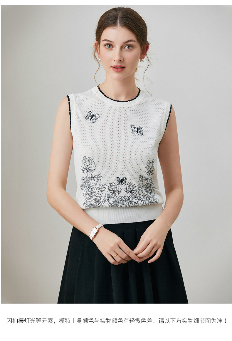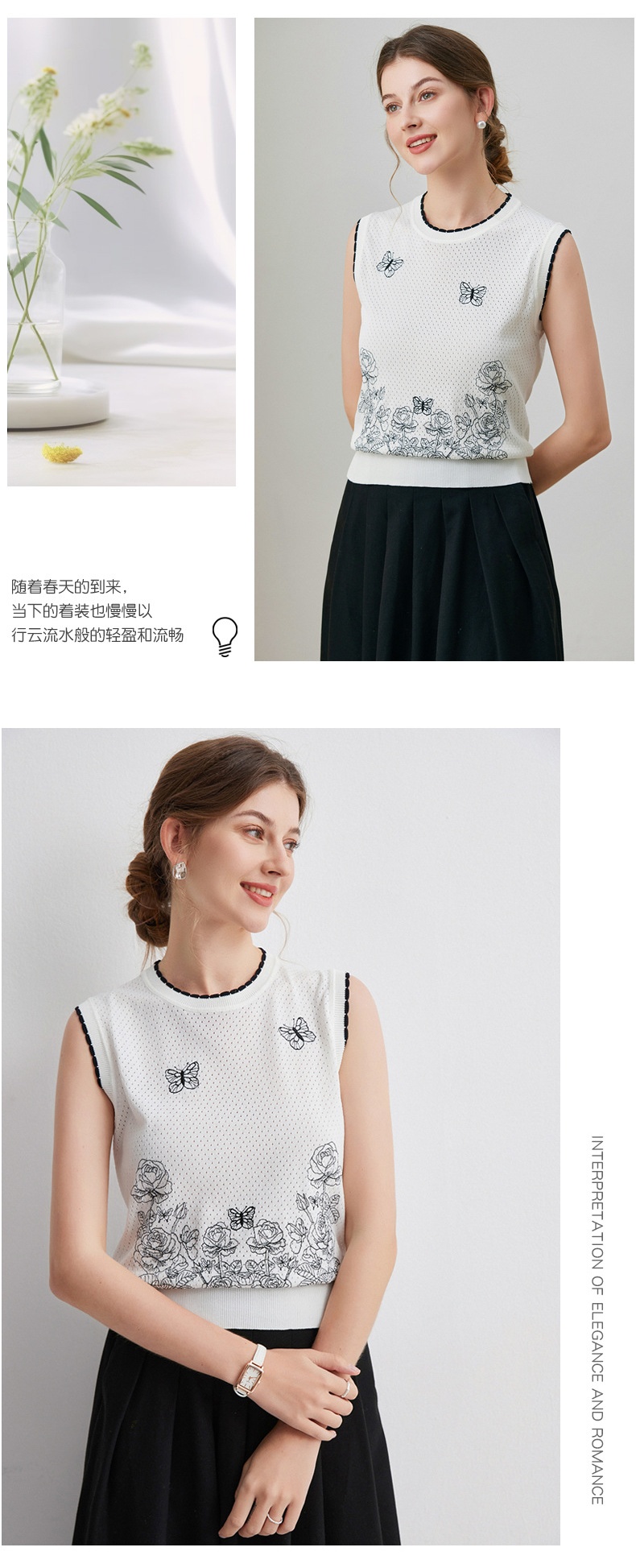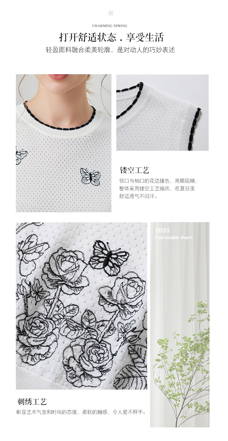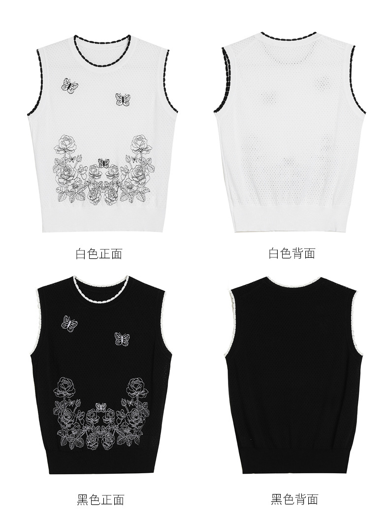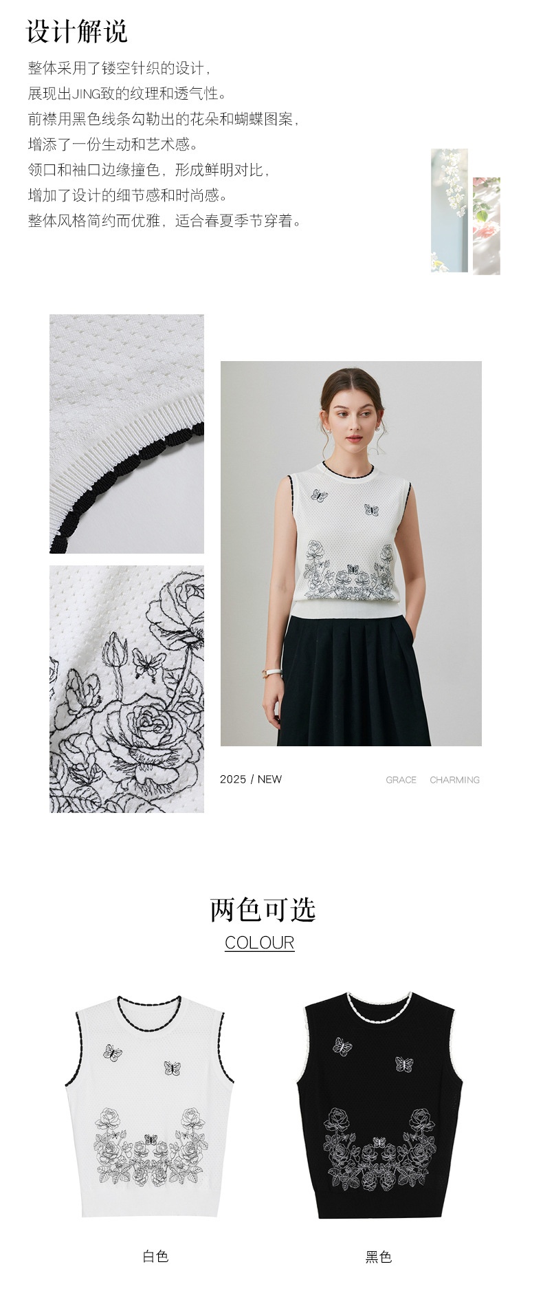 「自」全新升级【铂金会员128/天猫169/差价41】(91757)洛诗琳薄款针织无袖背心2025夏季刺绣镂空宽松通勤上衣女