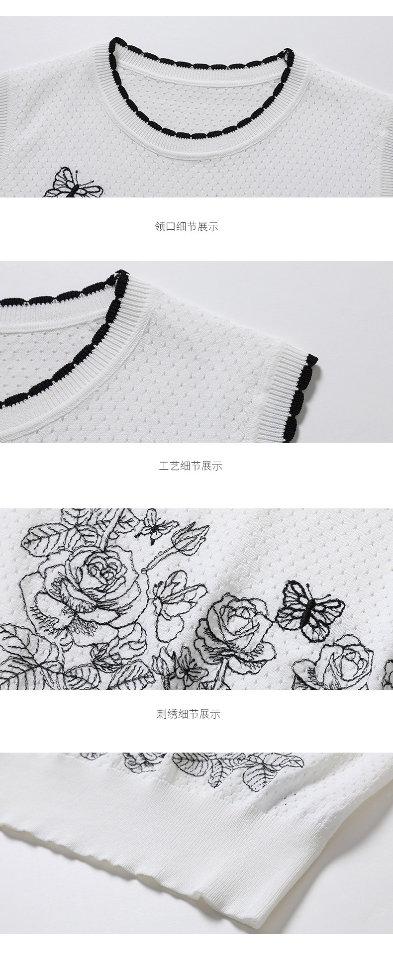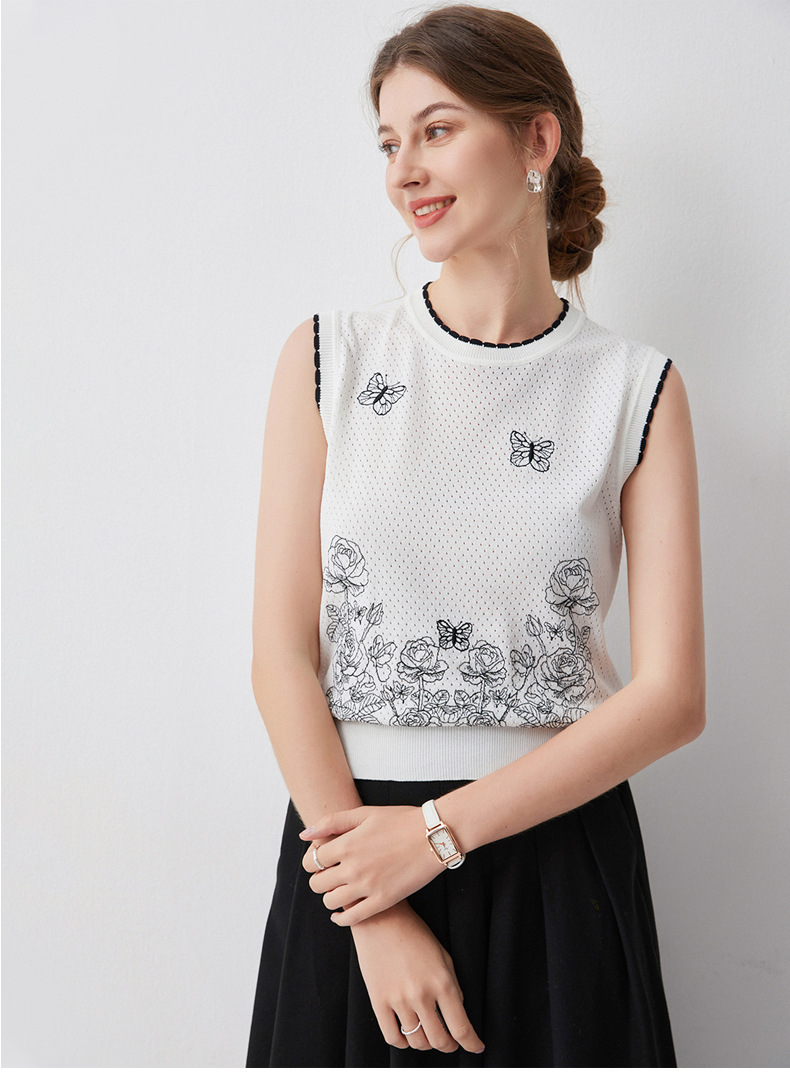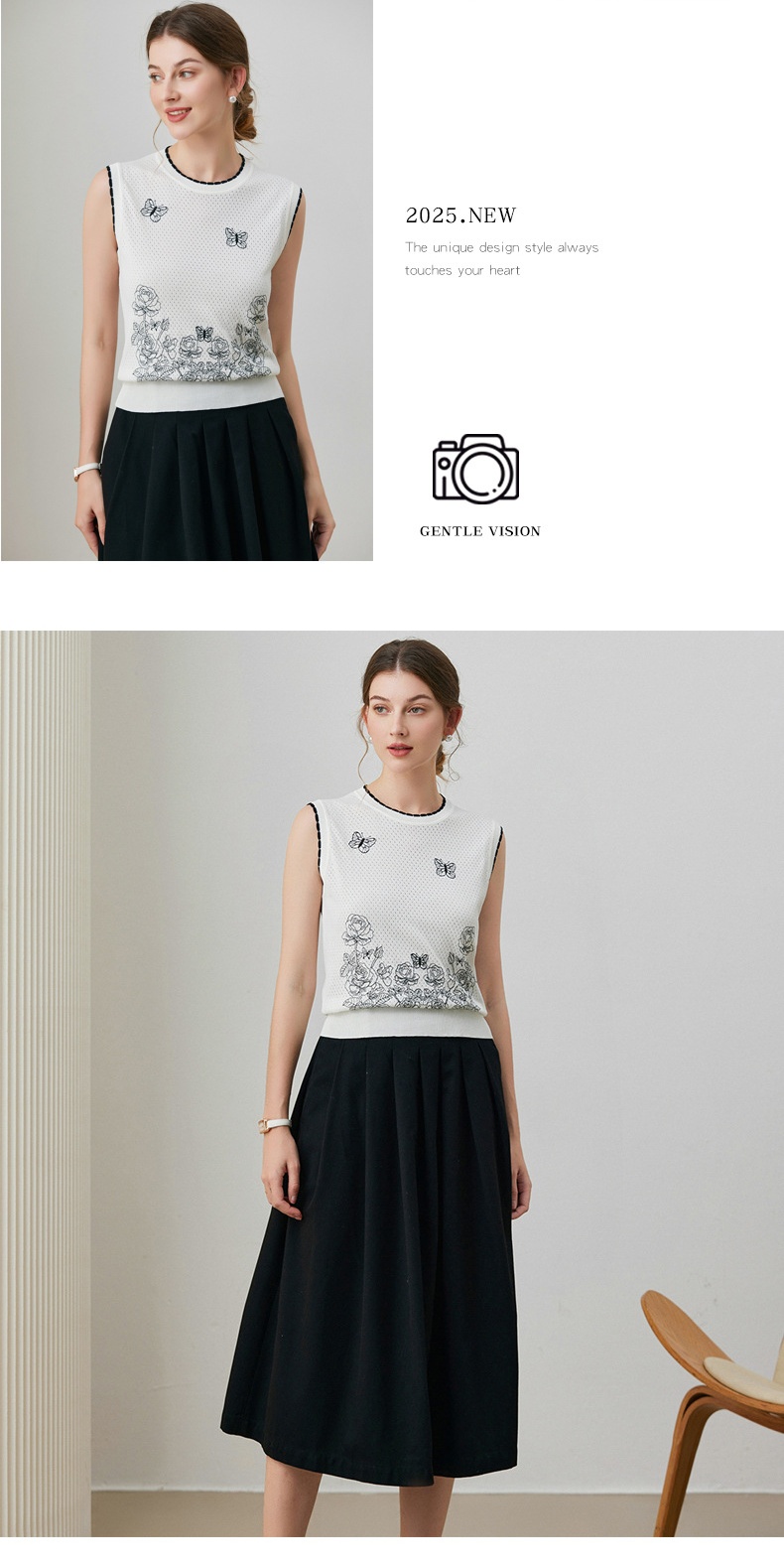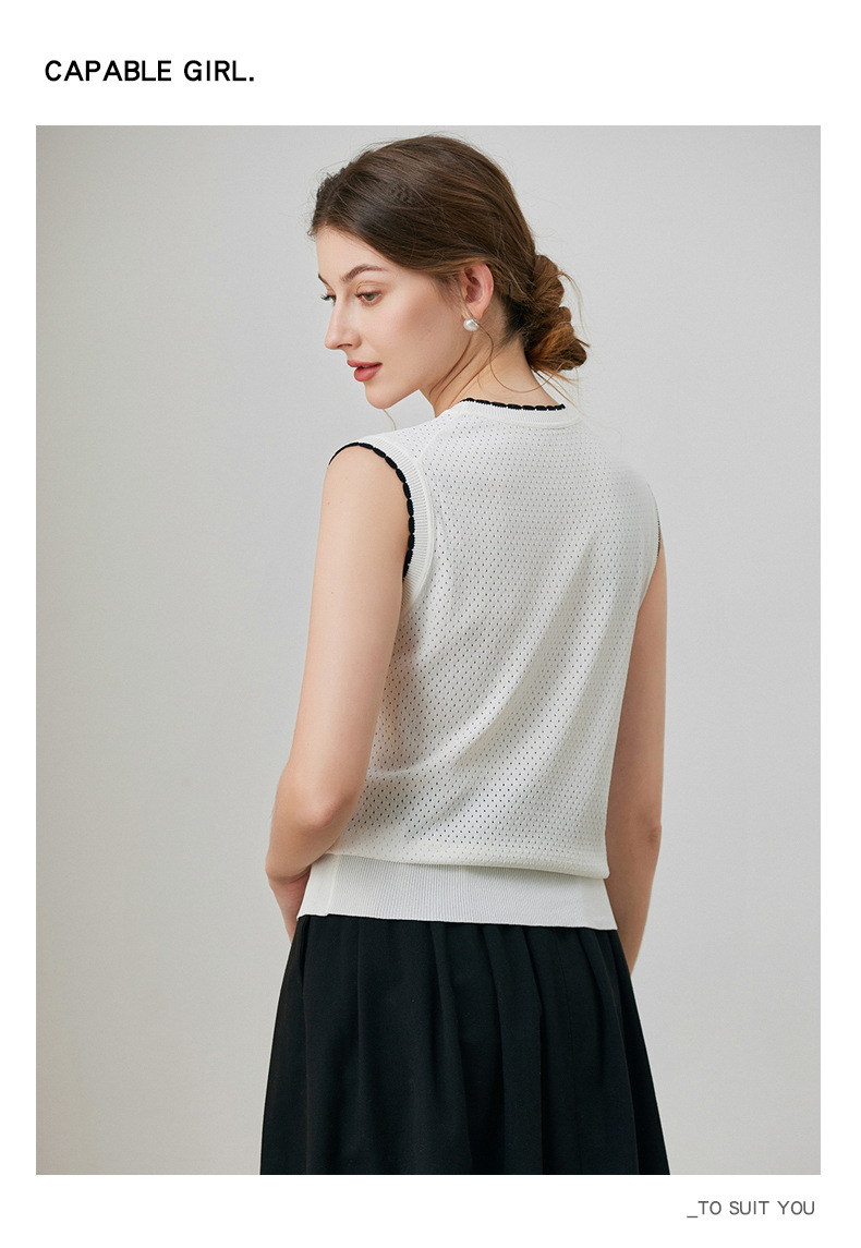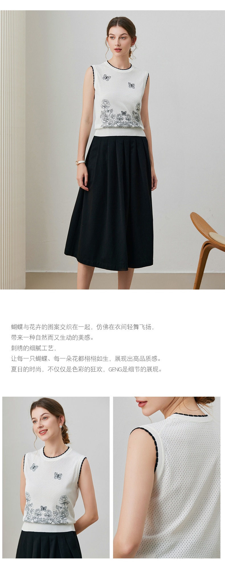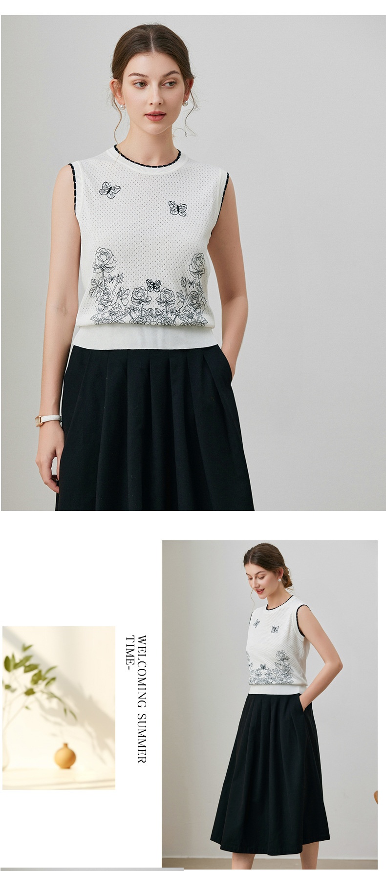 「自」全新升级【铂金会员128/天猫169/差价41】(91757)洛诗琳薄款针织无袖背心2025夏季刺绣镂空宽松通勤上衣女