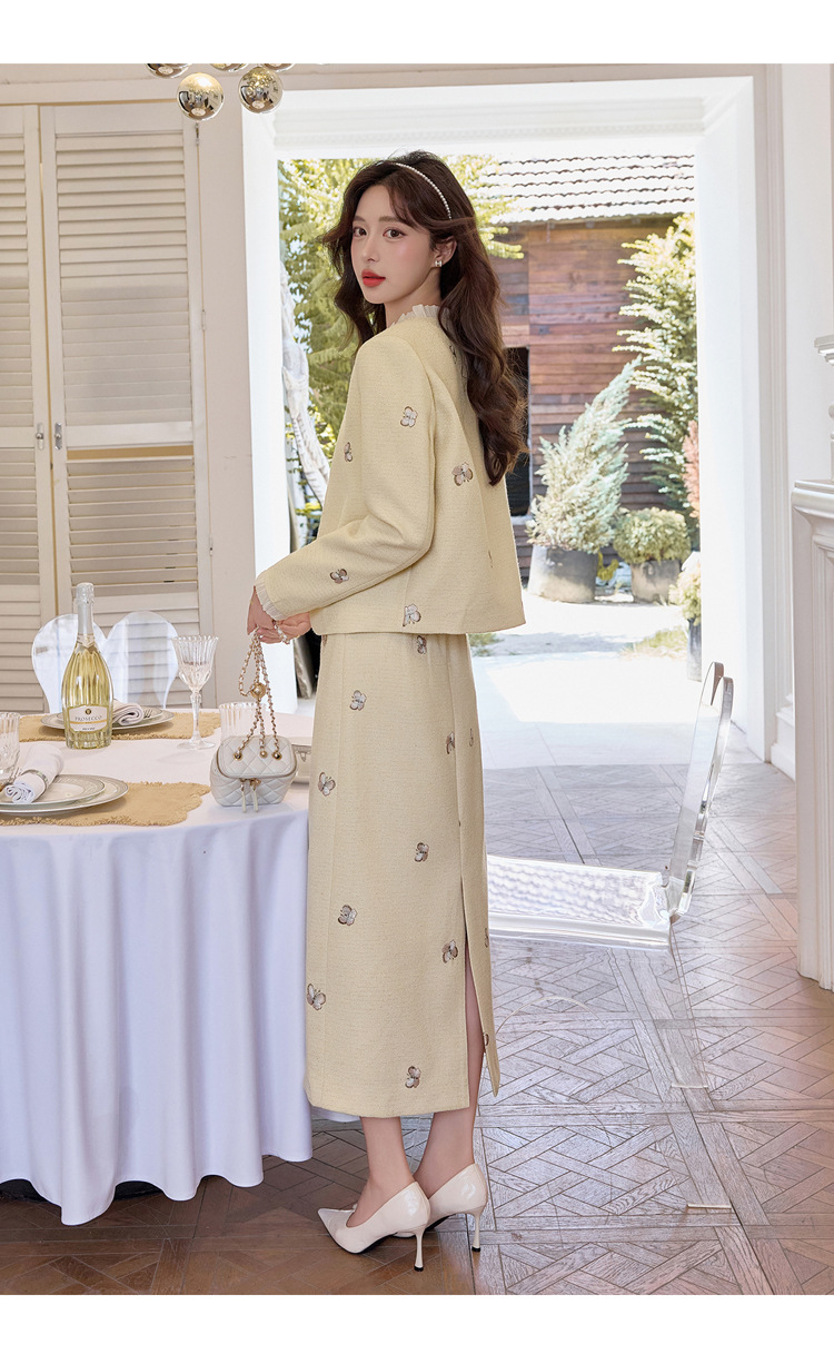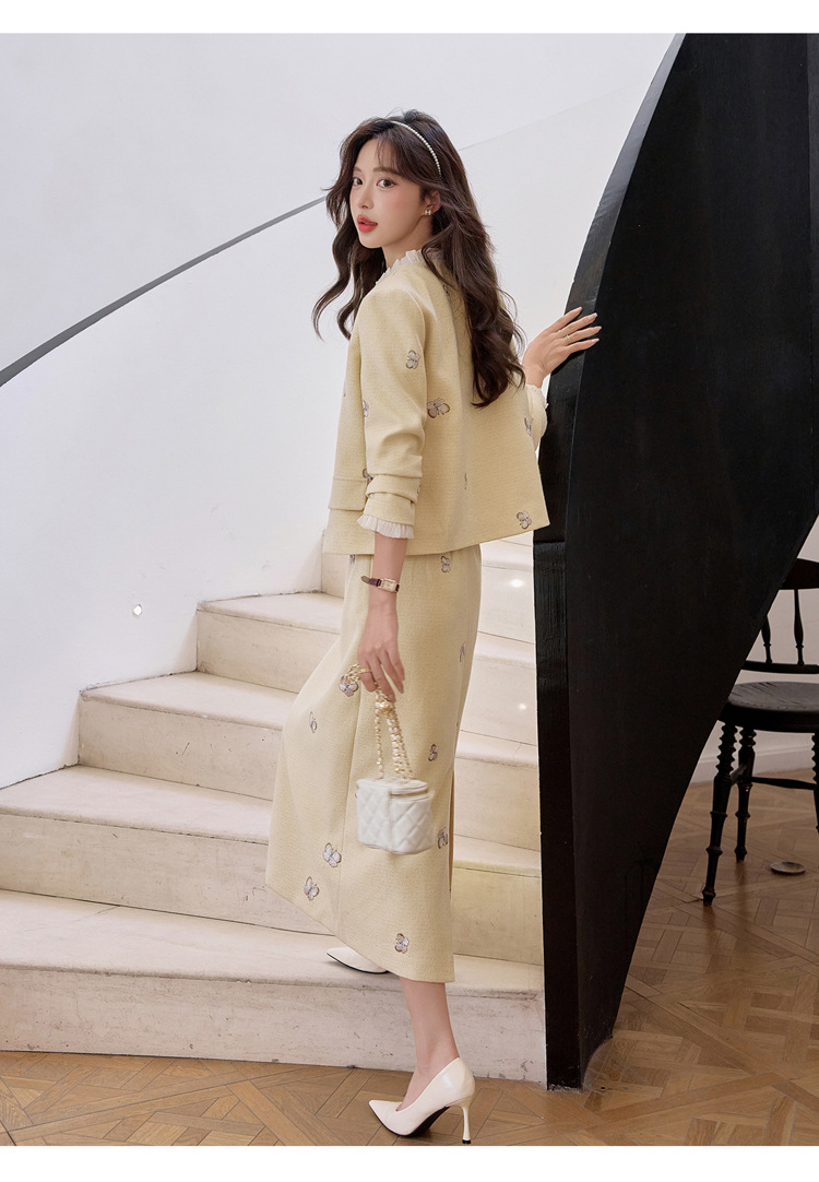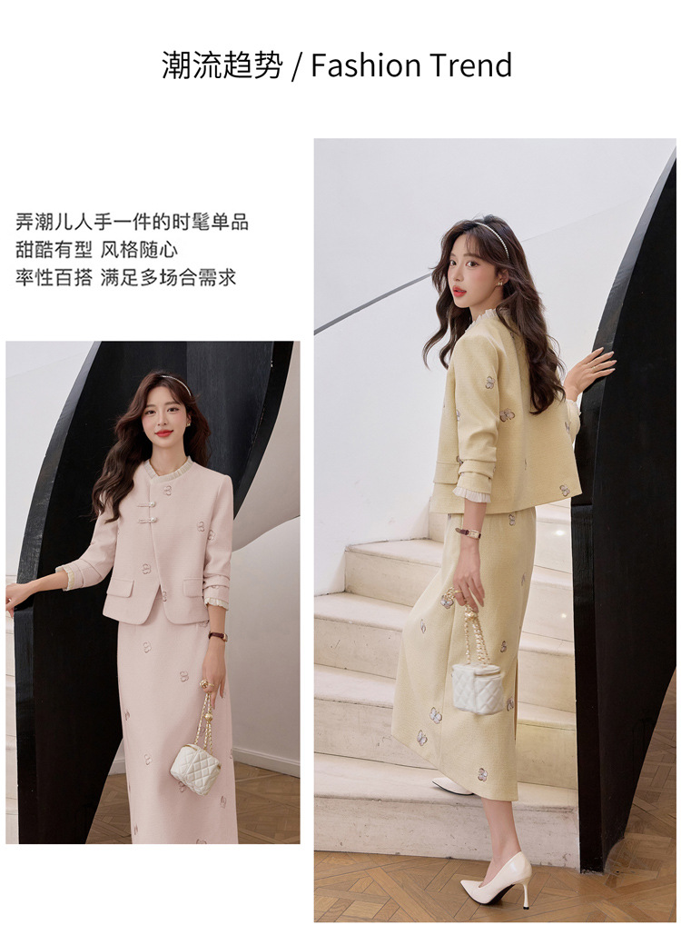 刺绣蝴蝶套装裙2025新款秋季气质减龄短外套半身裙两件套YJLY8618