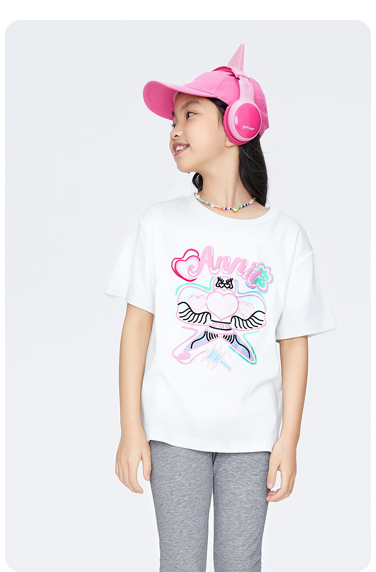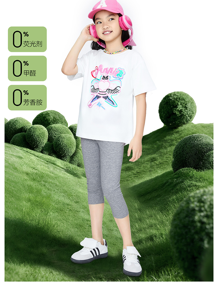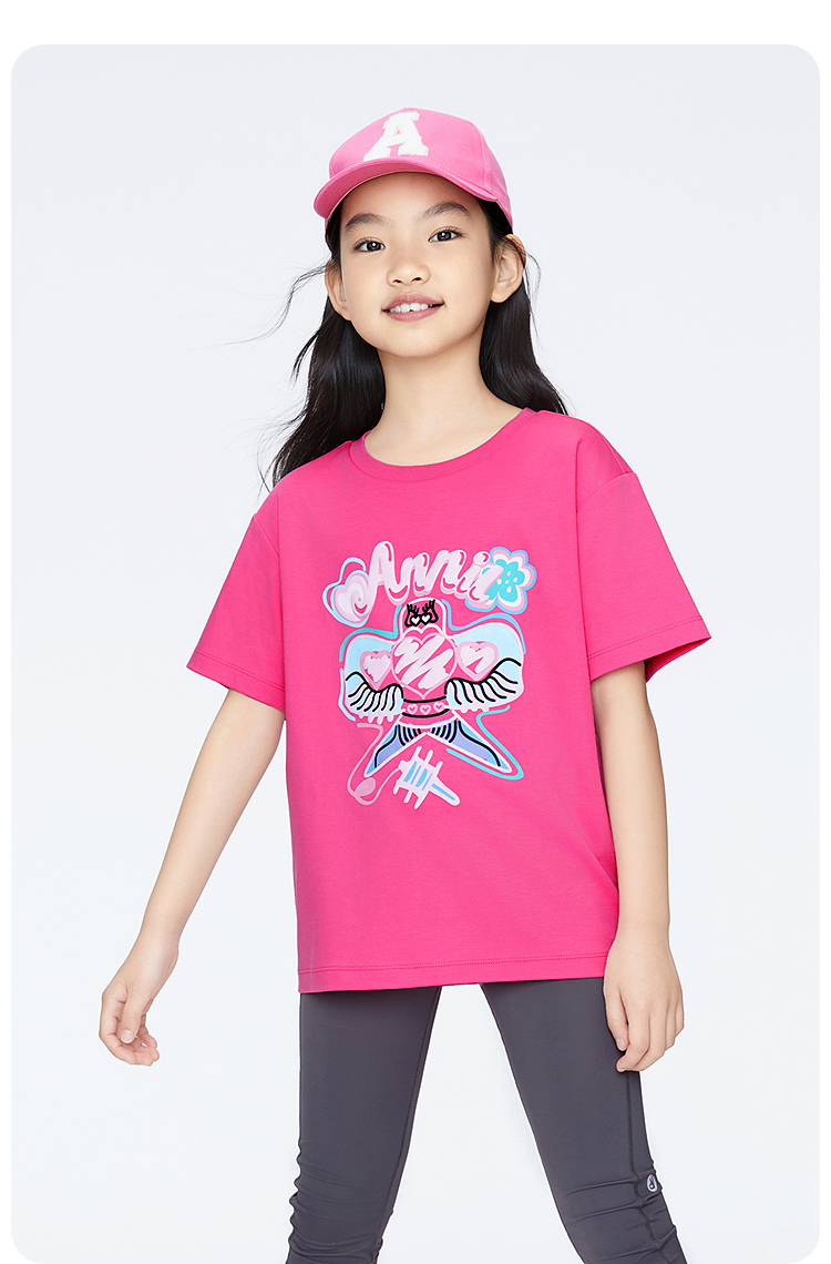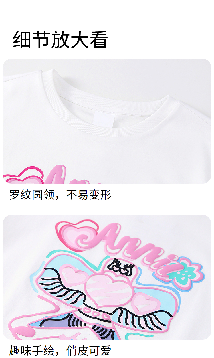 女童圆领短袖针织衫夏季新款安奈儿童装EG621694