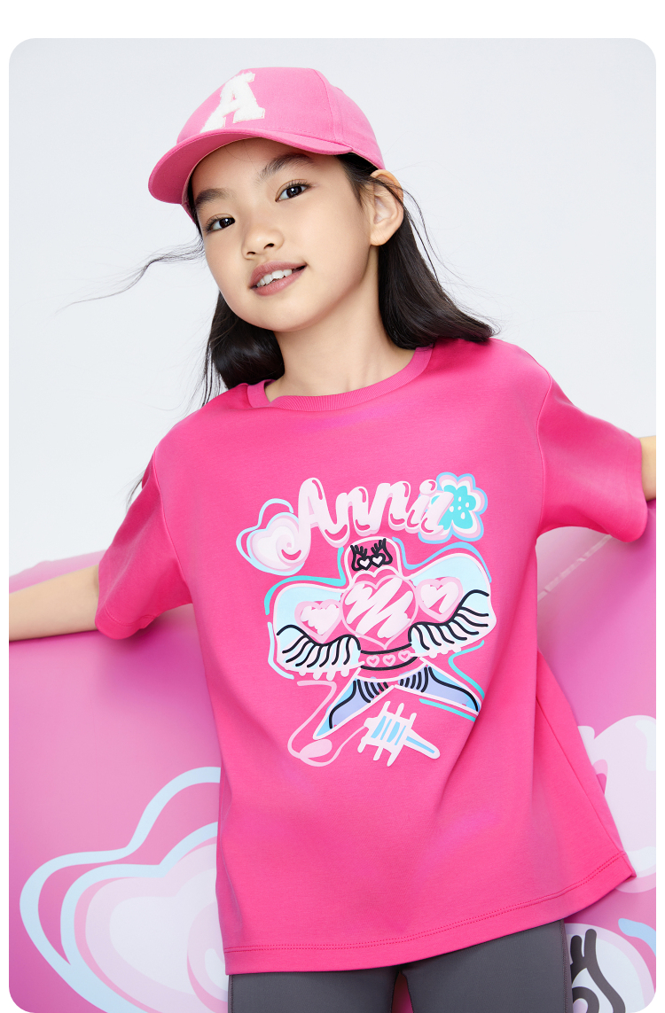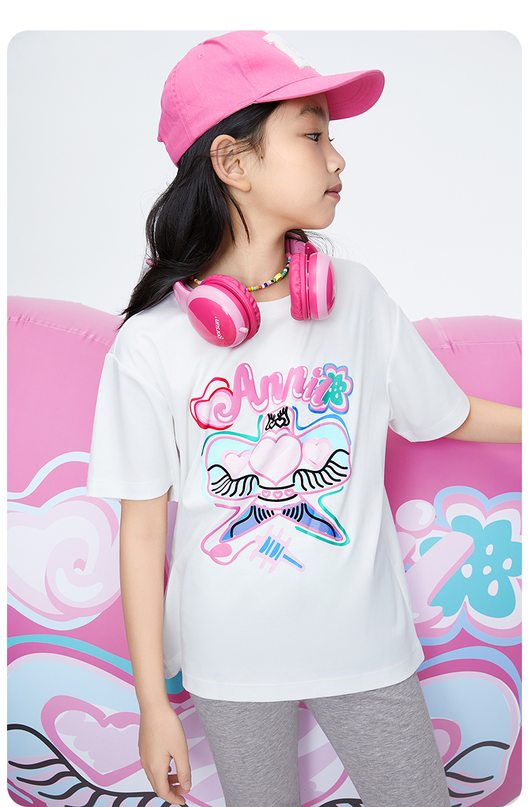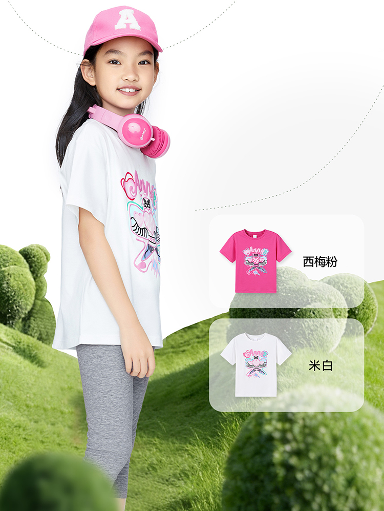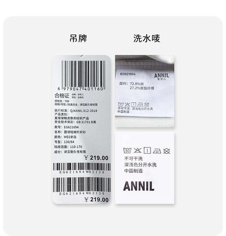 女童圆领短袖针织衫夏季新款安奈儿童装EG621694